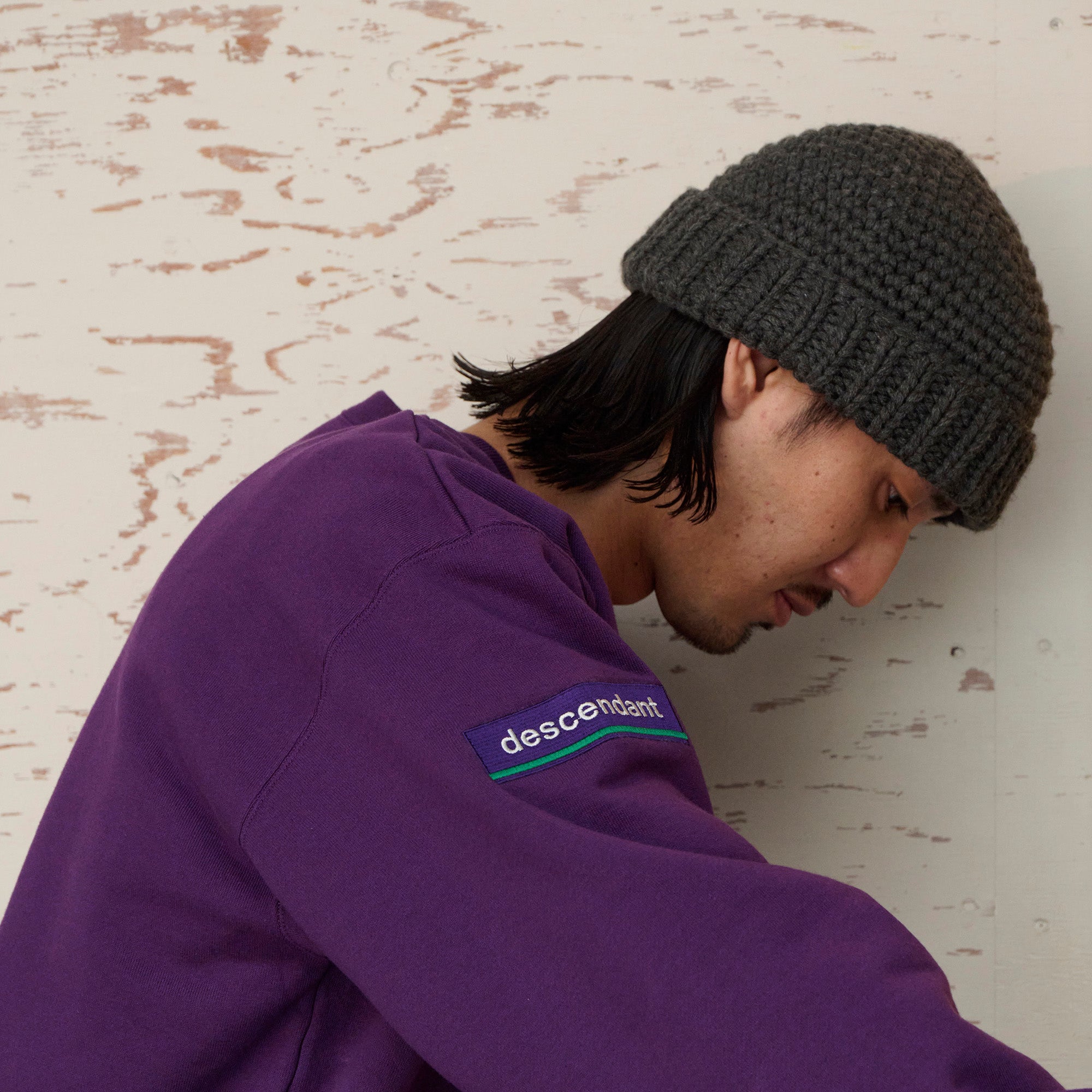 Crewneck sweatshirt made from heavyweight cotton Terry. The HORIZON logo, highlighted in purple, is embroidered on the right sleeve. Loose, wide-body silhouette with a tapered hem. Original brand taping along the seam of the neckline. A woven CETUS size label is attached to the right front hem.MODEL :184cm / SIZE3 (LARGE)
