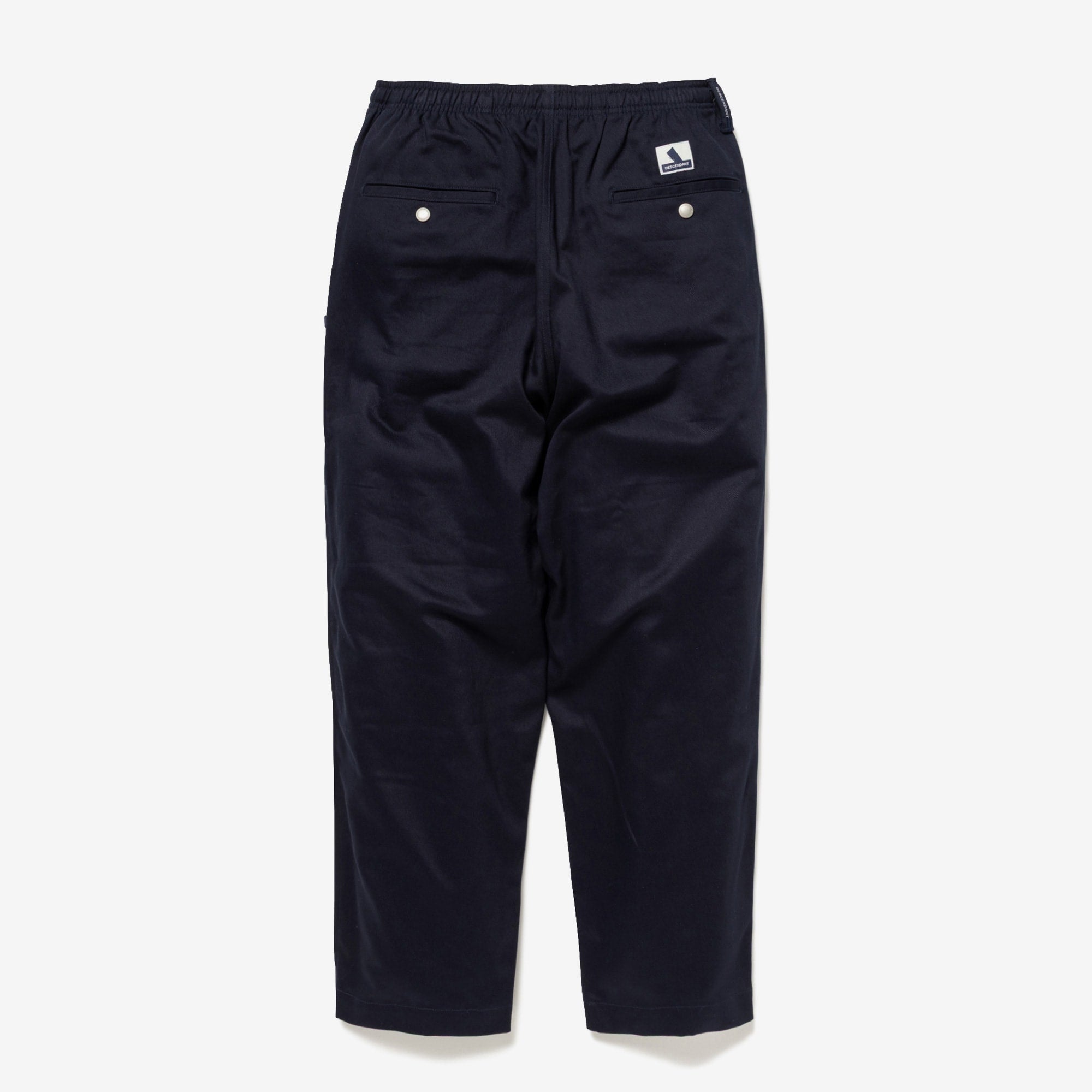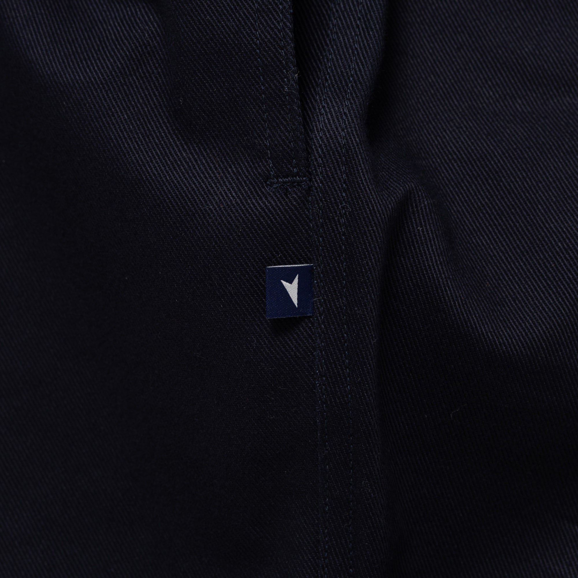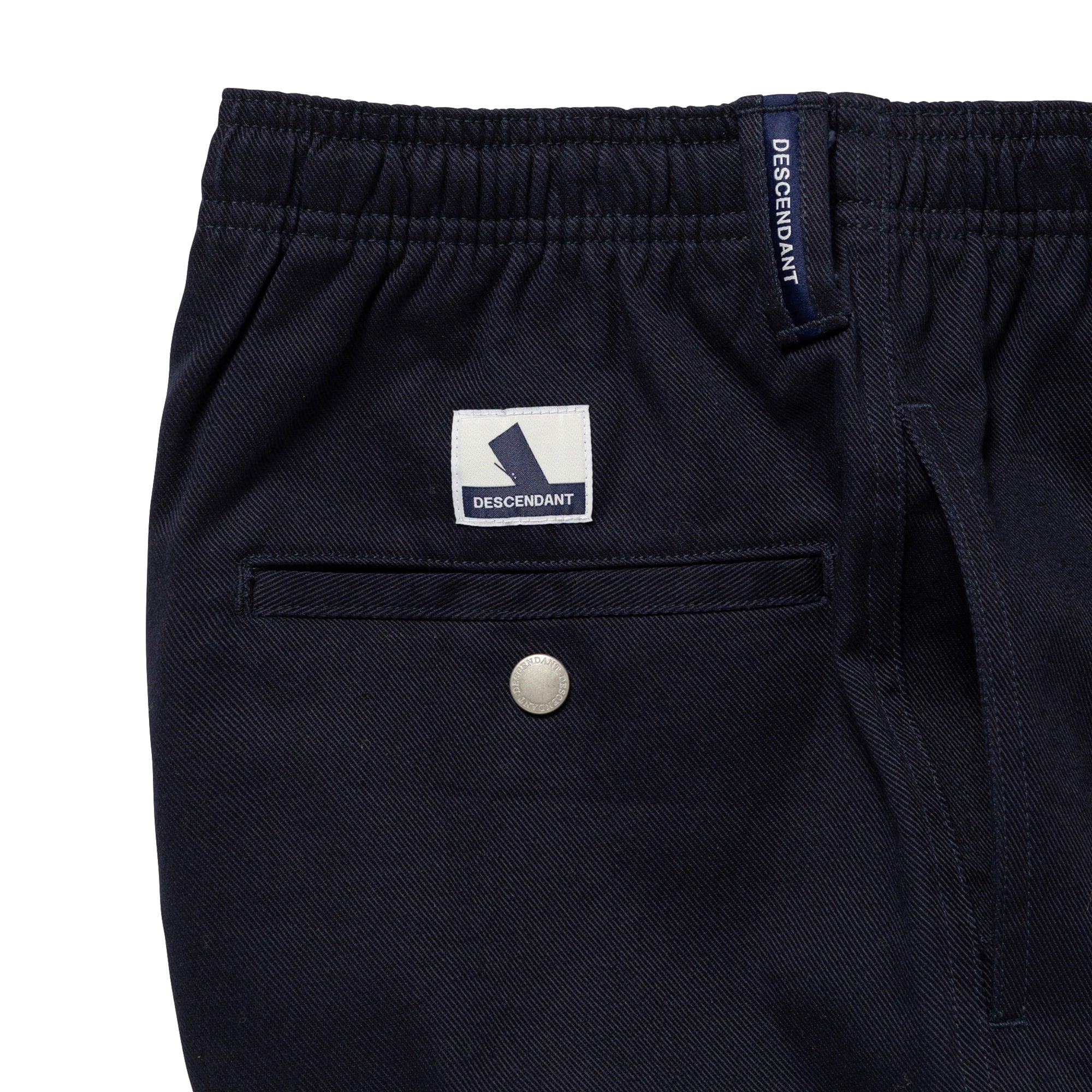 SHORE twill beach trousers made from cotton drill fabric, available in three colors: charcoal, navy, and orange. An elastic waistband with drawcord and a belt loop with the DESCENDANT logo. Side pockets and a snap button-closure hip pockets, with a SPYHOP woven label.MODEL :183cm / SIZE3 (LARGE)