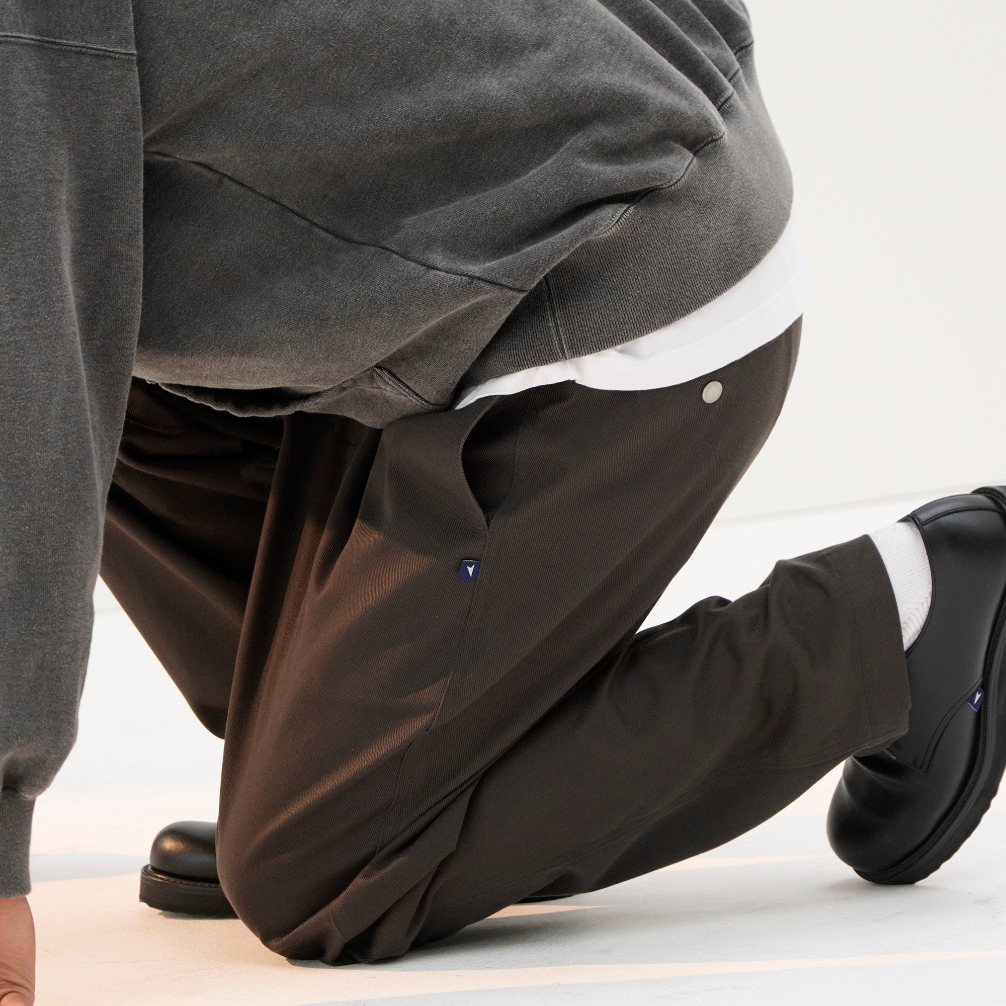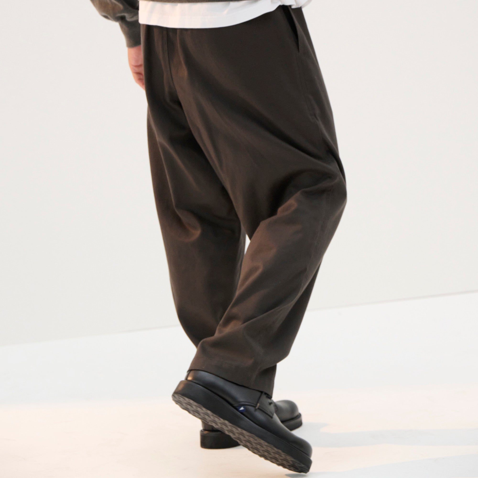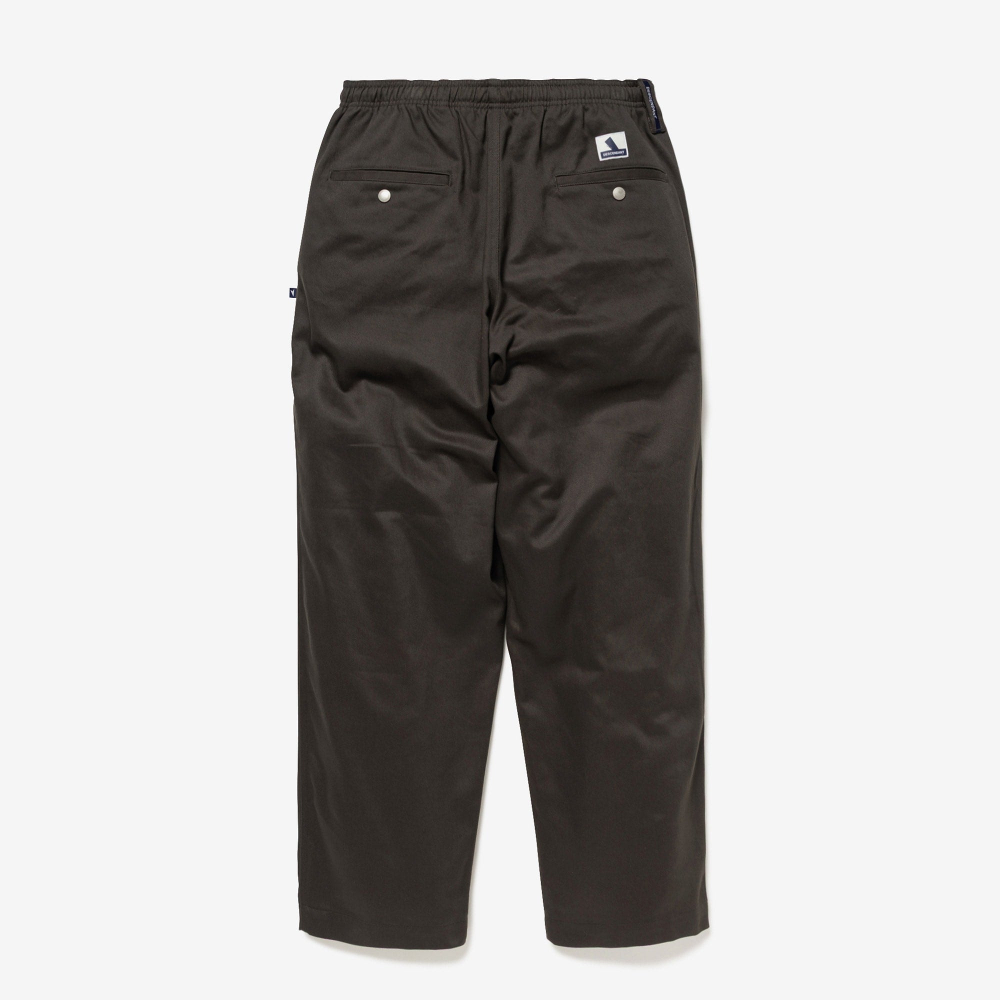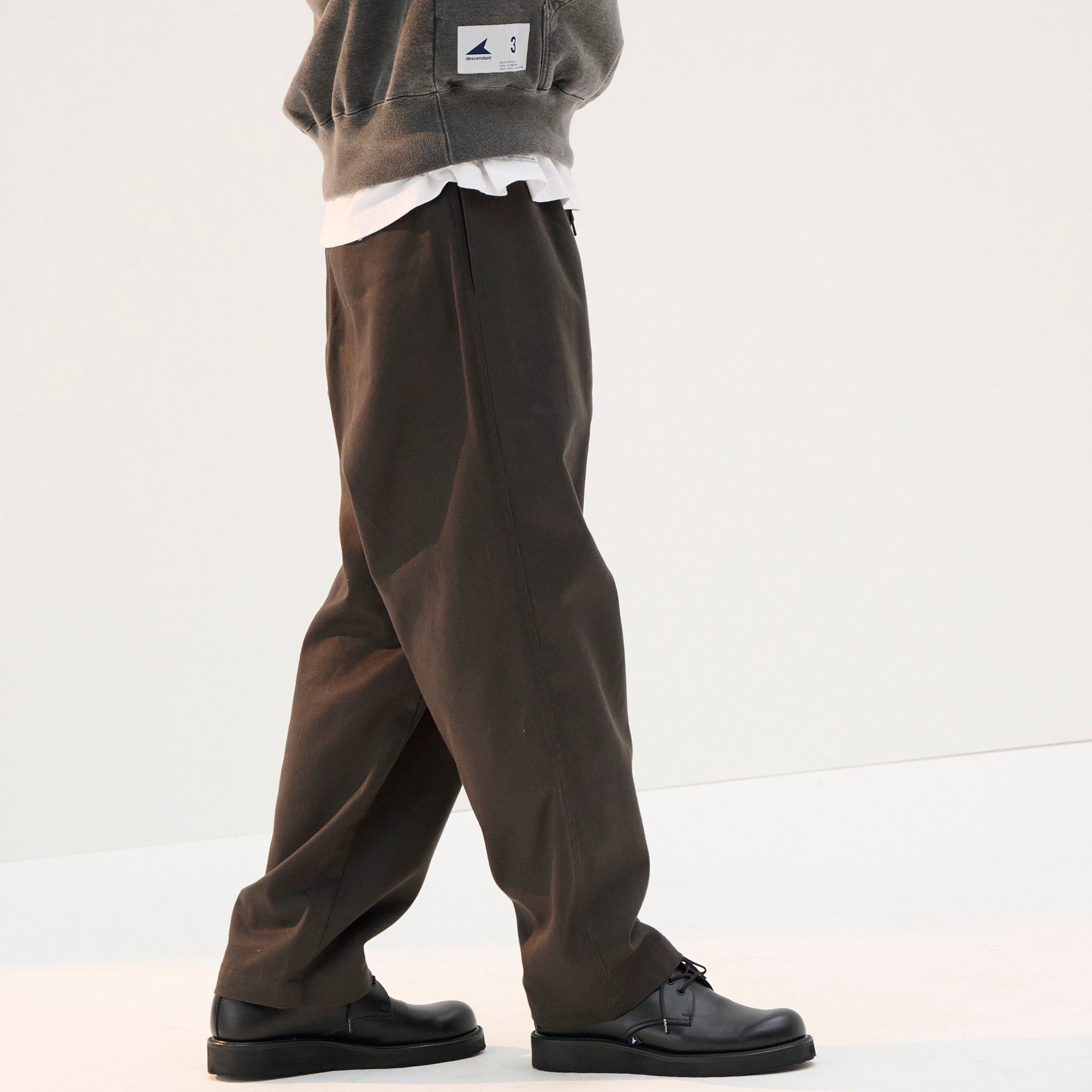SHORE twill beach trousers made from cotton drill fabric, available in three colors: charcoal, navy, and orange. An elastic waistband with drawcord and a belt loop with the DESCENDANT logo. Side pockets and a snap button-closure hip pockets, with a SPYHOP woven label.MODEL :183cm / SIZE3 (LARGE)