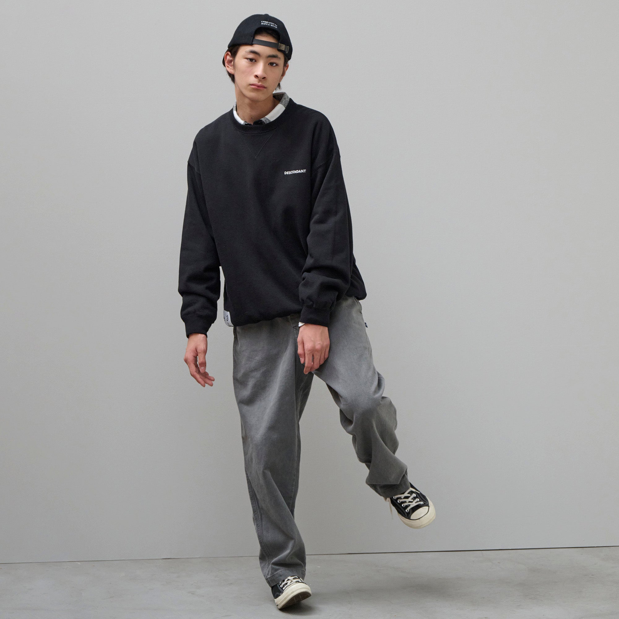 Crewneck sweatshirt made from heavyweight cotton Terry, with a V-gusset sweat guard at the front and a matching fabric back yoke. Simple brand logo embroidered on the left chest. Loose, wide-body silhouette with a tapered hem. Original brand taping along the seam of the neckline. A woven CETUS size label is attached to the right front hem.MODEL :176cm / SIZE3 (LARGE)