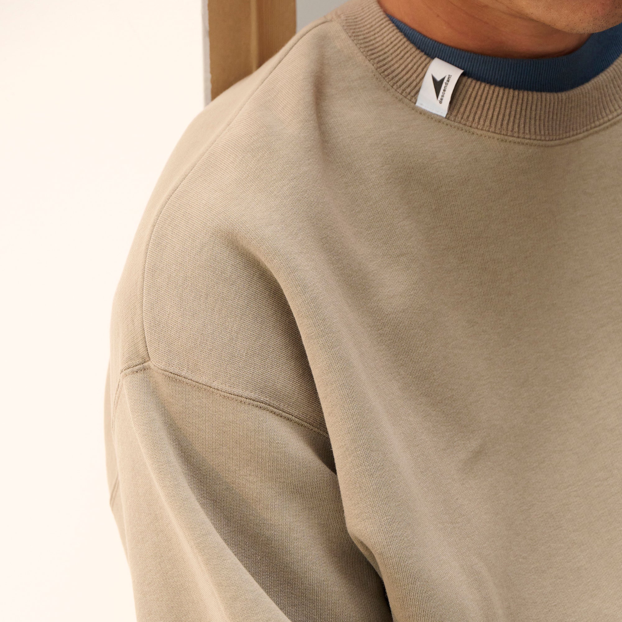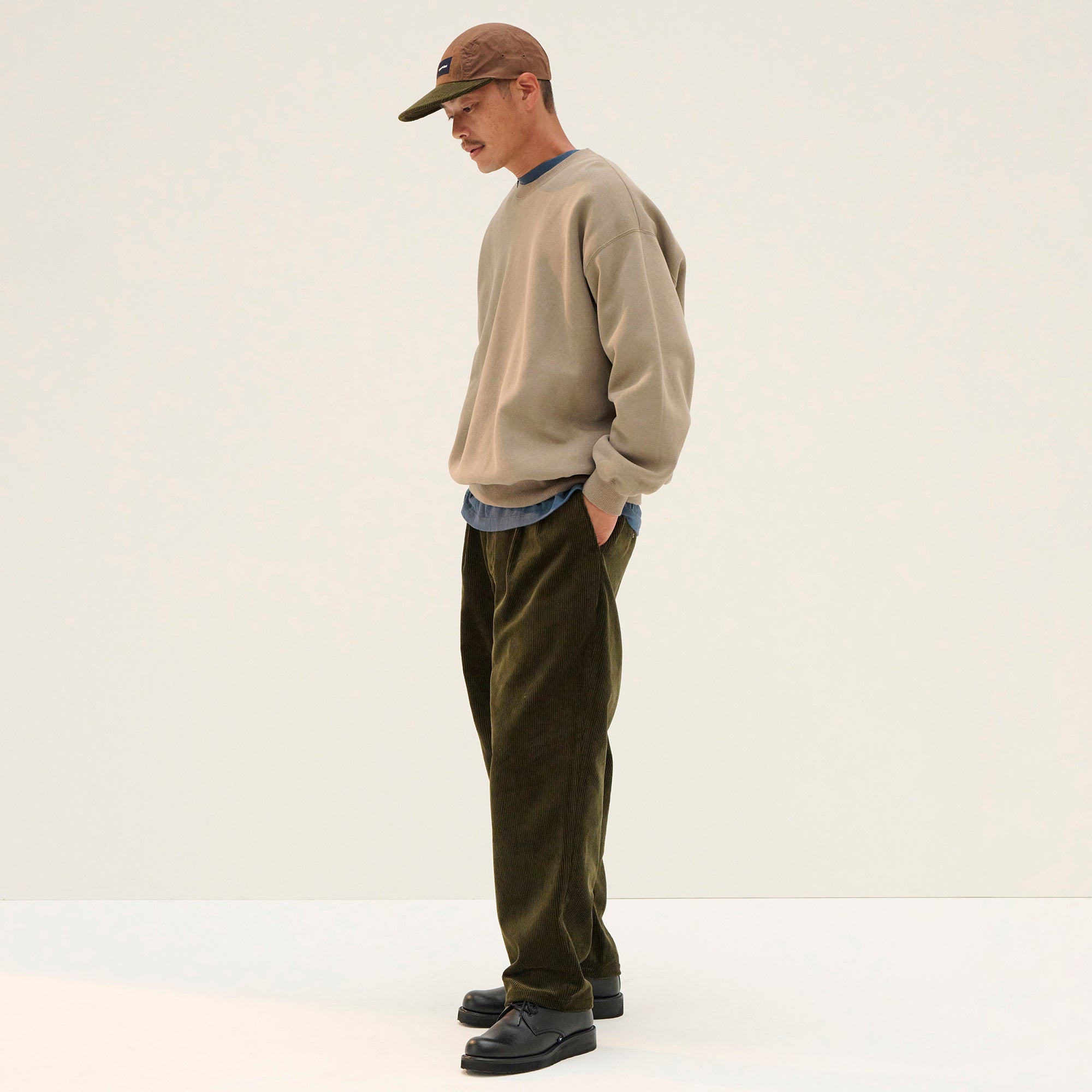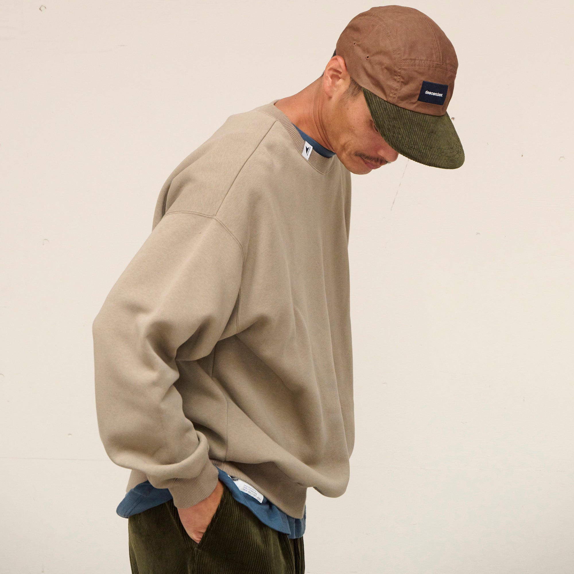 Crewneck sweatshirt made from soft and lightweight T/C Terry (cotton/polyester blend). Loose, wide-body silhouette with a tapered hem. Original brand taping along the seam of the neckline. A CETUS brand tab is attached to the collar ribbing.