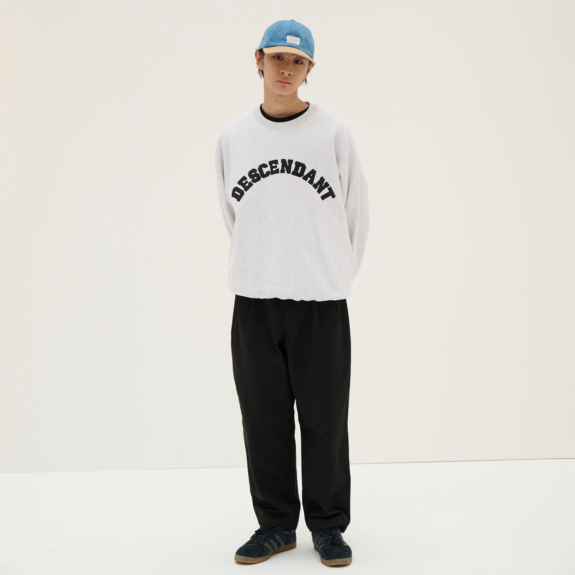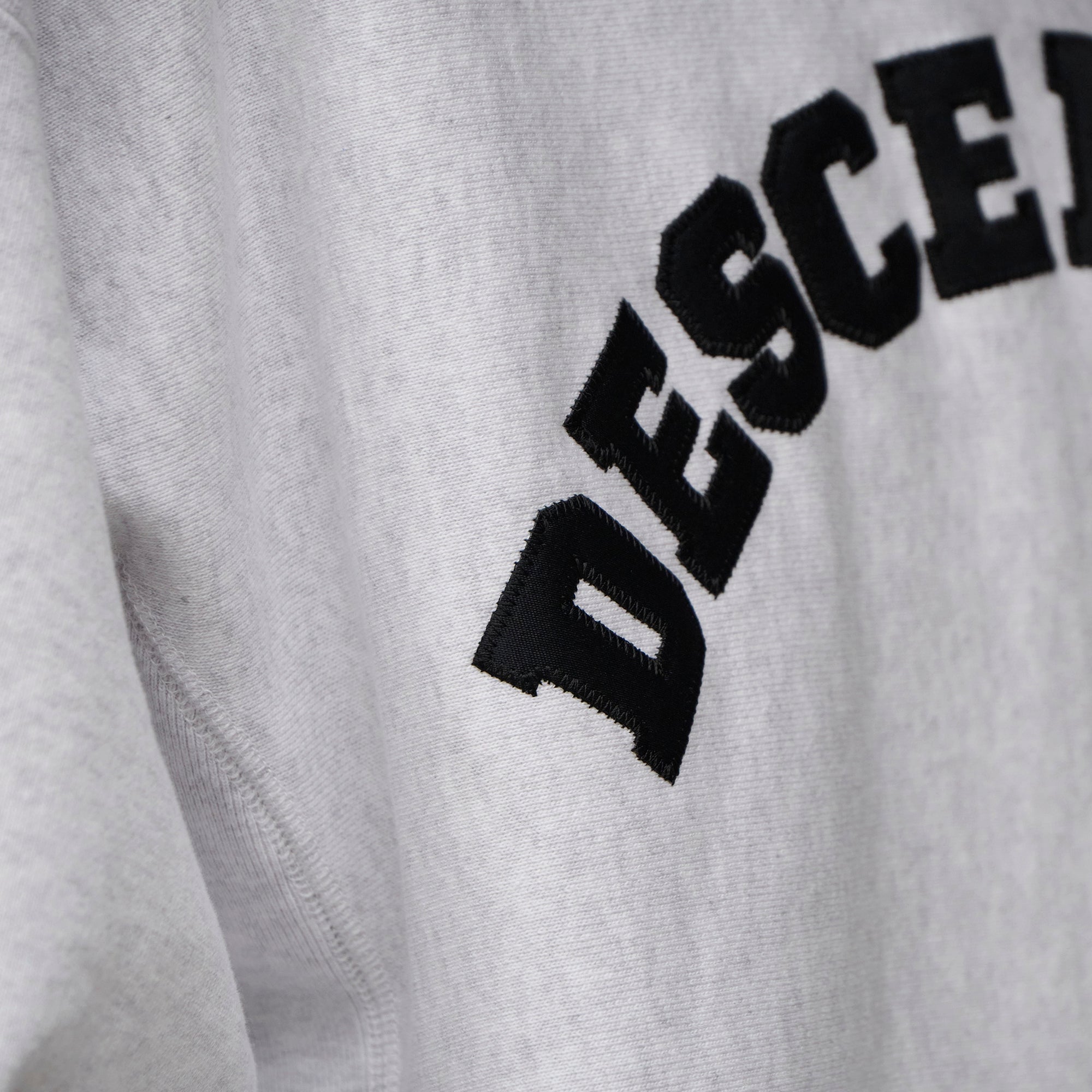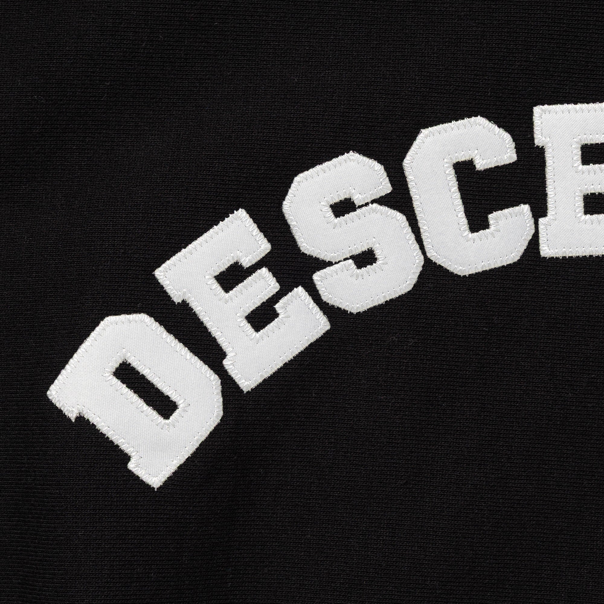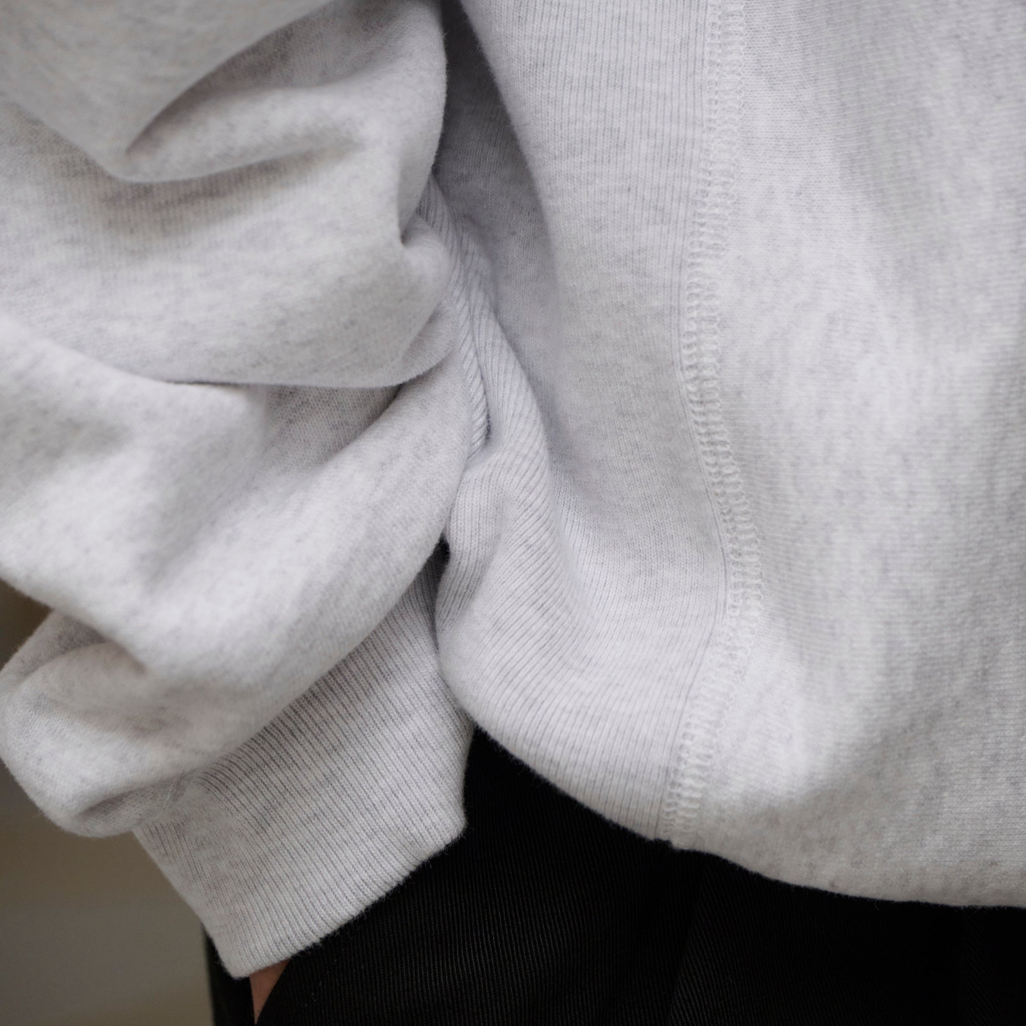 Crewneck sweatshirt made from heavyweight cotton Terry, with the fabric grain laid horizontally and ribbed panels inserted at the side seams. Satin patch sewn onto the front body. Loose, wide-body silhouette with a tapered hem. Original brand taping along the seam of the neckline. Box logo embroidered on the left cuff.