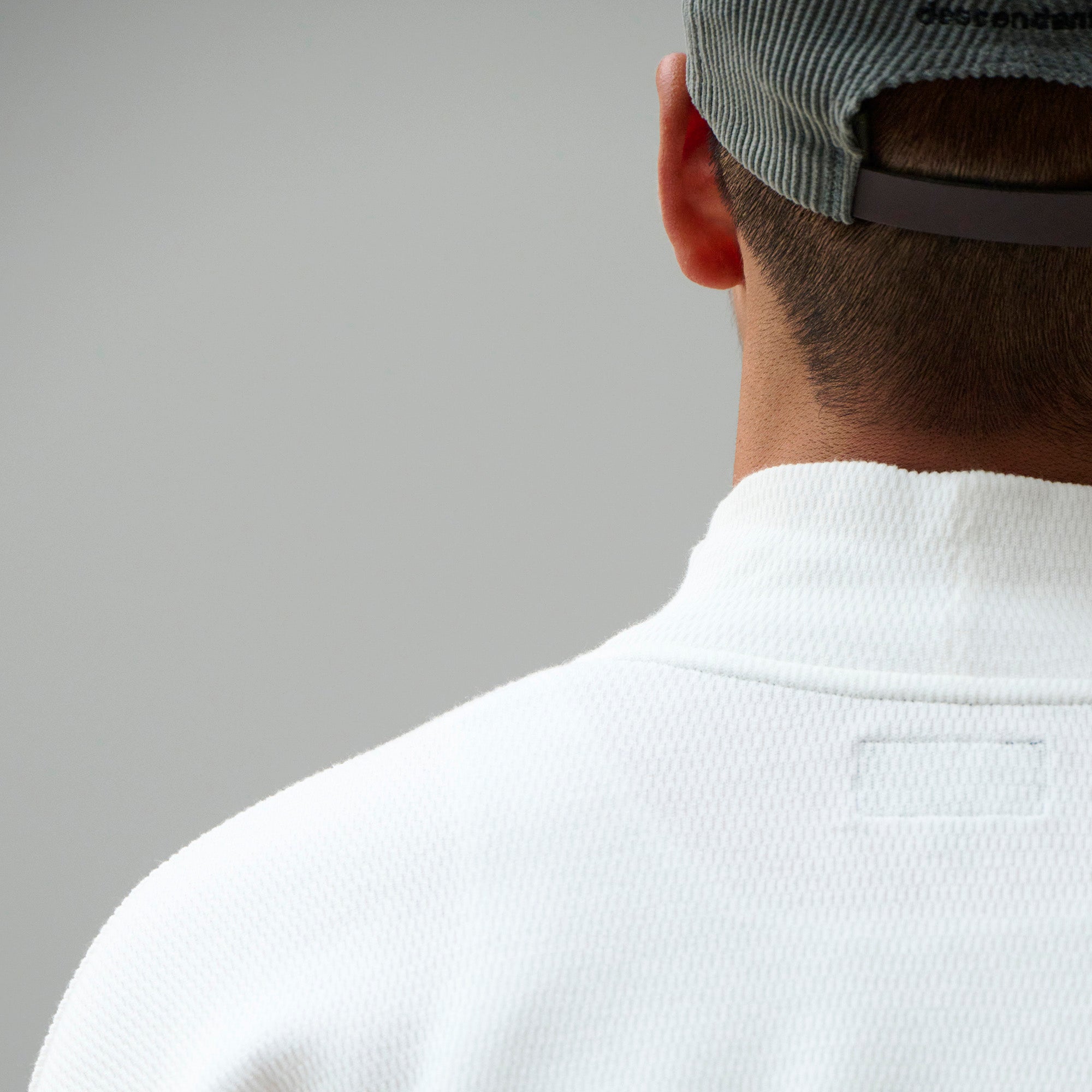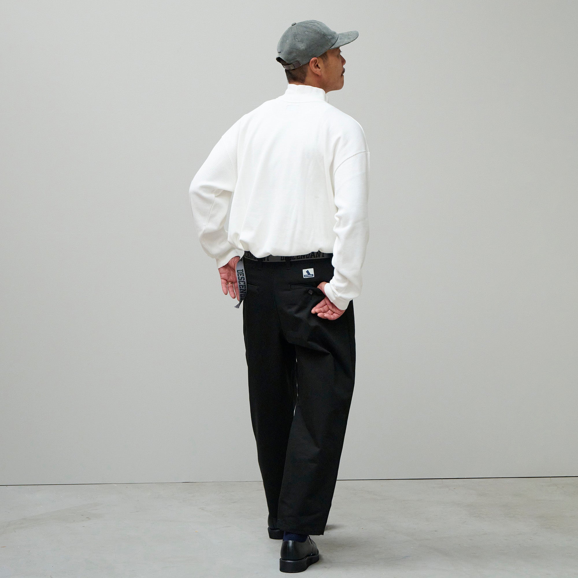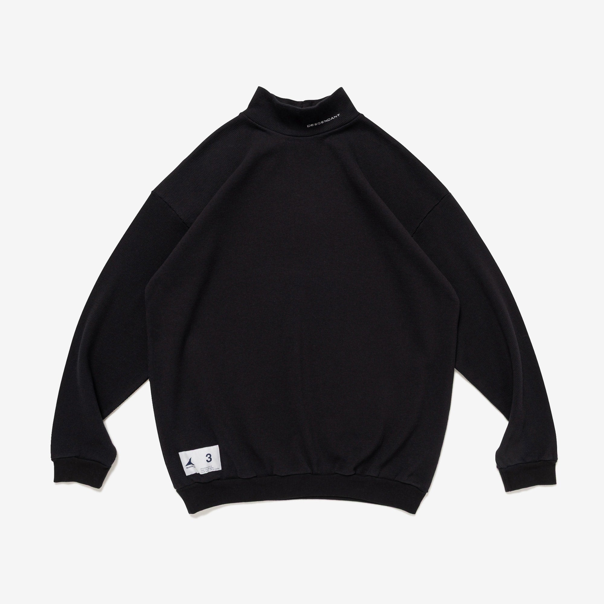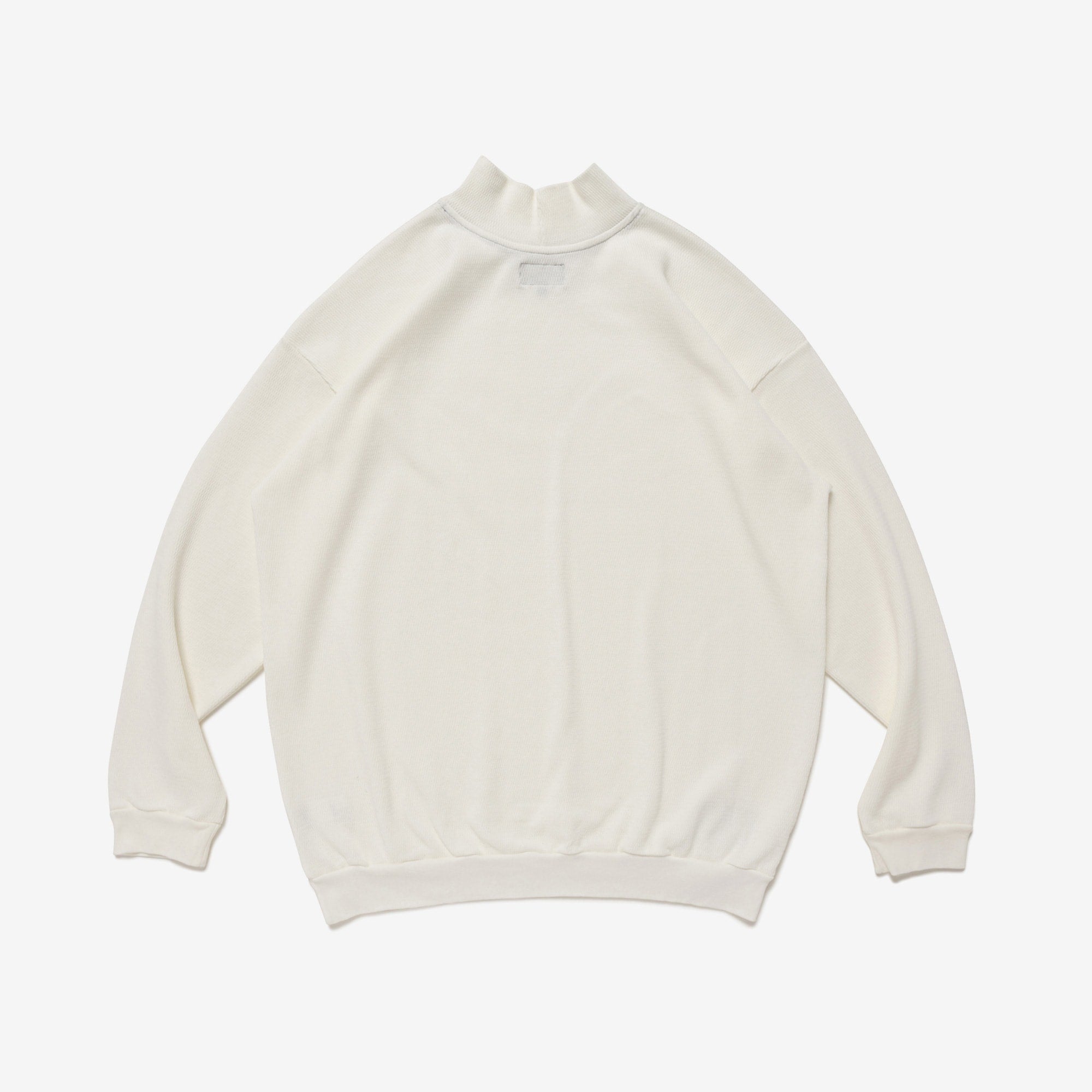 Long-sleeve cut-and-sewn made from insulating waffle-knit organic cotton, with a mock neck crafted from the same fabric. SPUR logo embroidered on the mock neck. Original brand taping along the seam of the neckline. A woven CETUS size label is attached to the right front hem.MODEL :183cm / SIZE3 (LARGE)