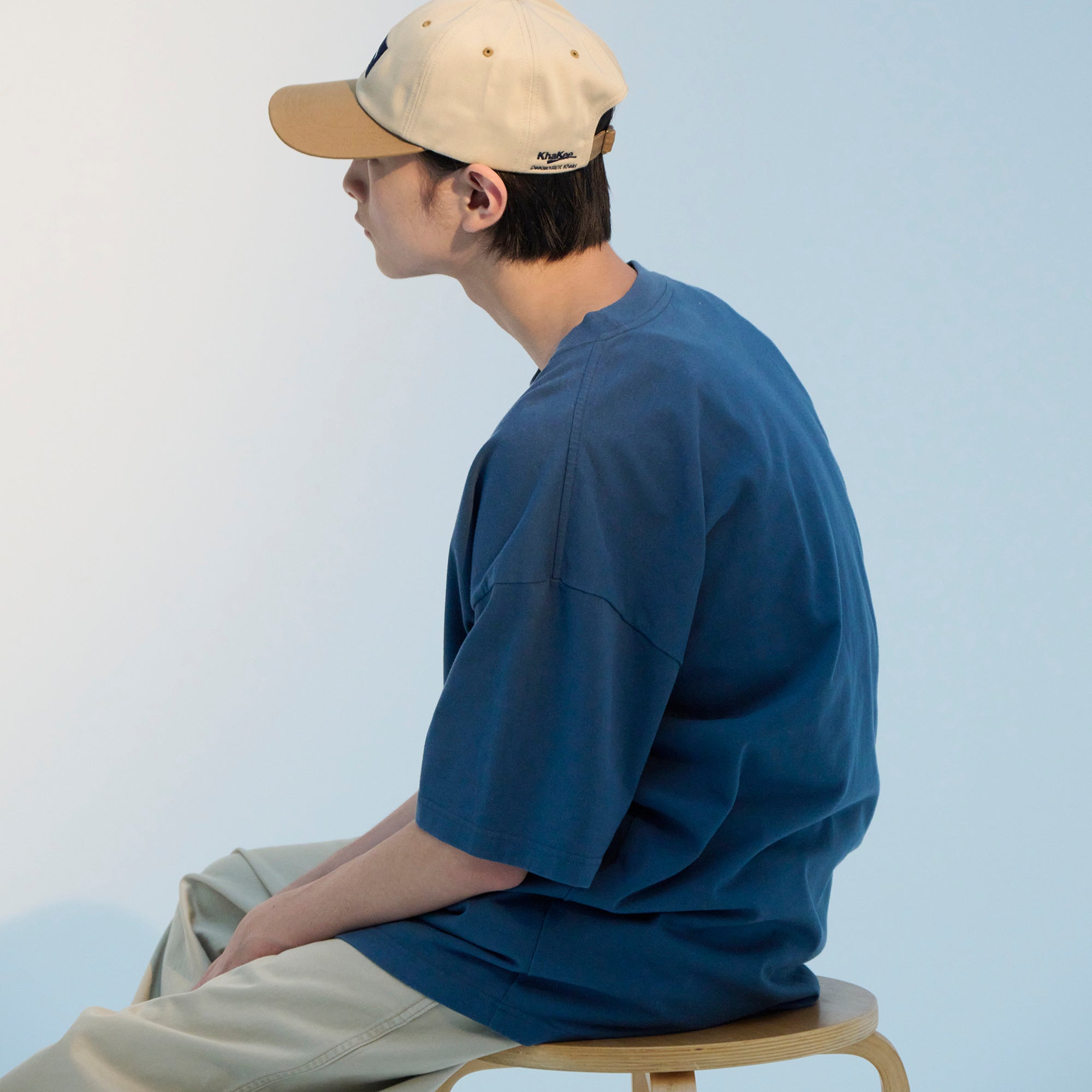 Short-sleeve T-shirt made from organic cotton jersey. The CACHALOT logo embroidered on the left chest in a contrasting color. Loose, wide-body silhouette. Original brand taping along the seam of the neckline. A woven CETUS size label is attached to the right front hem.