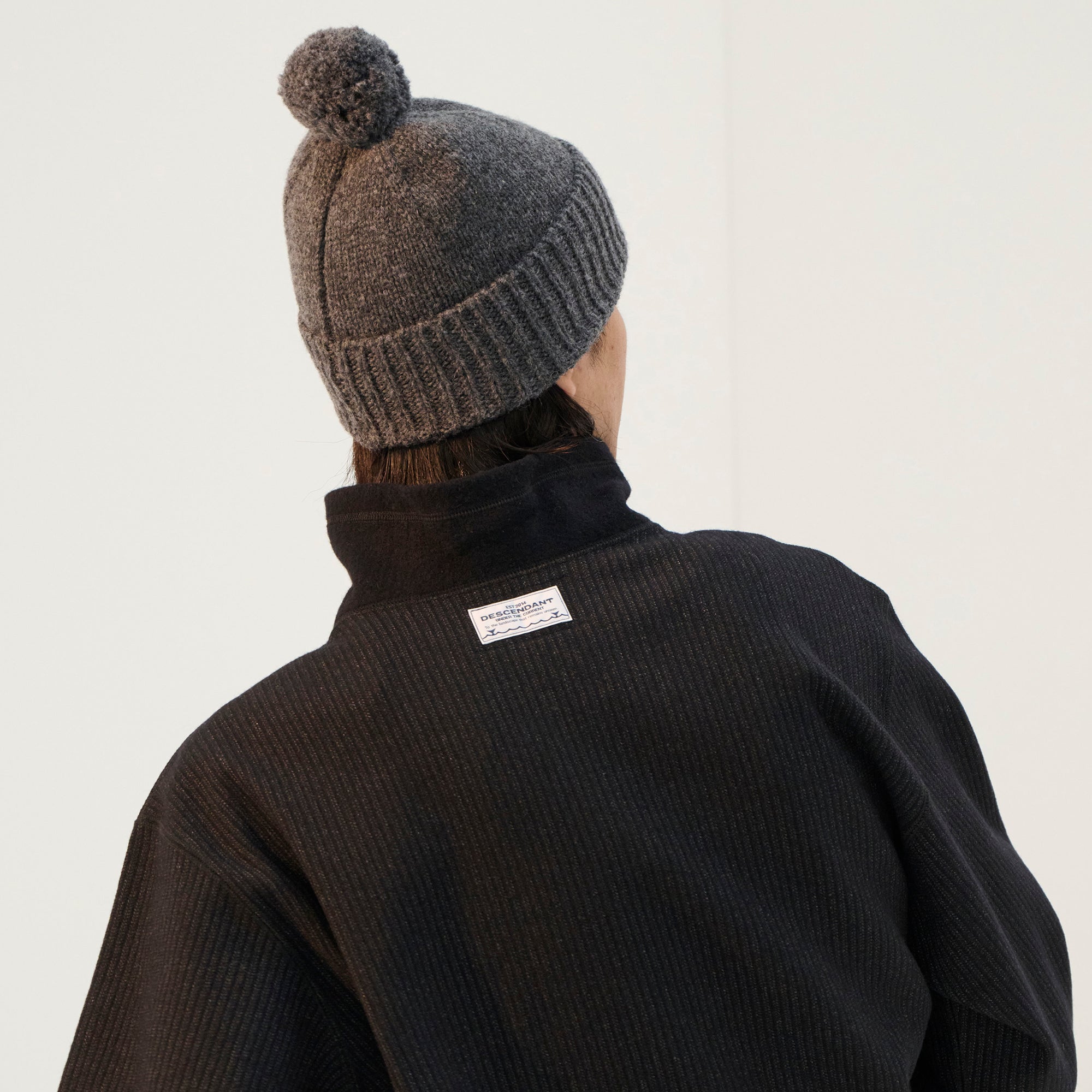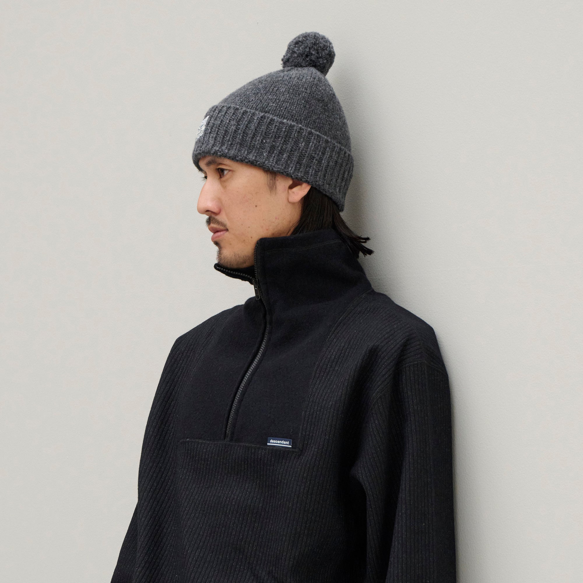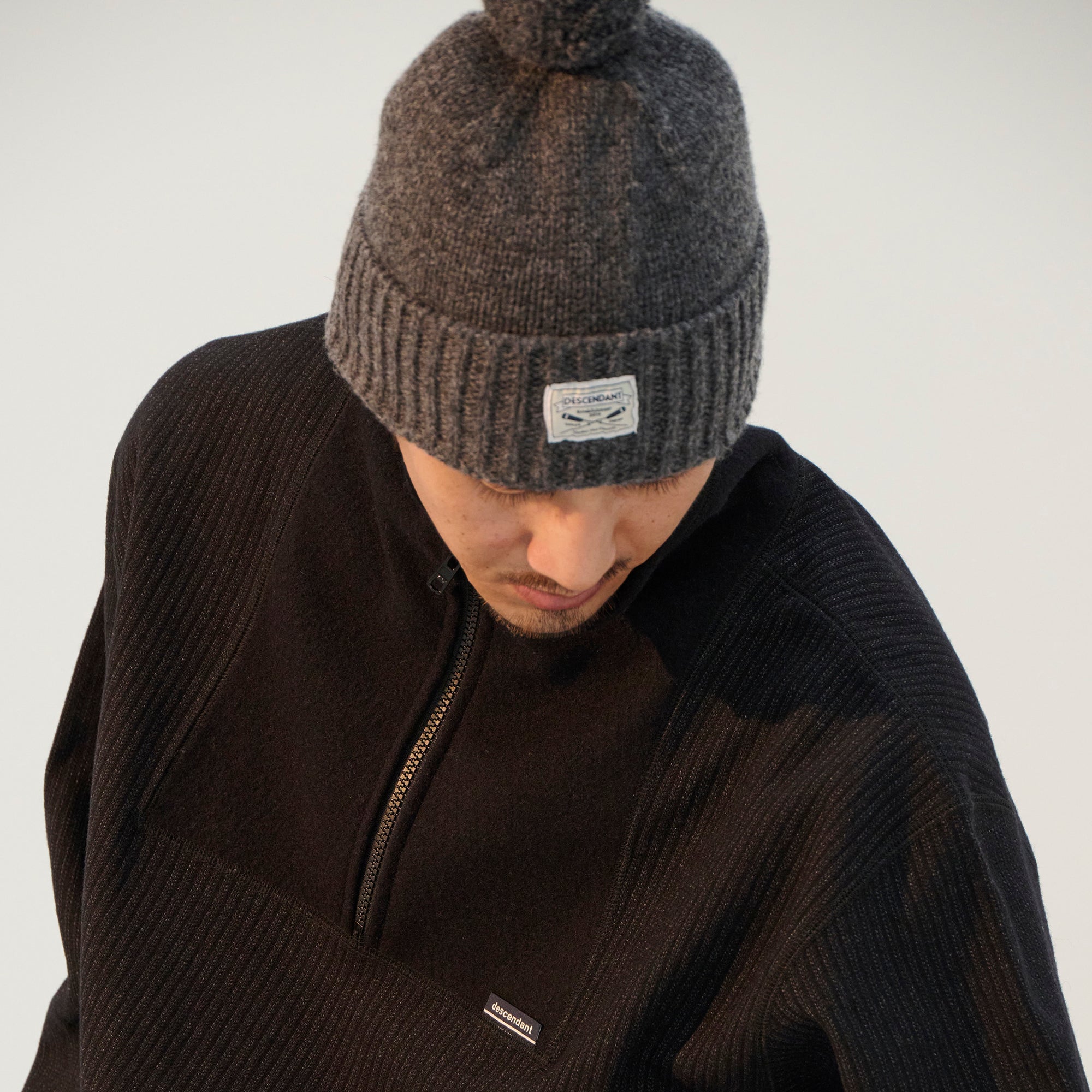Half-zip pullover shirt made from recycled spun yarn beach cloth, and fleece fabric around the collar. Relaxed silhouette, piping on the cuffs and hem, and the FLUKE UP labels on the right front hem and the back of the collar. A new item is characterized by its retro “goma-shio” textured fabric.MODEL :184cm / SIZE3 (LARGE)