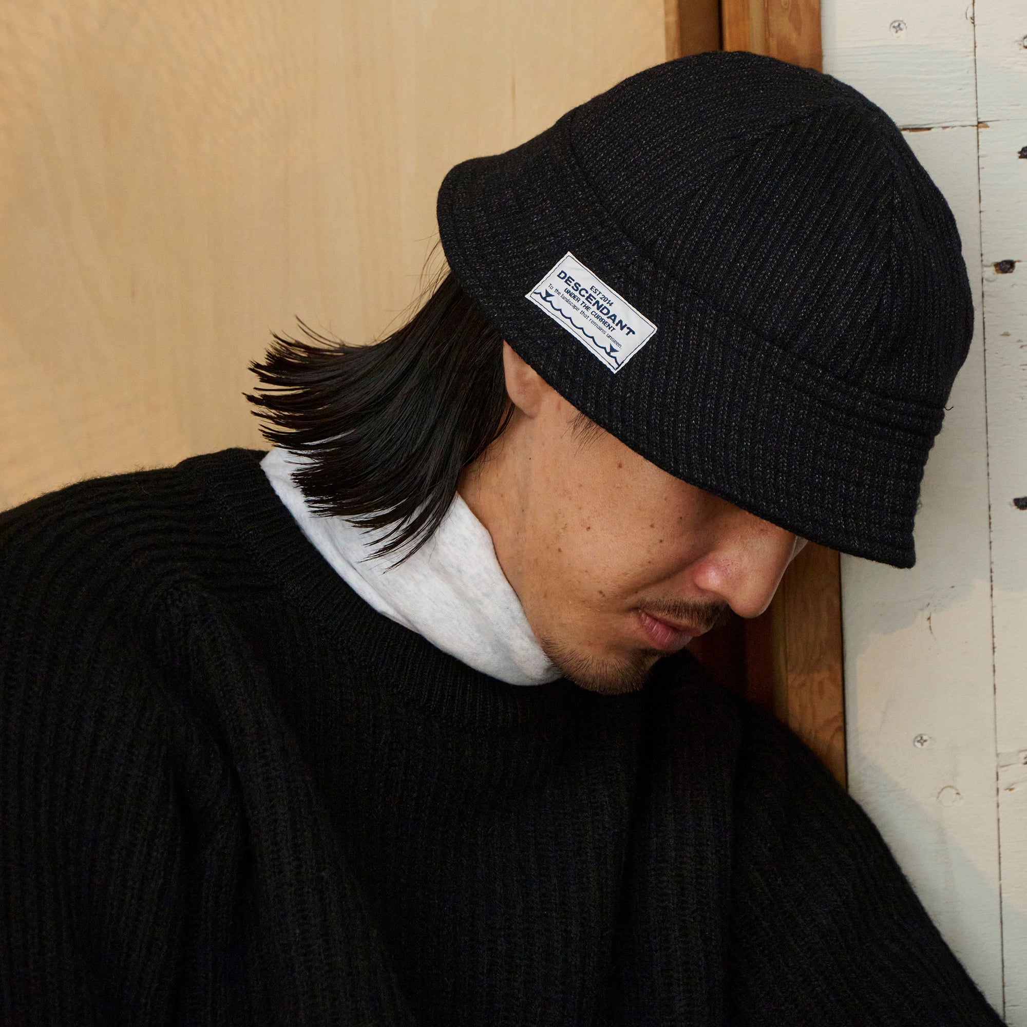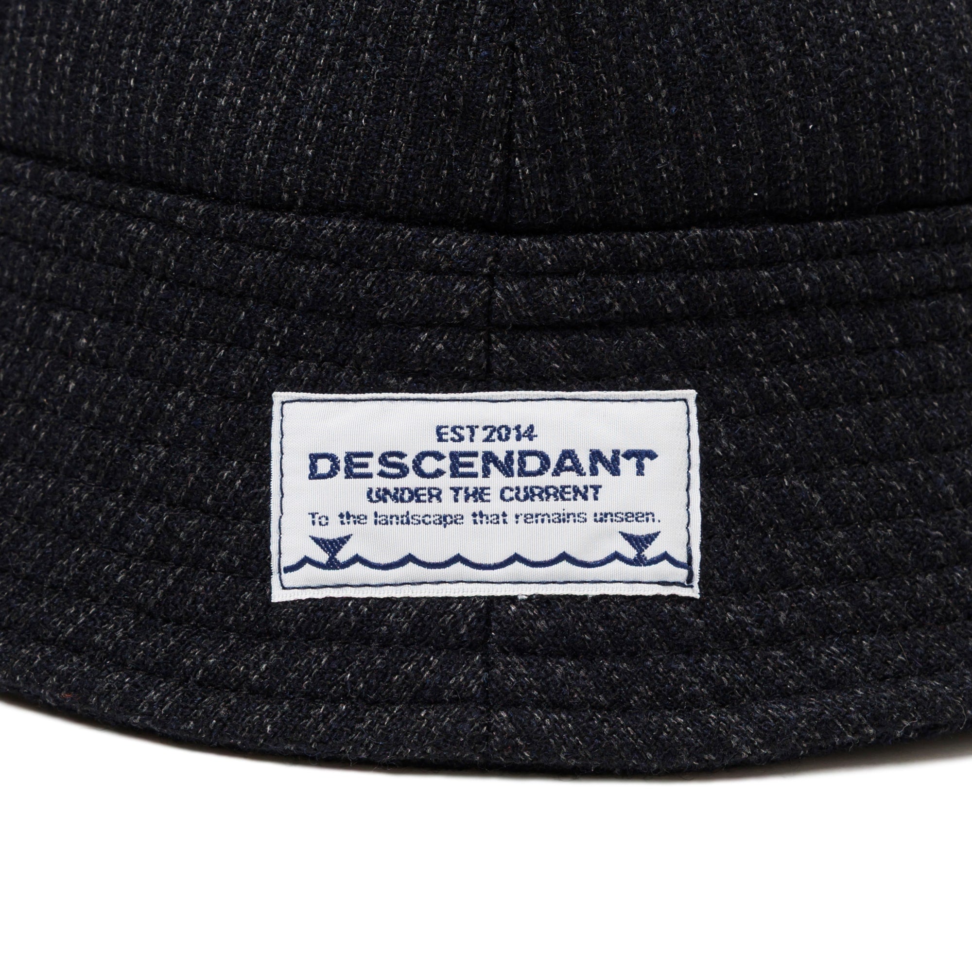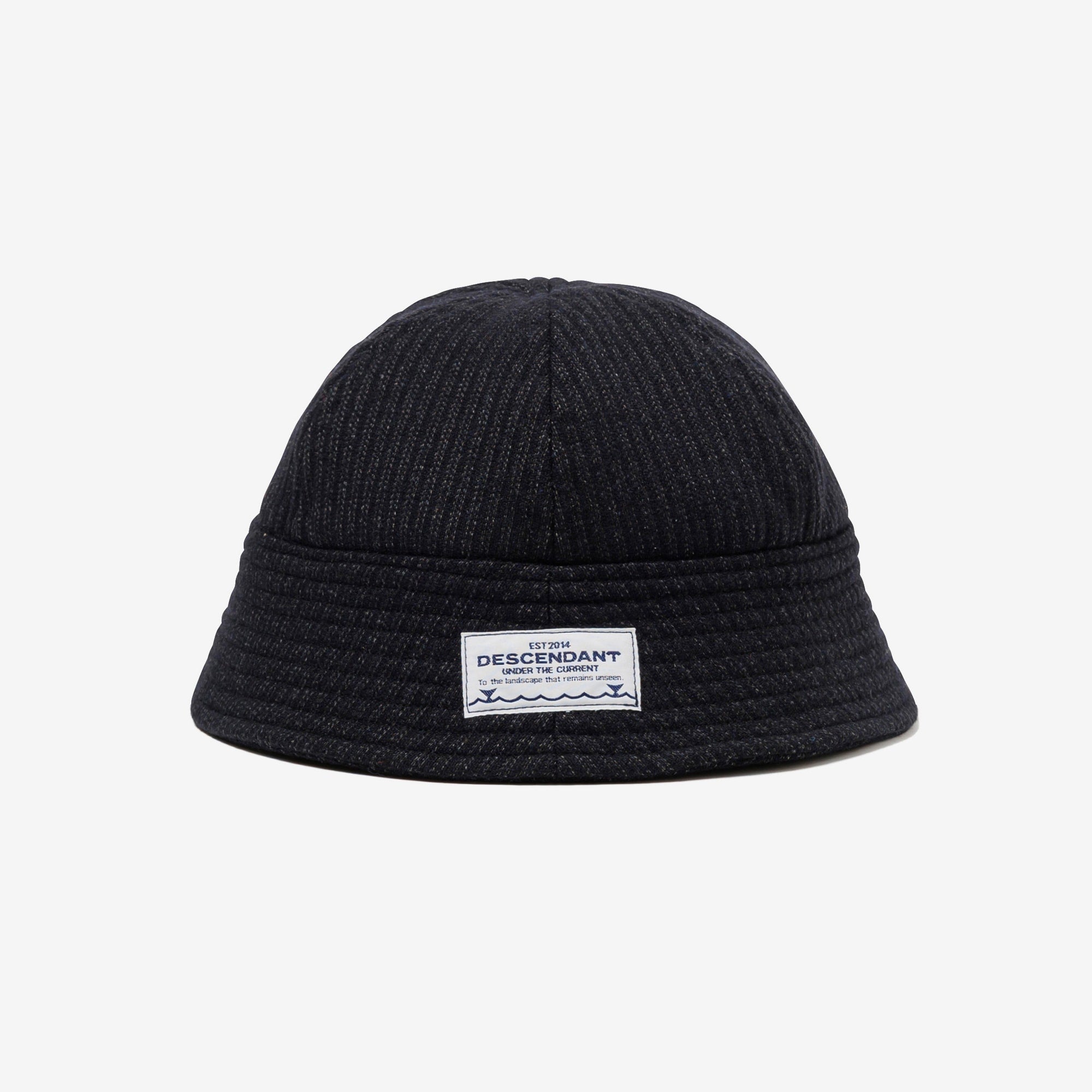 A sailor hat made from recycled wool-blend beach cloth. FLUKE UP graphic woven label on the brim. A new item characterized by its retro “goma-shio” texture.