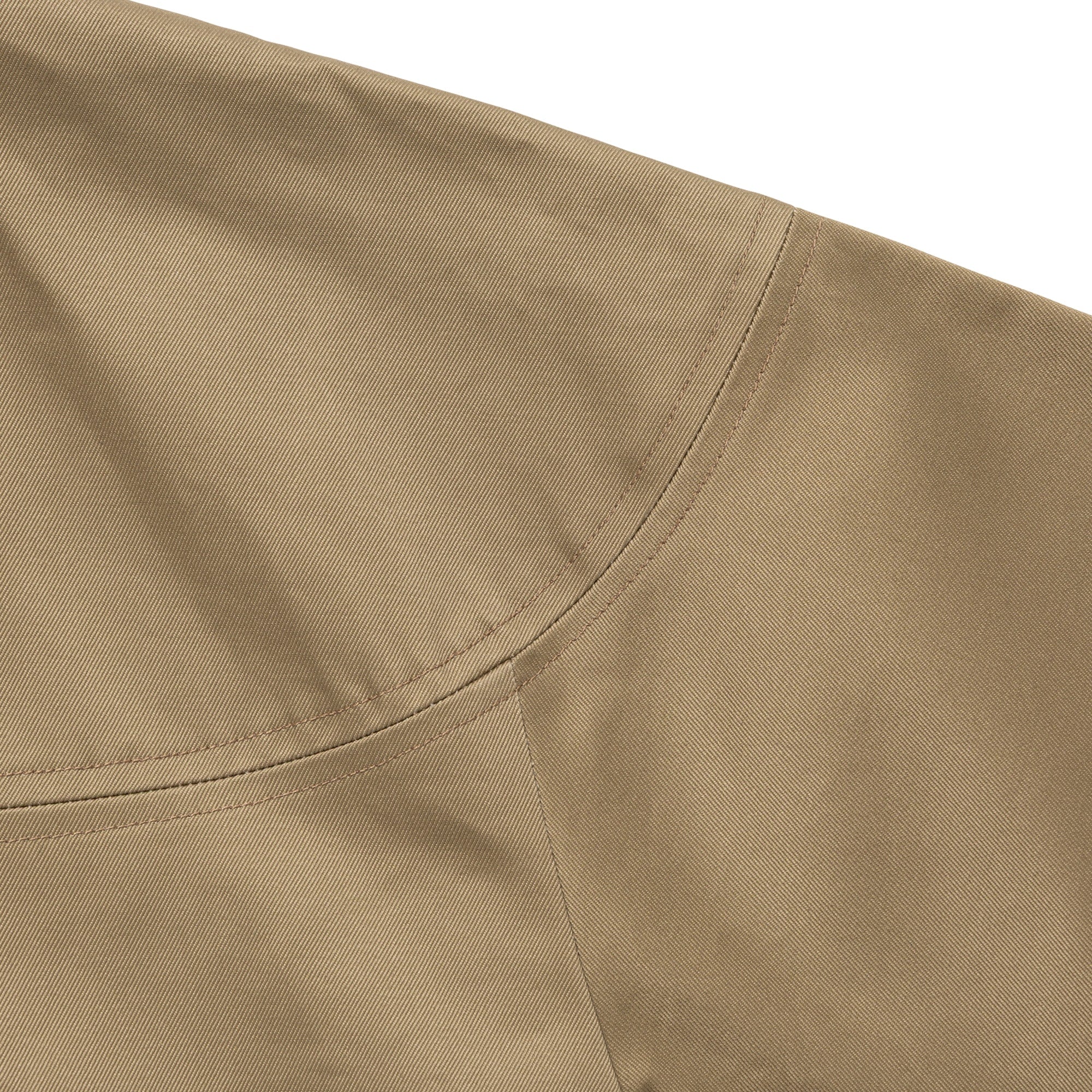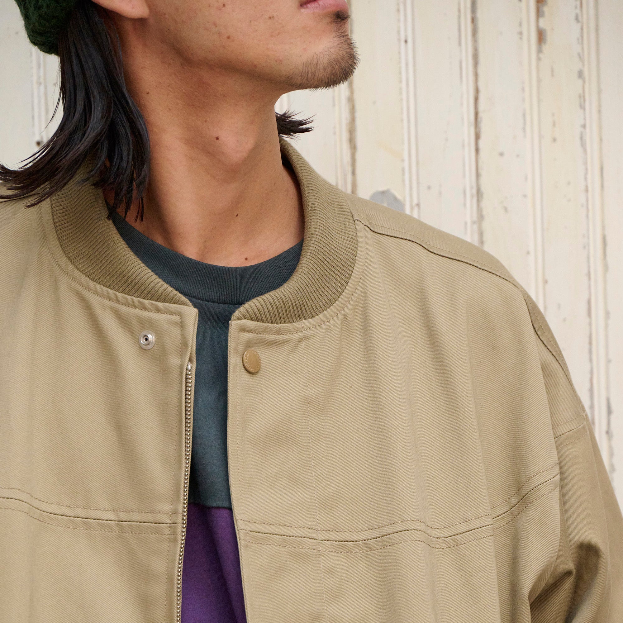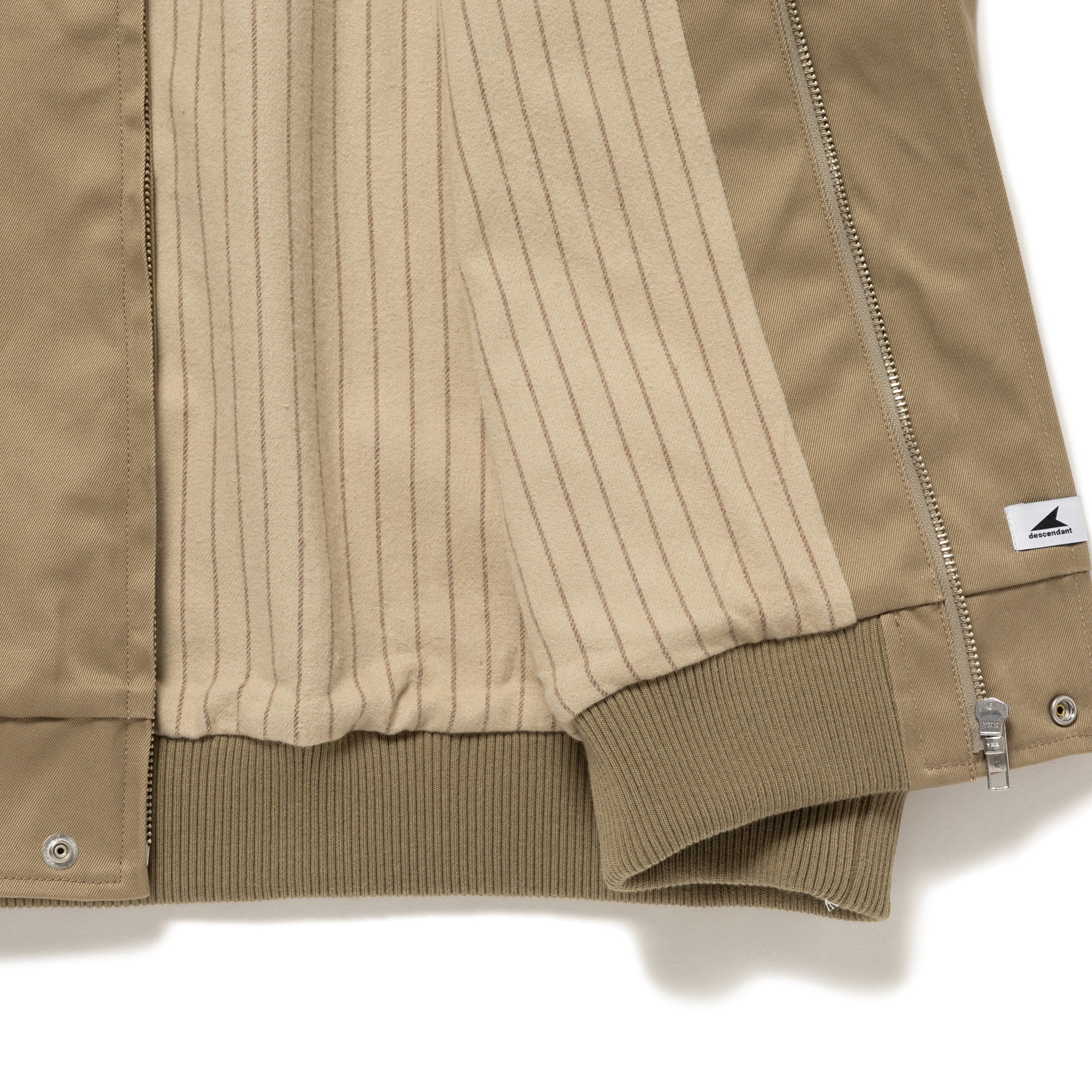 A derby jacket made with a high-density woven cotton outer fabric and a striped cotton fabric lining. Distinctive cup shoulder paneling. While paisley lining is traditionally the standard for derby jackets, an icon of the American West Coast, this version instead adopts a pinstripe lining for a refined twist.