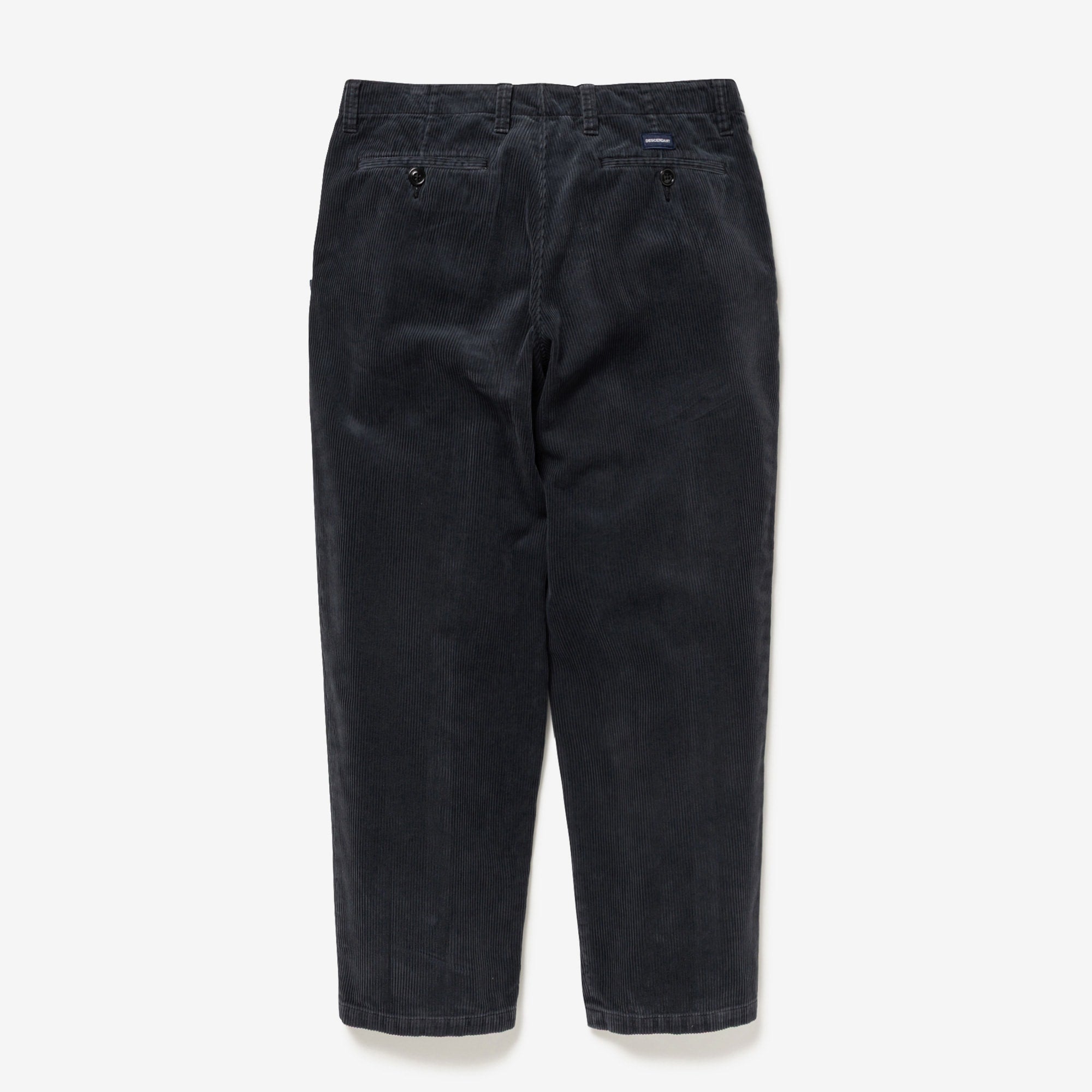 DC-6 corduroy trousers made from medium-wale, sulfur-dyed corduroy with a bio-wash finish. No-tuck waist and a relaxed, tapered silhouette from hip to hem. Slanted side pockets, single-welt back pockets, and a box logo patch on the back. “DC-6 | Wide” is printed on the inner waistband.MODEL :183cm / SIZE3 (LARGE)