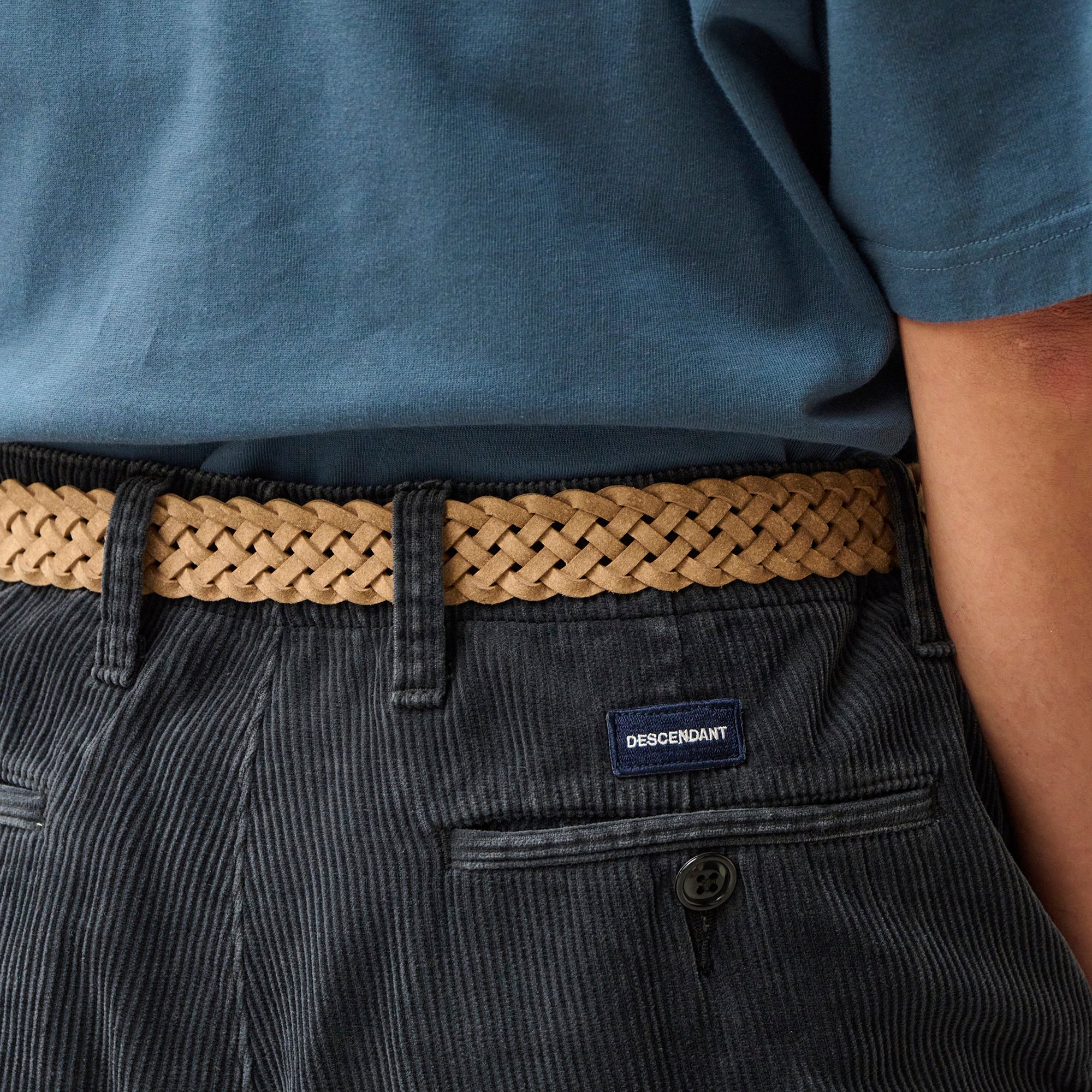 This mesh belt is made of environmentally friendly recycled leather and has a suede-like finish. The back of the buckle is engraved with proof of recycled leather use, with a CETUS woven label attached. The tip of the belt has an embossed CETUS logo. Length: 1050mm