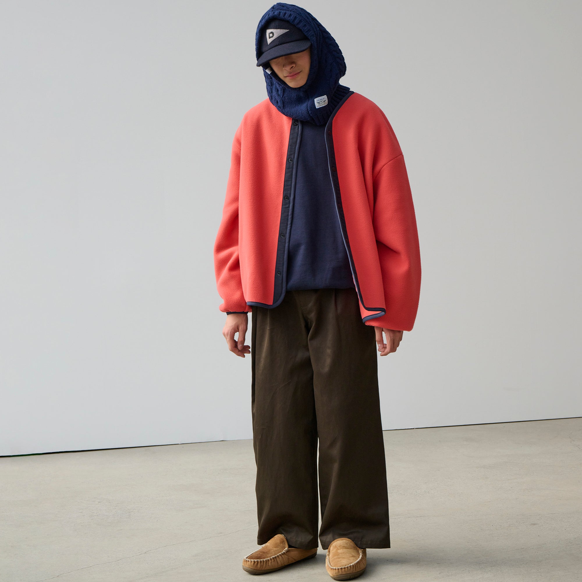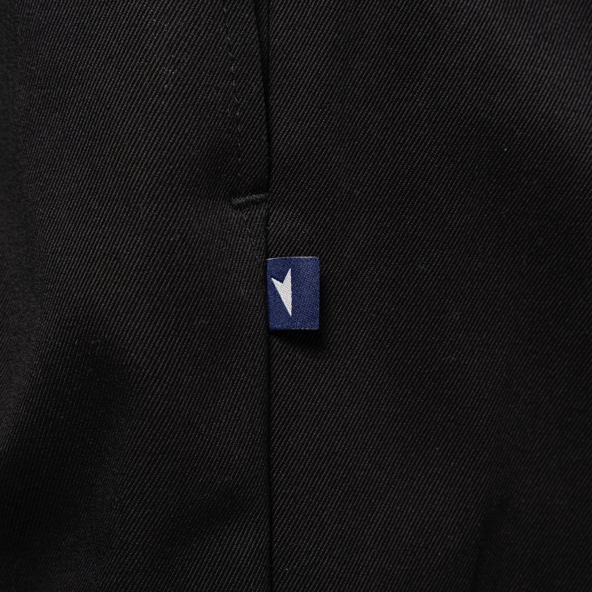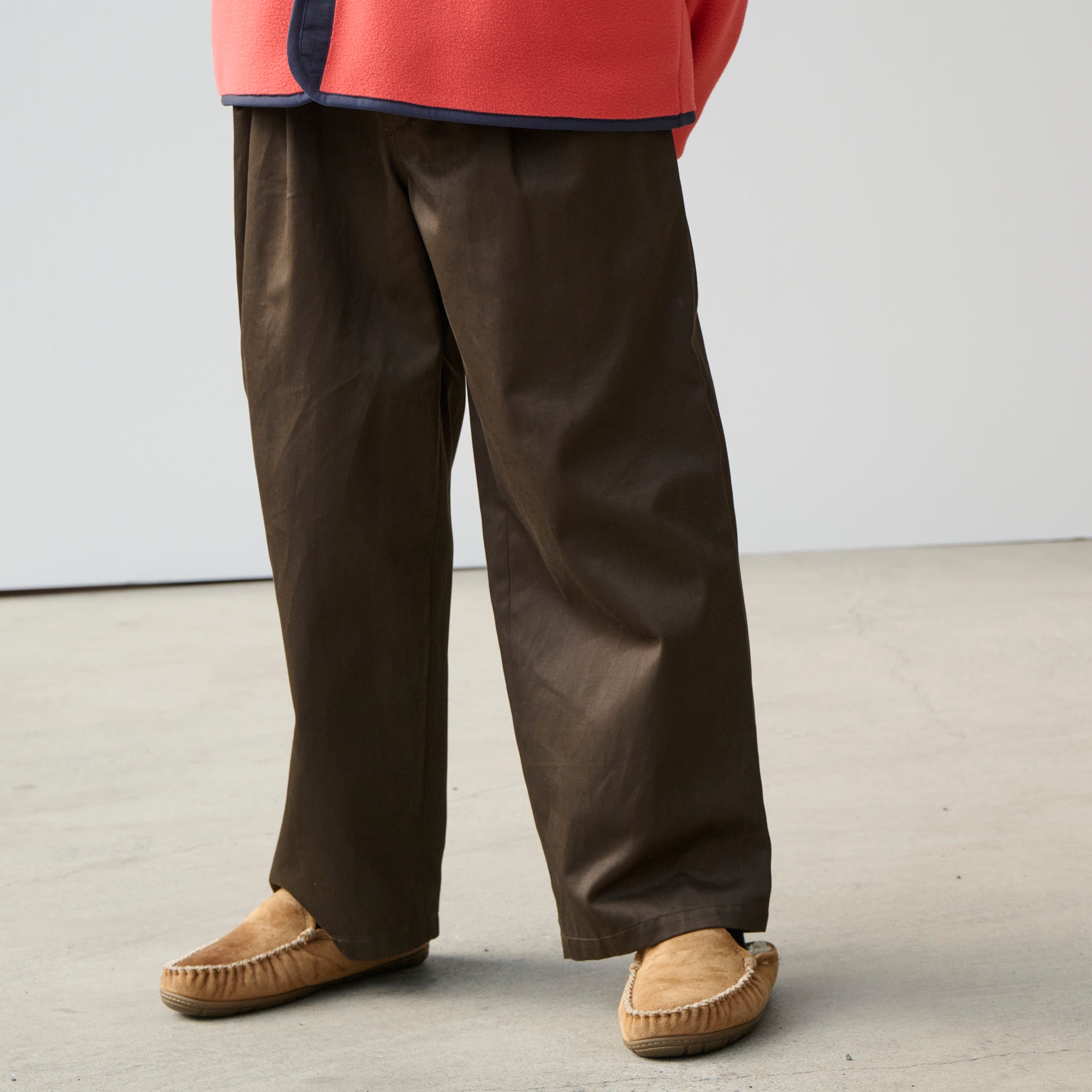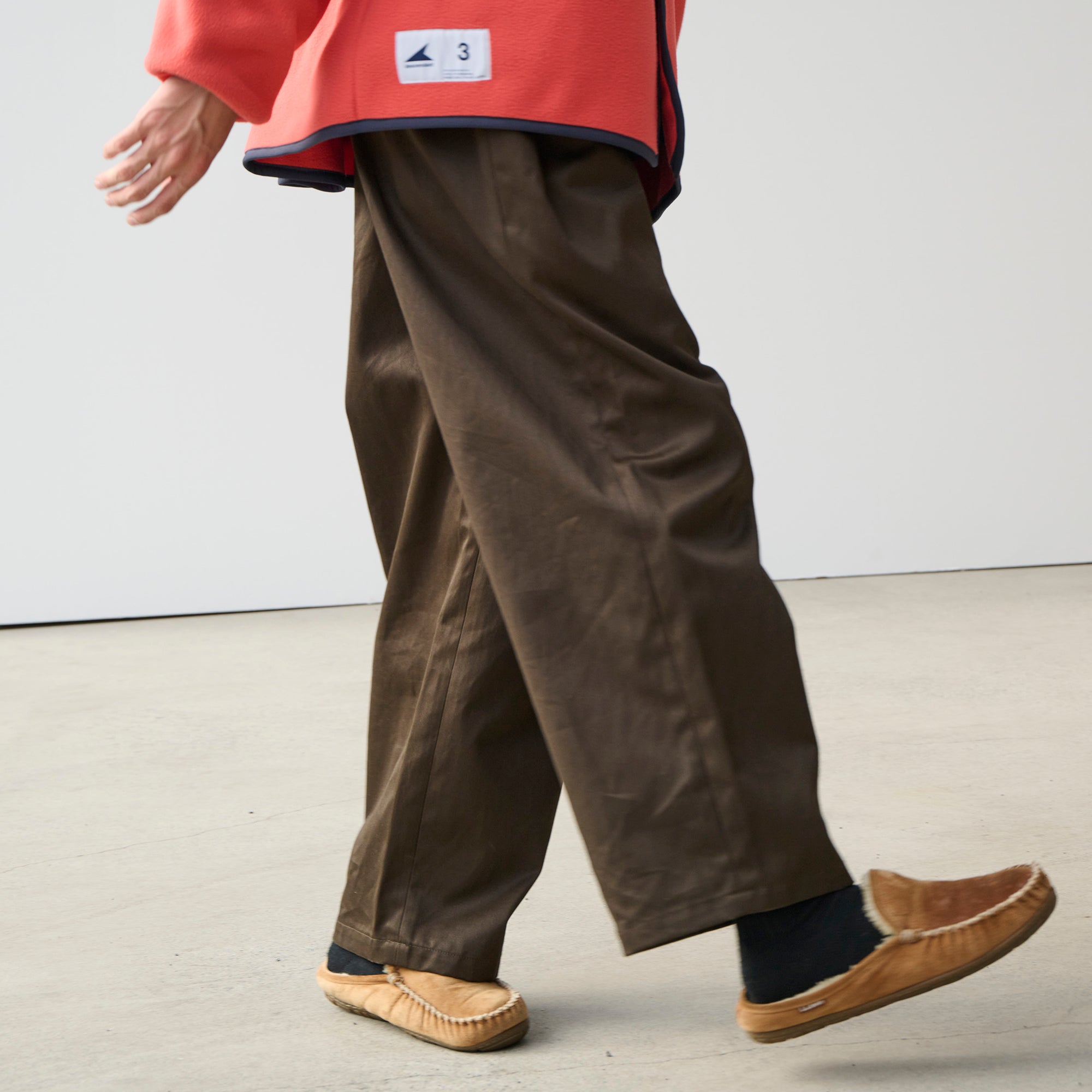 SF wide trousers made from high-density, tightly woven cotton chino fabric. Two-tuck waist and a wide, straight silhouette that extends cleanly from waist to hem. Slanted side pockets, single-welt back pockets, and a woven CROSS PADDLE label on the back. “SF | Wide” is printed on the inner waistband.