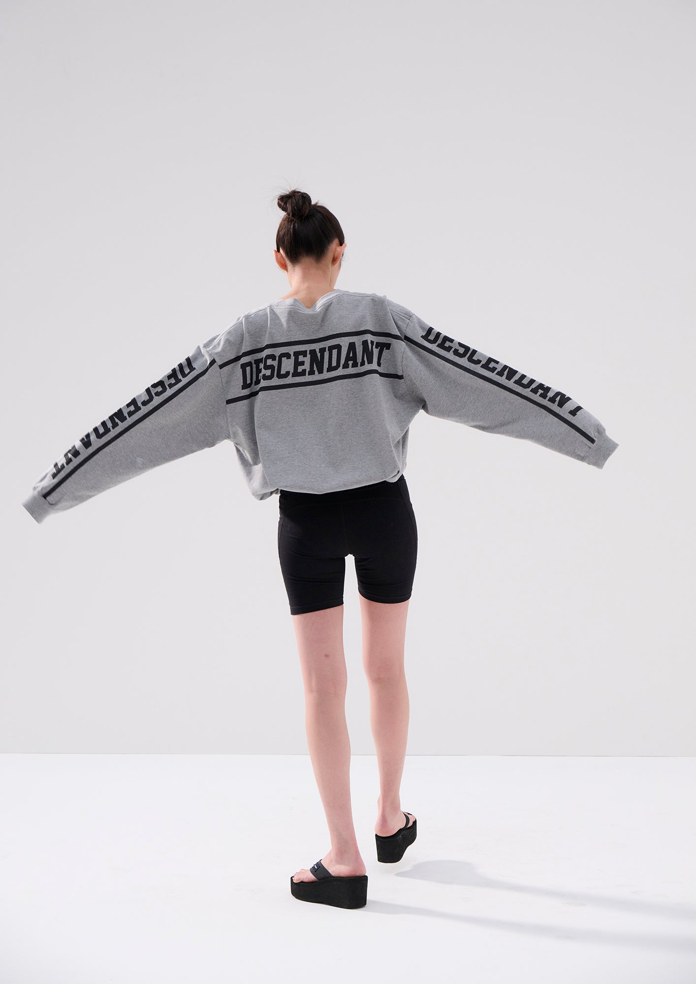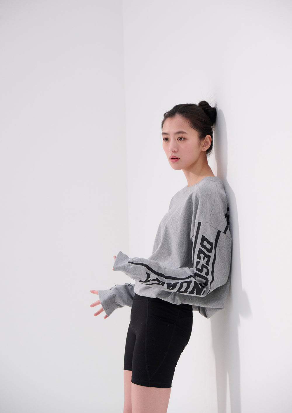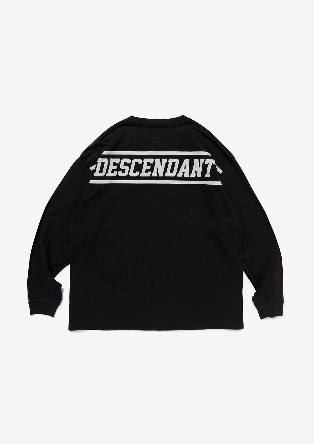 Long-sleeve cut-and-sewn made of organic cotton jersey. Loose silhouette with the DIRT logos printed within lines on the back and both sleeves. Original brand taping along the seam of the neckline. A woven CETUS size label is attached to the right front hem. Available in three colors: black, blue, and gray.