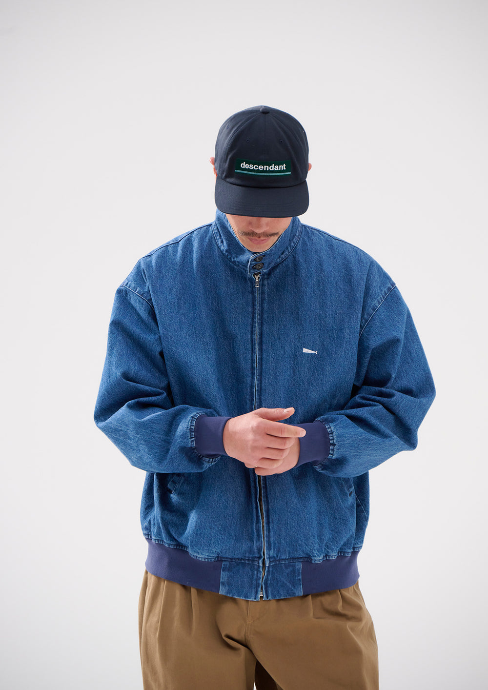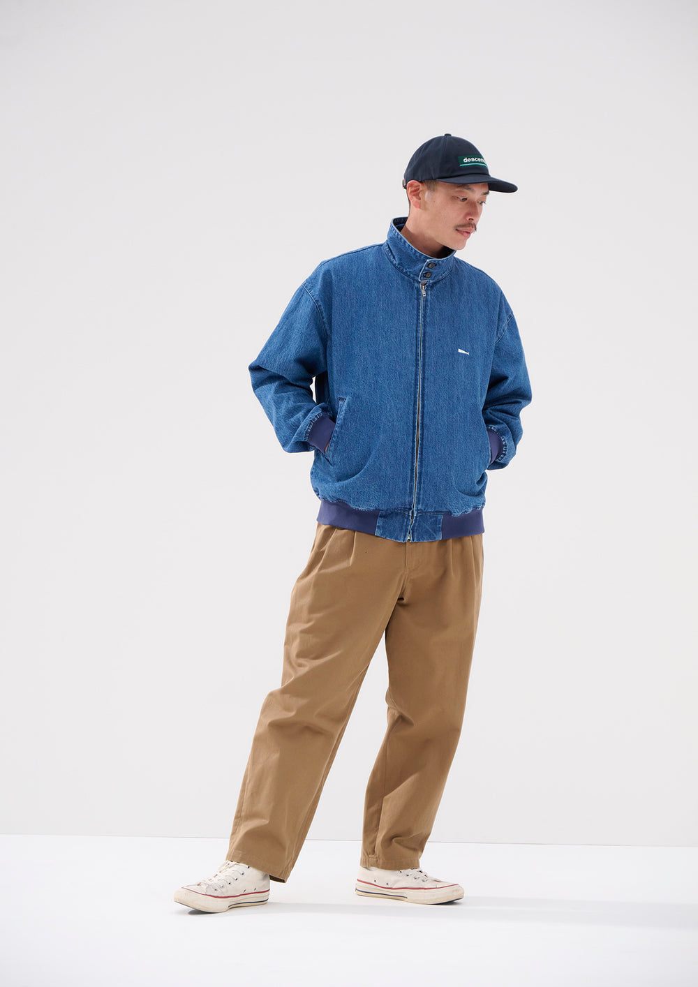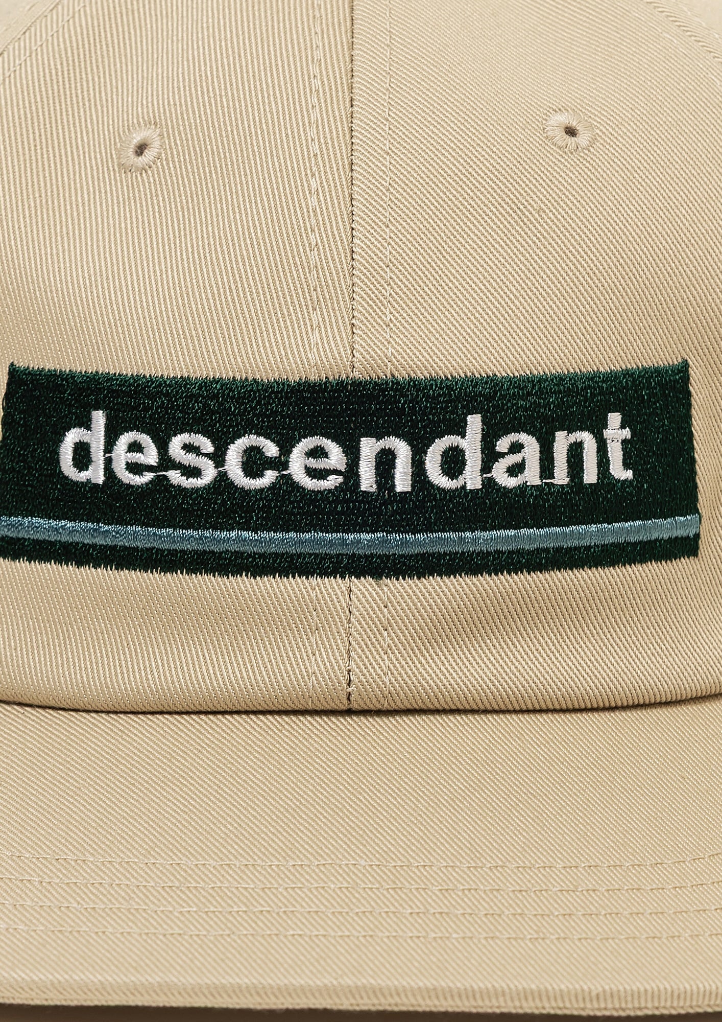 Six-panel cap made from organic cotton drill fabric. The HORIZON logo on the front panel, a CETUS logo embroidered on the back, and a synthetic leather adjuster strap. Available in two colors: beige and navy.