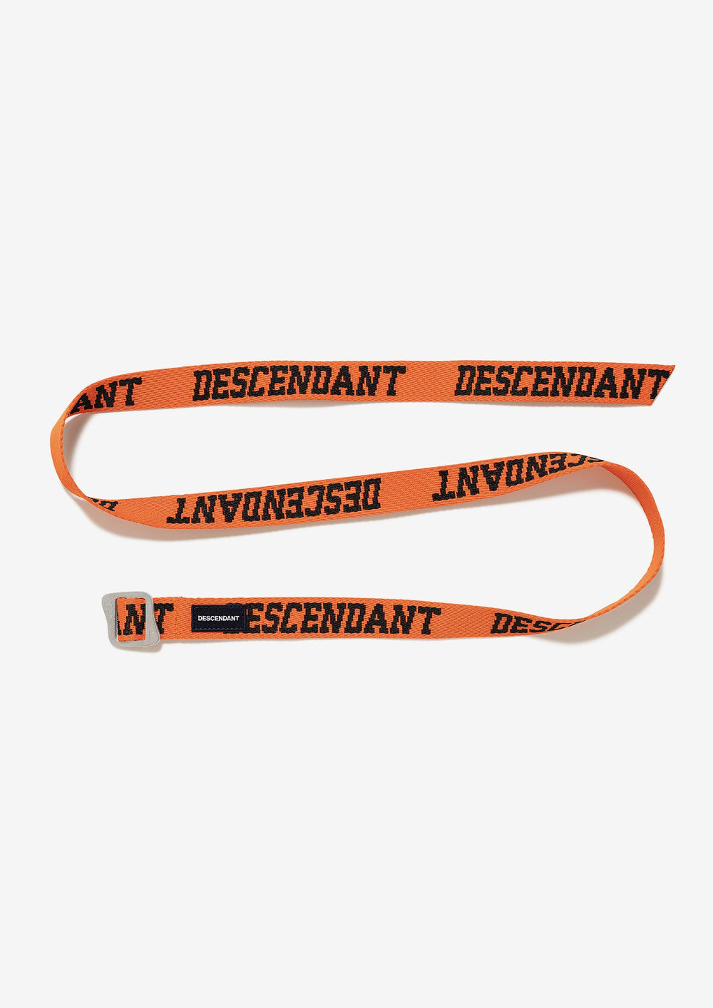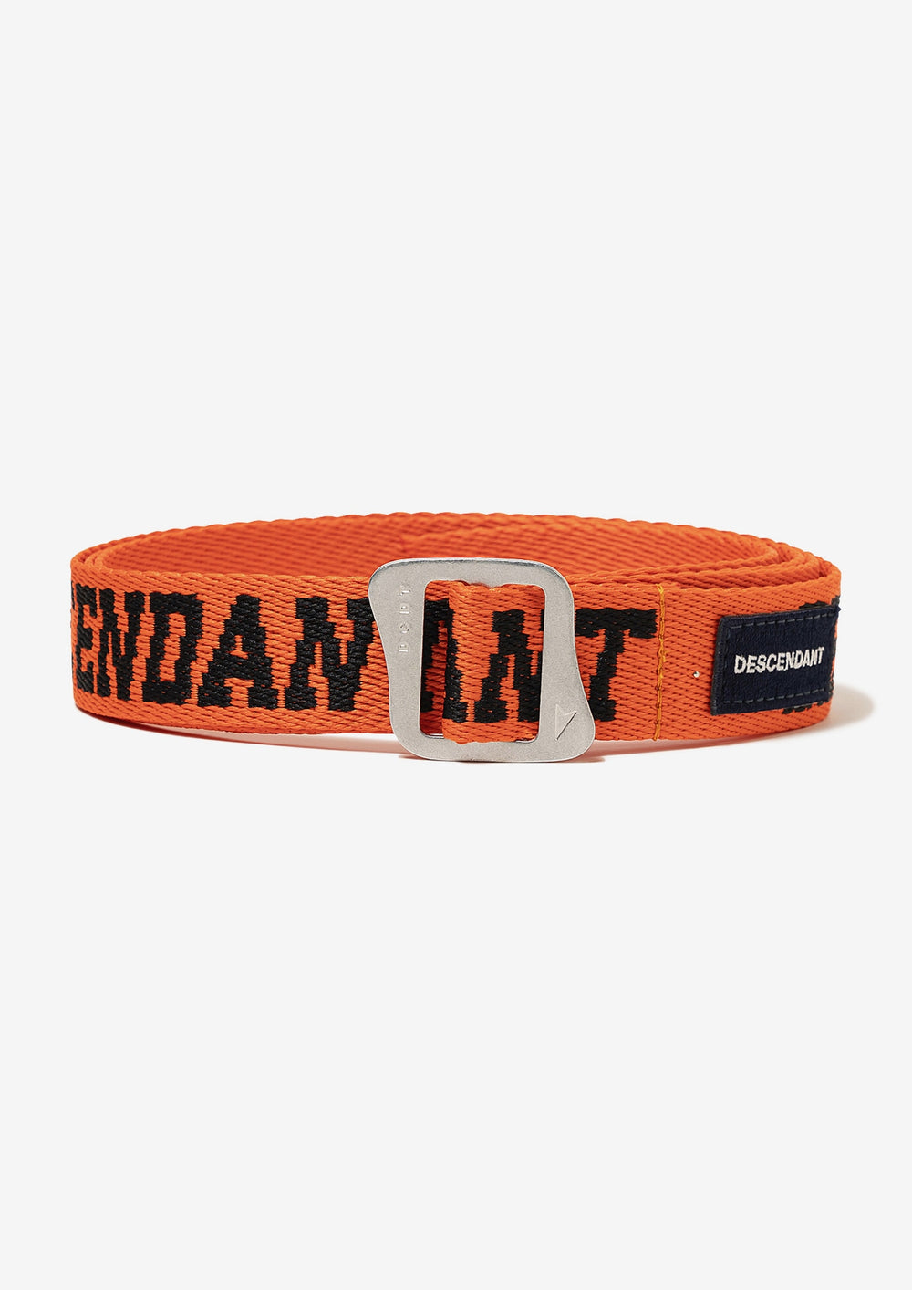 A webbing belt made of nylon with the DIRT logo woven into the strap. The buckle is engraved with the DCDT and CETUS logos and features a box logo patch. Available in three colors: black, navy, and orange.