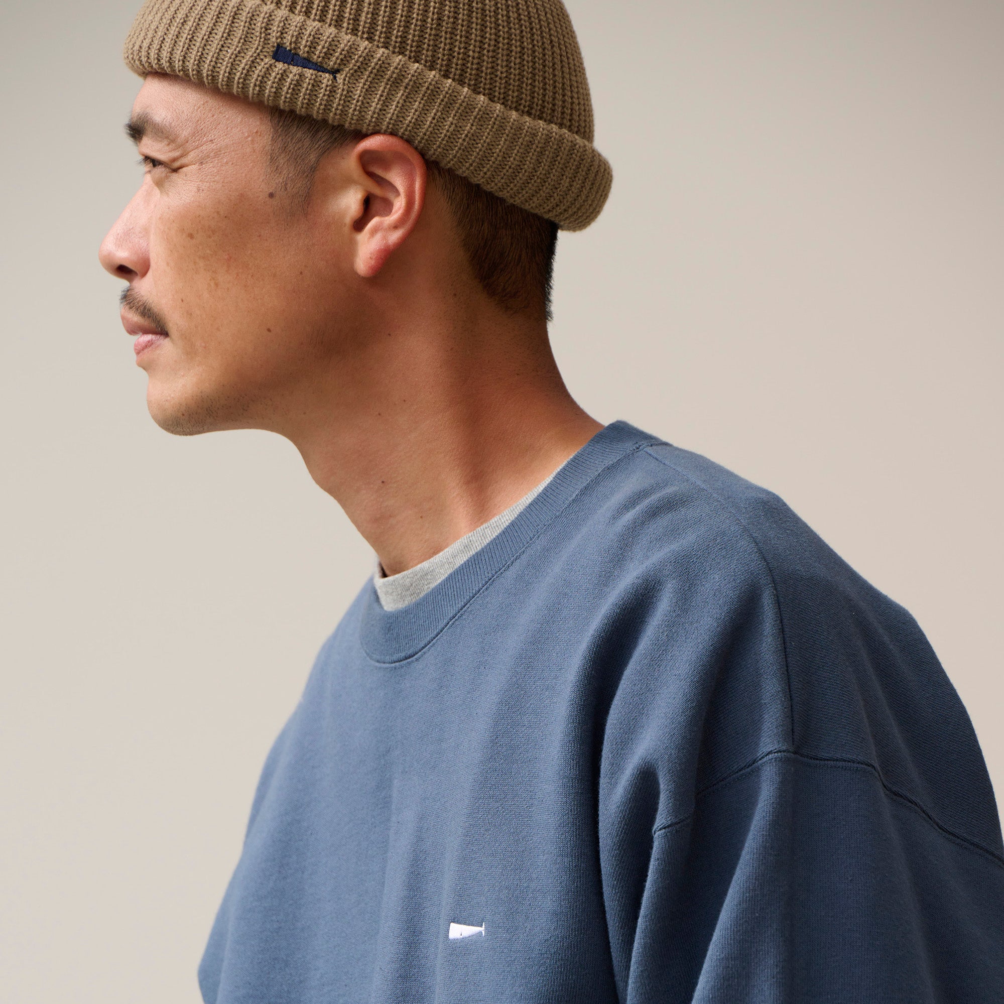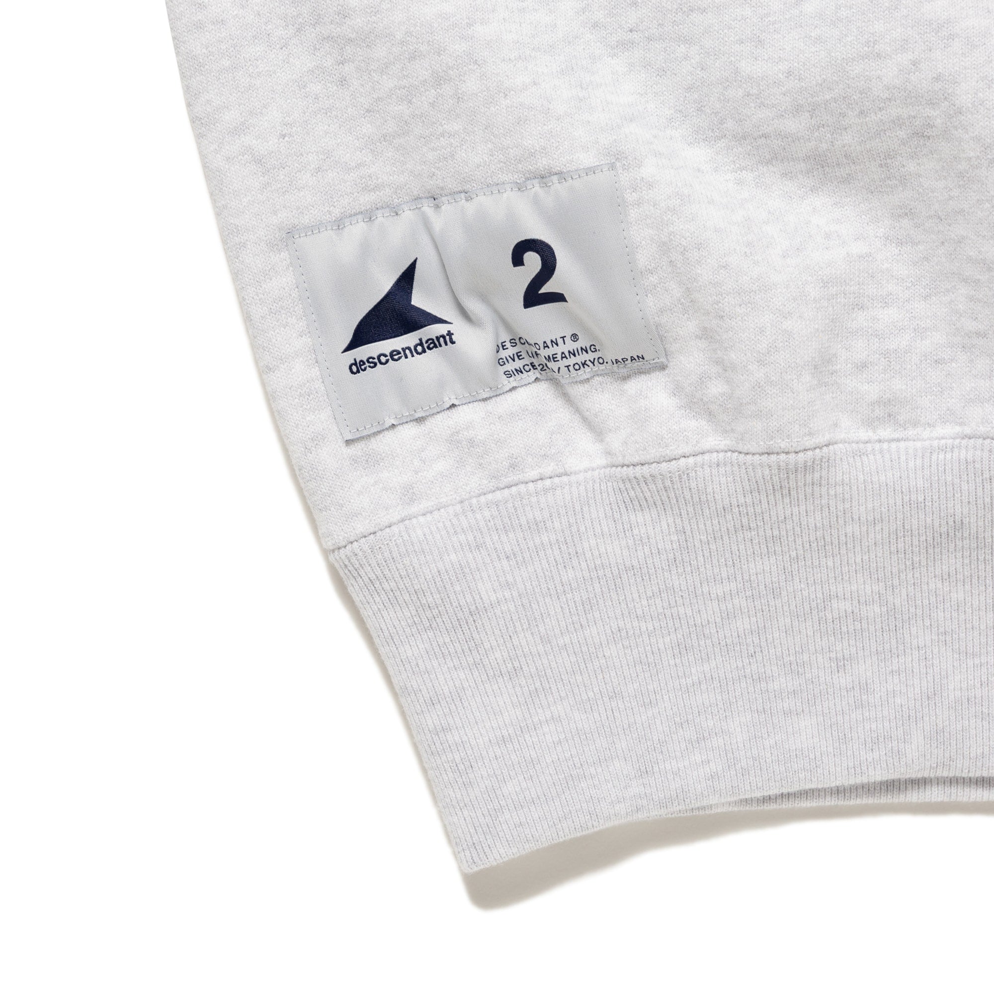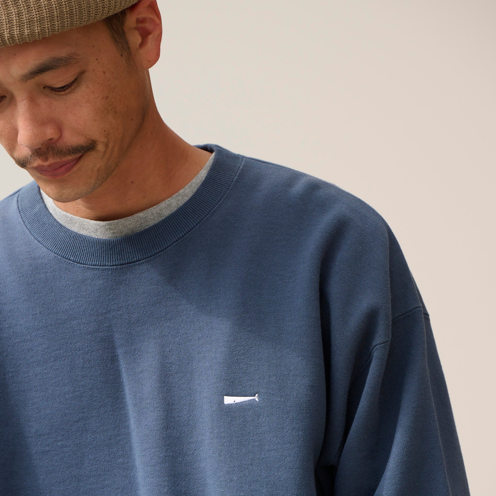厚手のコットン裏毛を使用したクルーネックスウェットシャツ。ゆったりした身幅と裾回りを絞ったシルエット。左胸にコントラストカラーのCACHALOTの刺繍ロゴ。襟ぐりの継ぎ目にはオリジナルテープのパイピング。右前裾にサイズを表示したCETUSの織りネーム付き。
