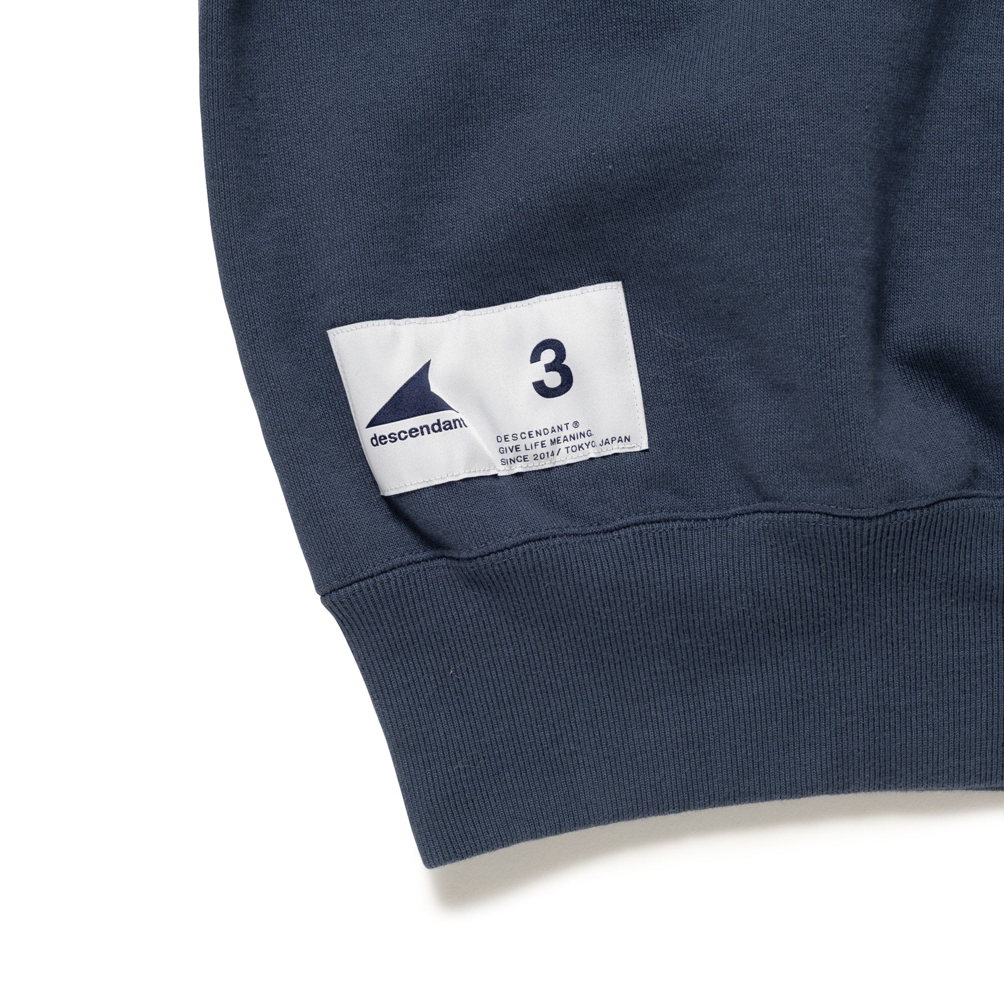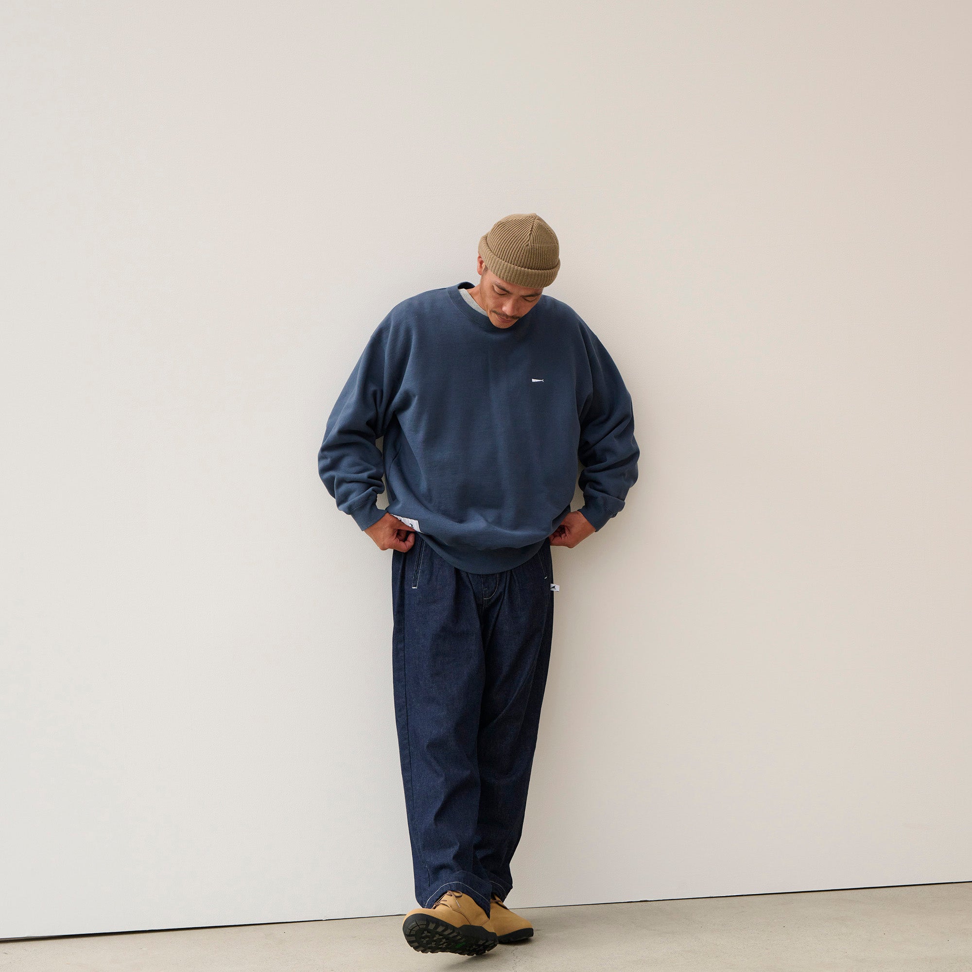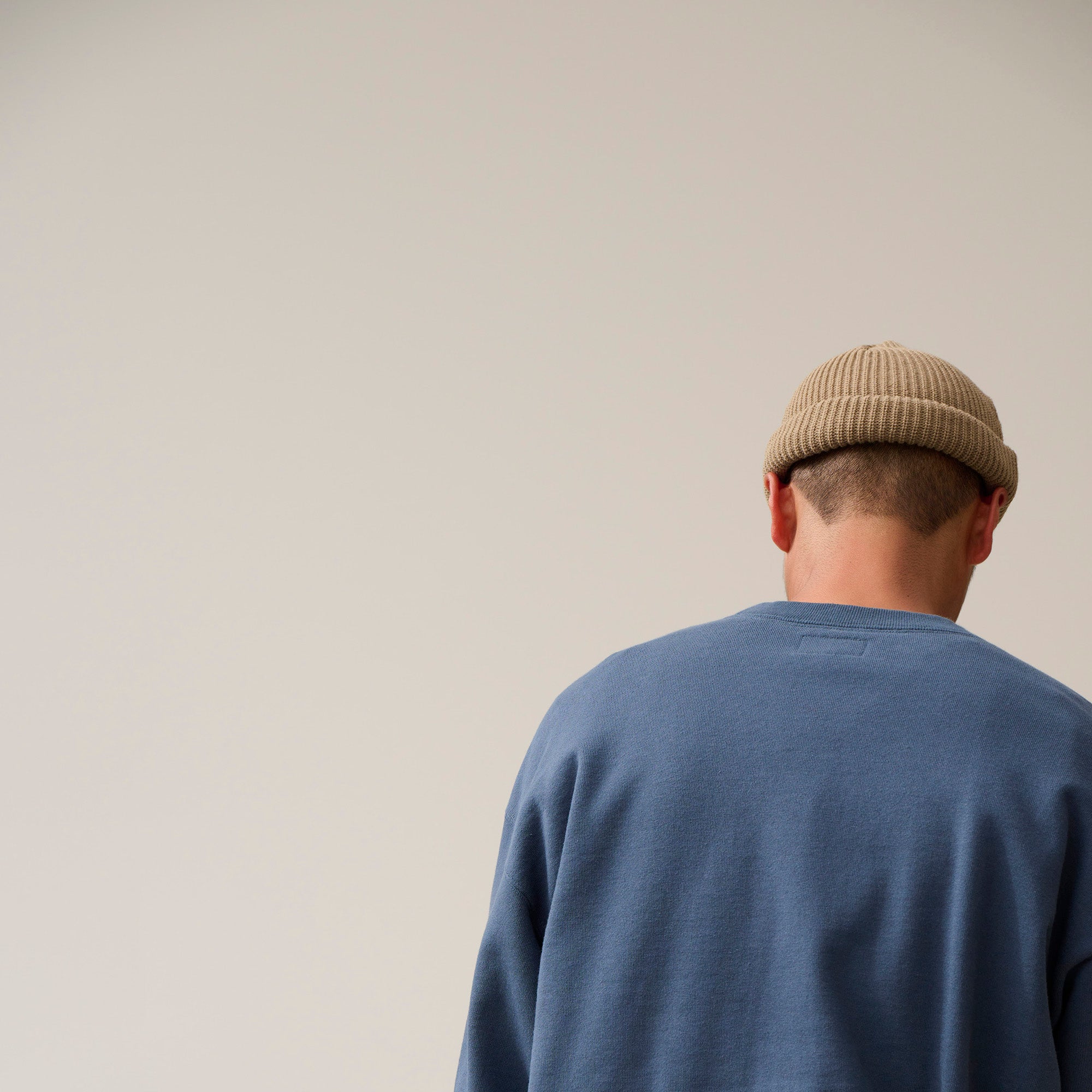 厚手のコットン裏毛を使用したクルーネックスウェットシャツ。ゆったりした身幅と裾回りを絞ったシルエット。左胸にコントラストカラーのCACHALOTの刺繍ロゴ。襟ぐりの継ぎ目にはオリジナルテープのパイピング。右前裾にサイズを表示したCETUSの織りネーム付き。