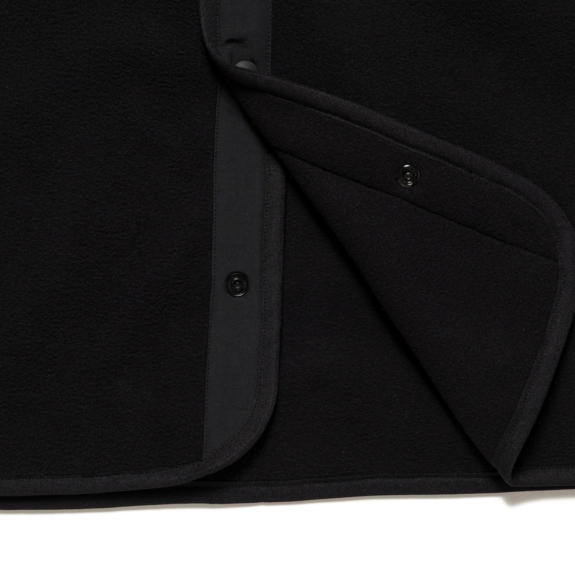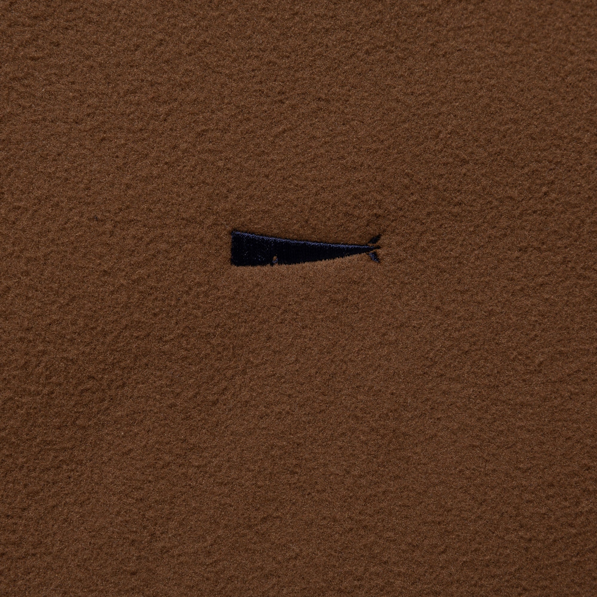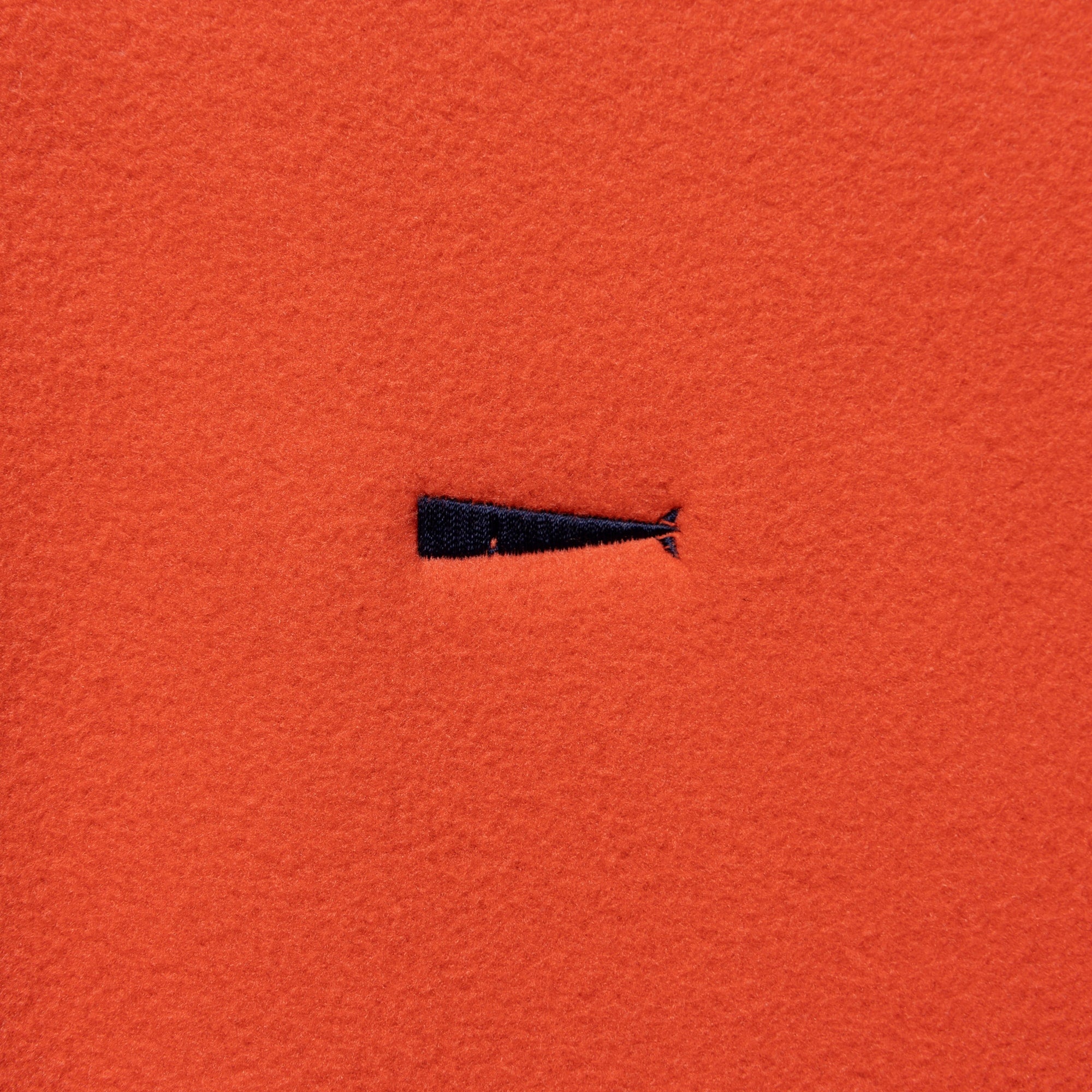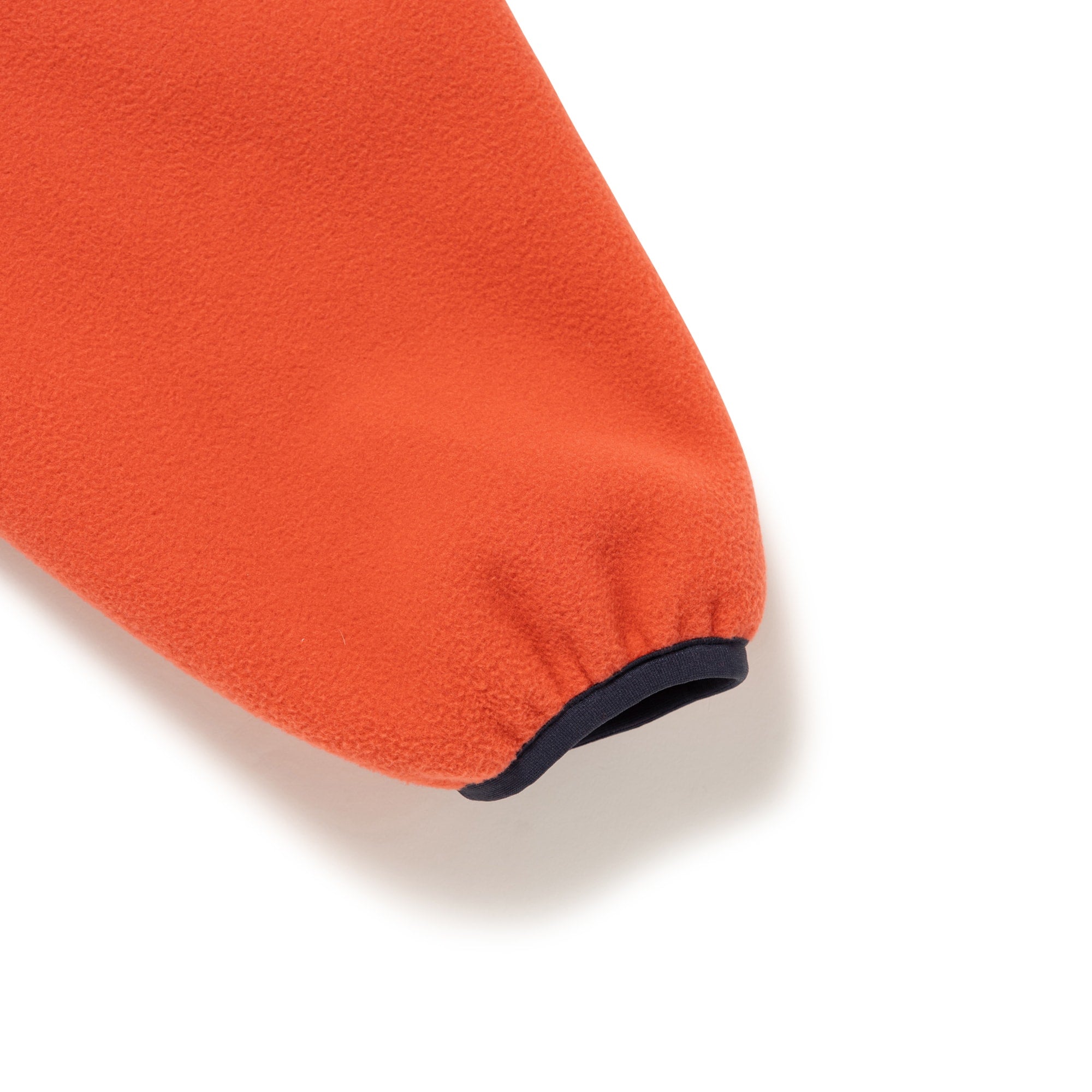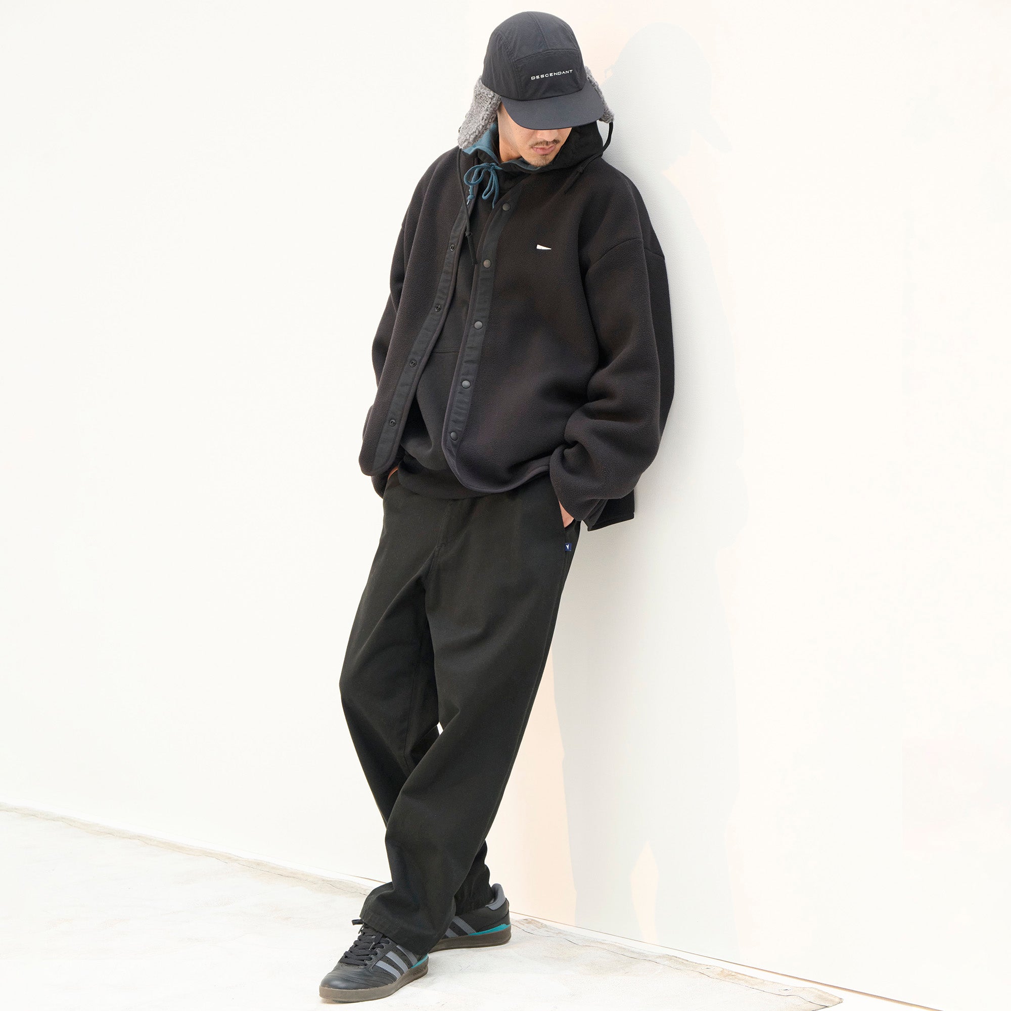 厚手のヘビーウェイトフリースを使用し、襟ぐりから前立て、袖口、裾回りを別布でパイピング処理したスナップボタン留めのフリースカーディガン。幅広い身頃のボックスシルエット襟ぐりの継ぎ目にはオリジナルテープのパイピング。右前裾にサイズを表示したCETUSの織りネーム付き。ブラック、ブラウン、オレンジの3色展開。