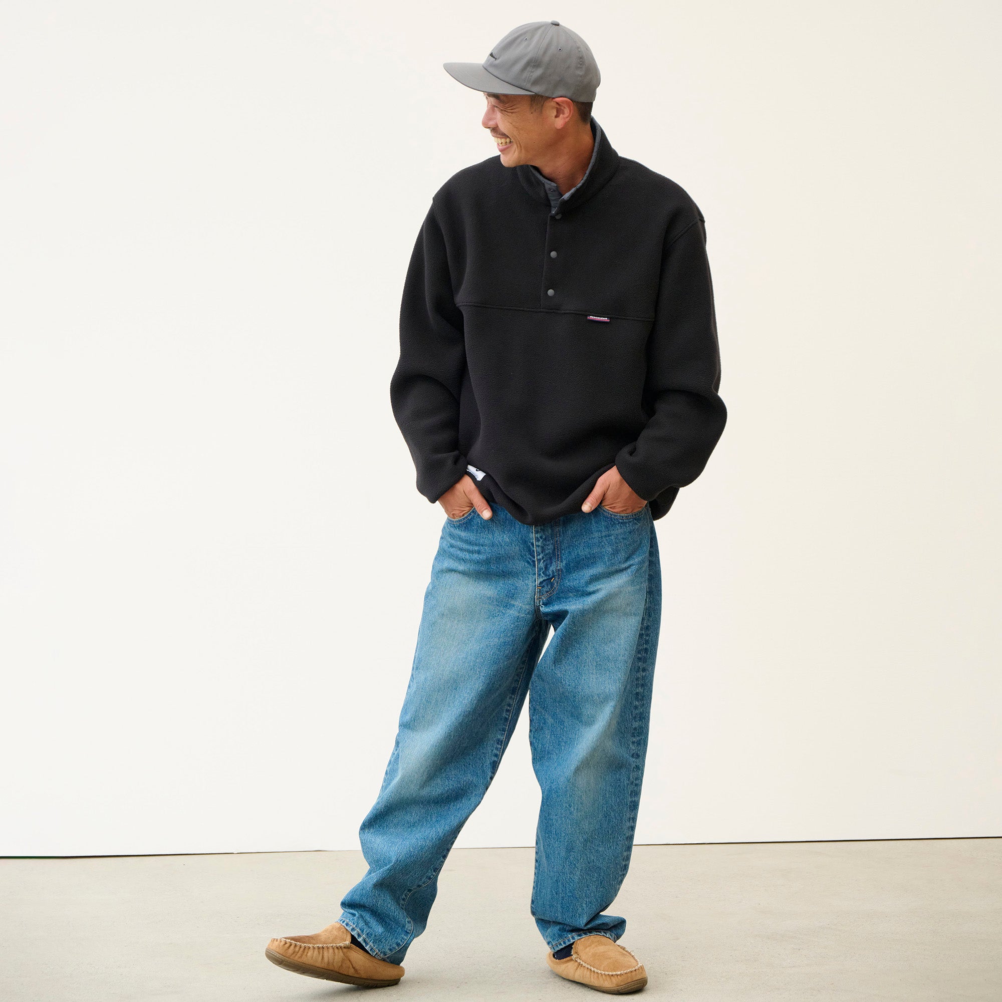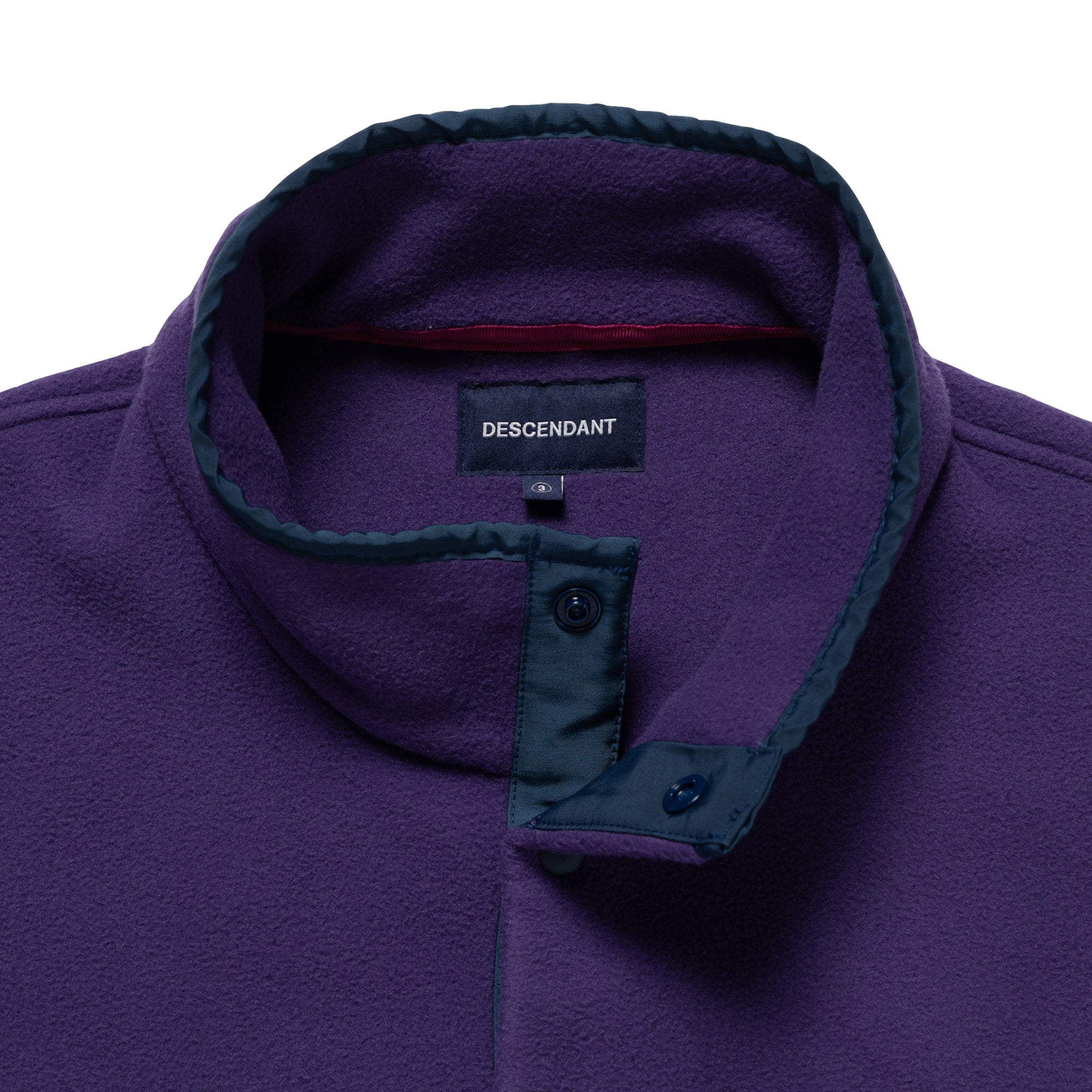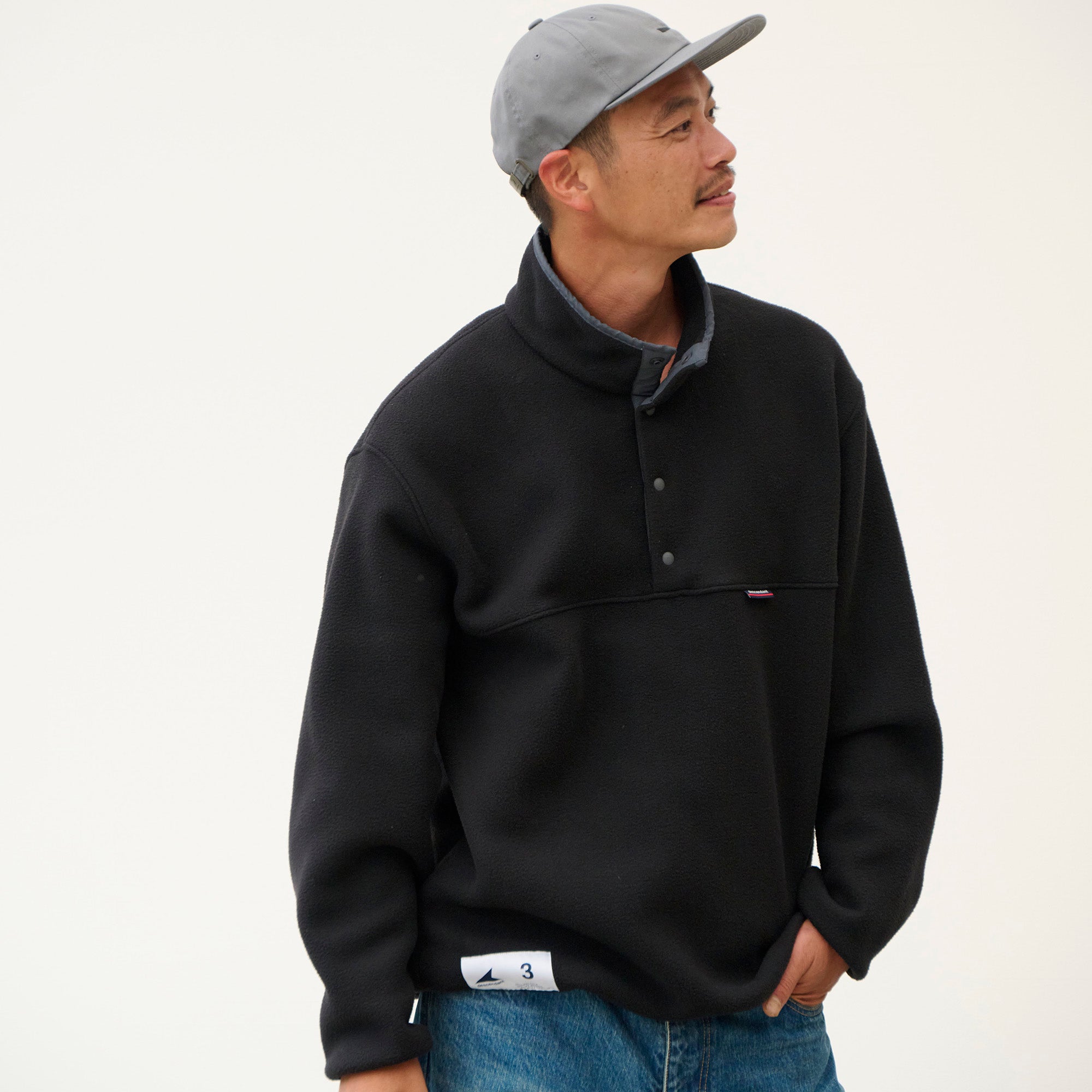 厚手のヘビーウェイトフリースを使用したドットボタン留めハーフプラケット仕様のフリースプルオーバーシャツ。ゆったりした身幅のシルエット。袖口と裾回りをパイピング処理。立ち襟の背面にHORIZONロゴの織りネーム。襟ぐりの継ぎ目にはオリジナルテープのパイピング。右前裾にサイズを表示したCETUSの織りネーム付き。ブラック、パープル、ティールの3色展開。