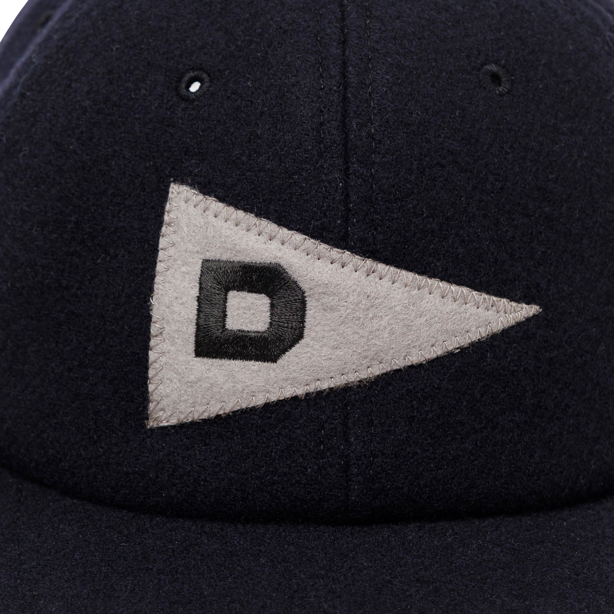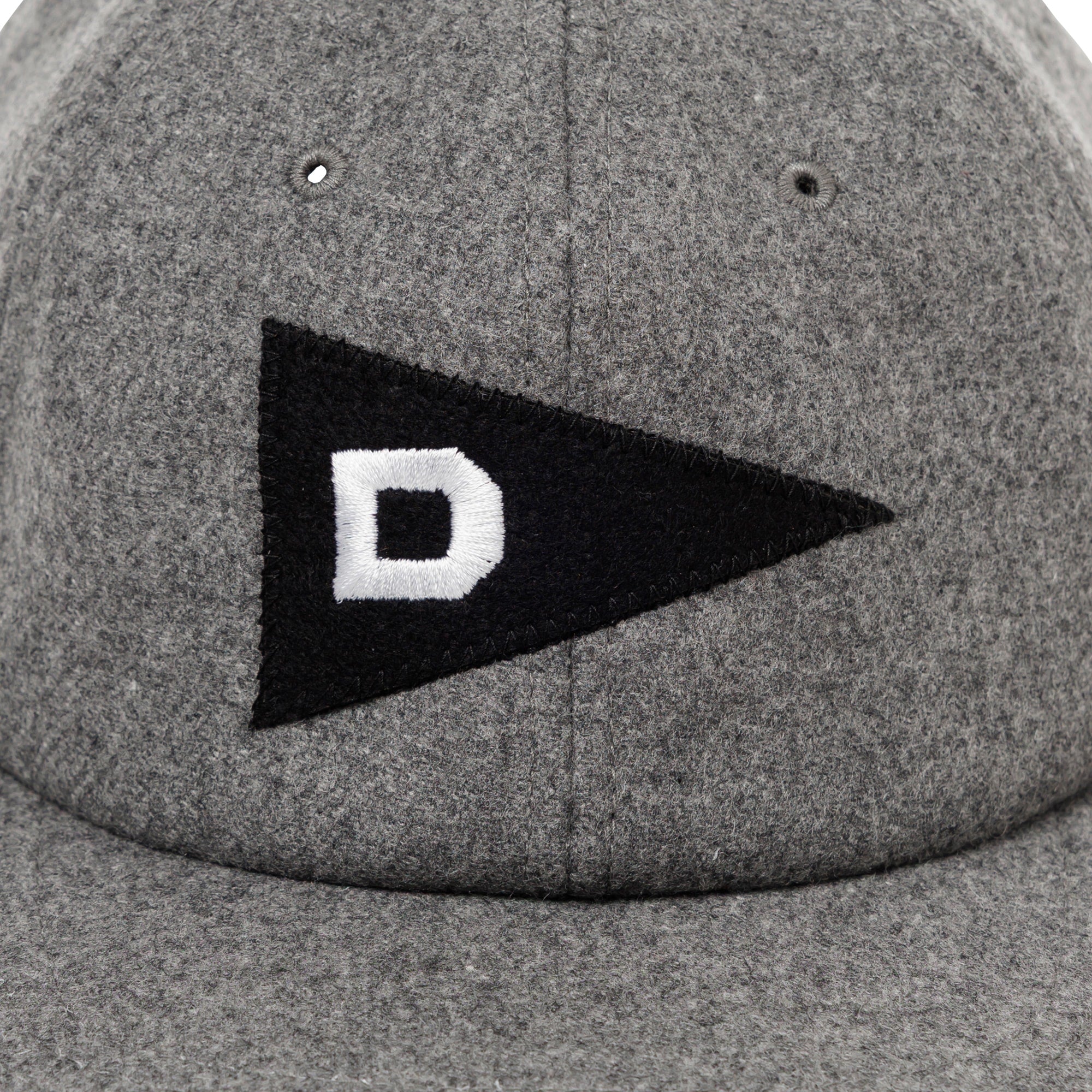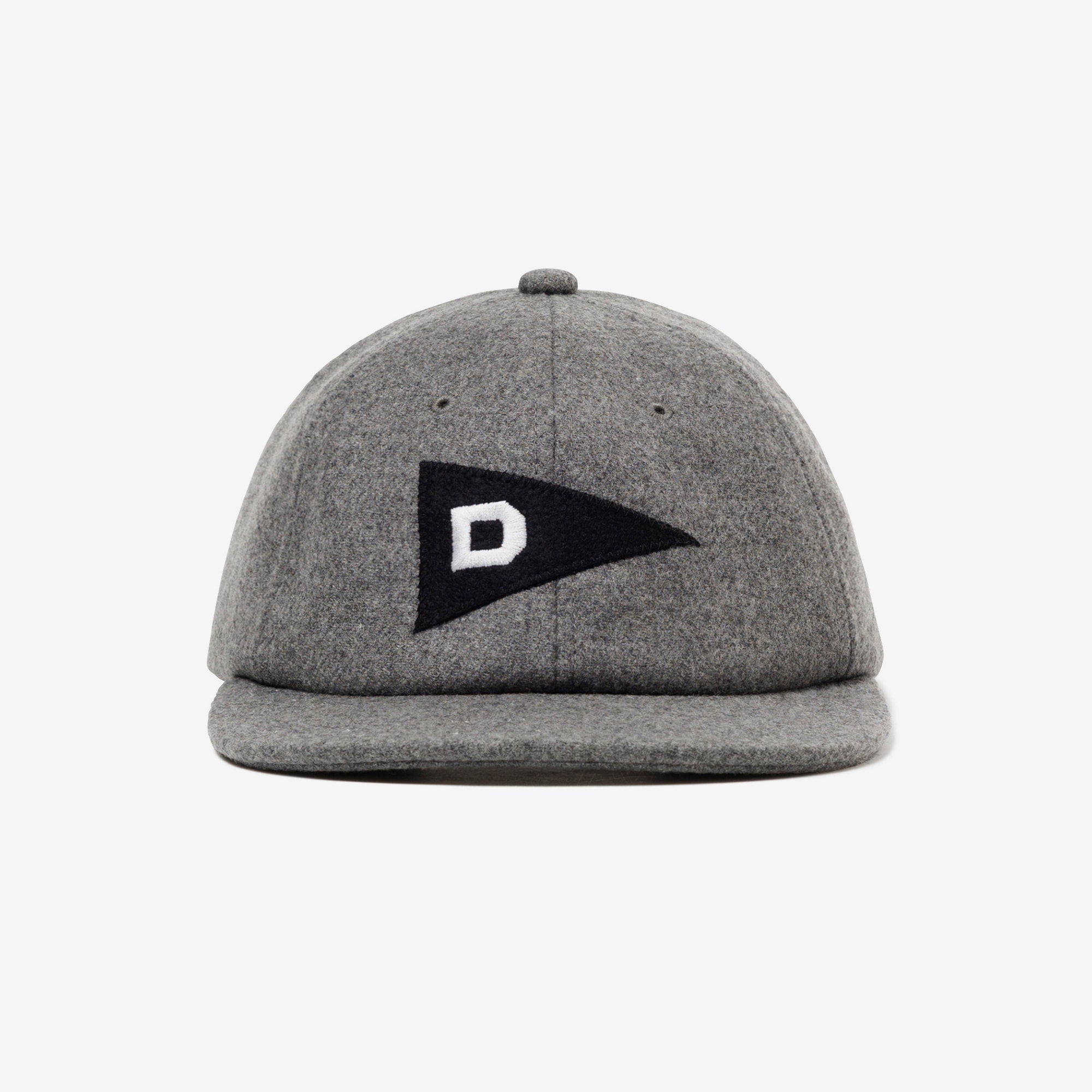 ウール/ナイロン混紡の二重織メルトンを使用した6パネルキャップ。フロントパネルにLETTEREDのフェルトアップリケを縫い付け、背面にはFLUKE UPのグラフィックを刺繍、シンセティックレザー製のアジャスターストラップ付き。