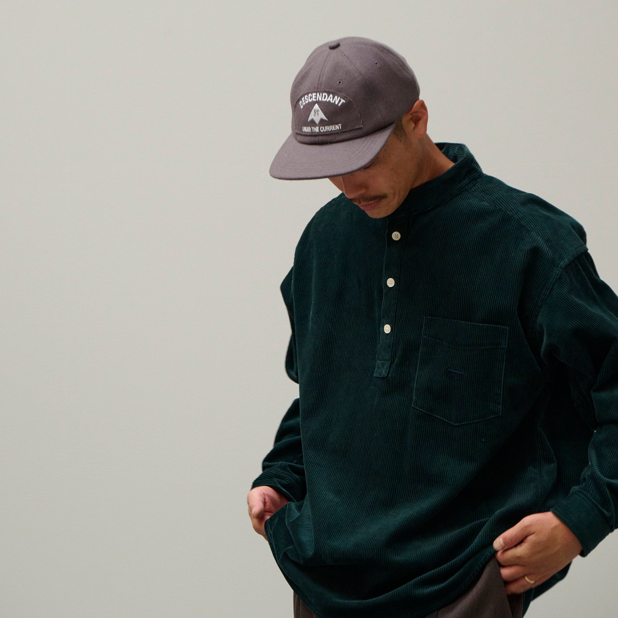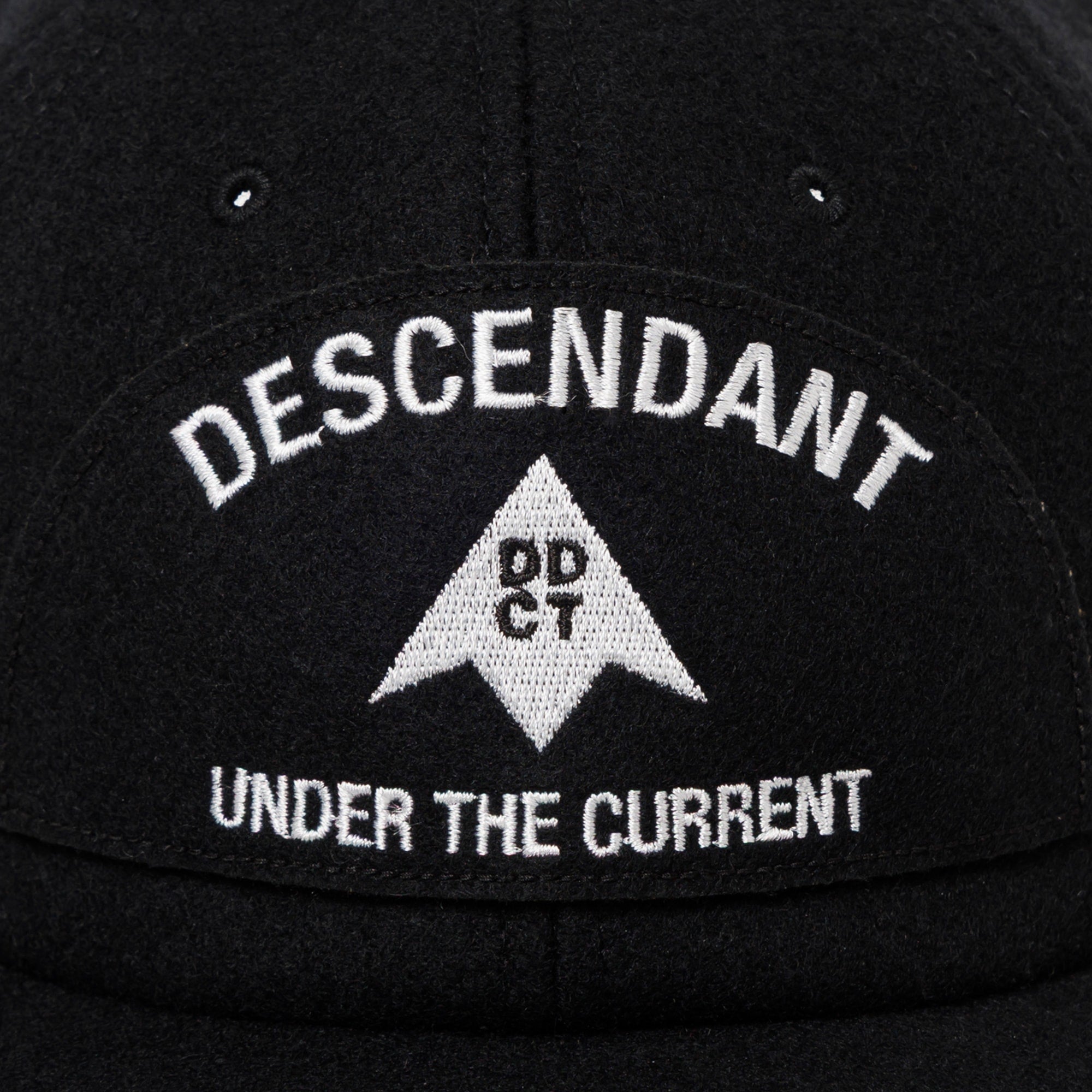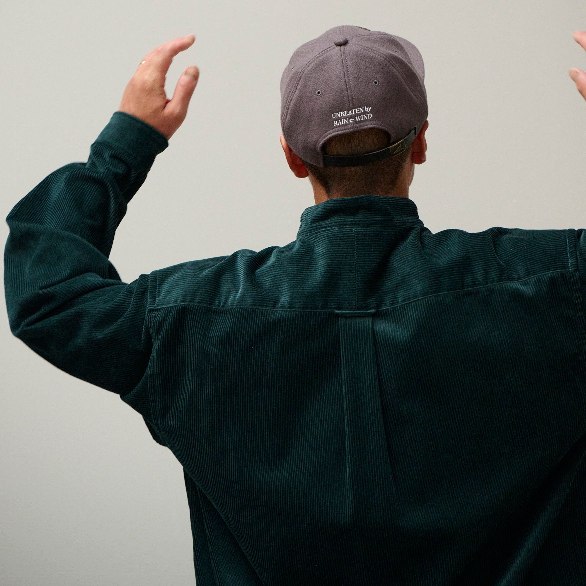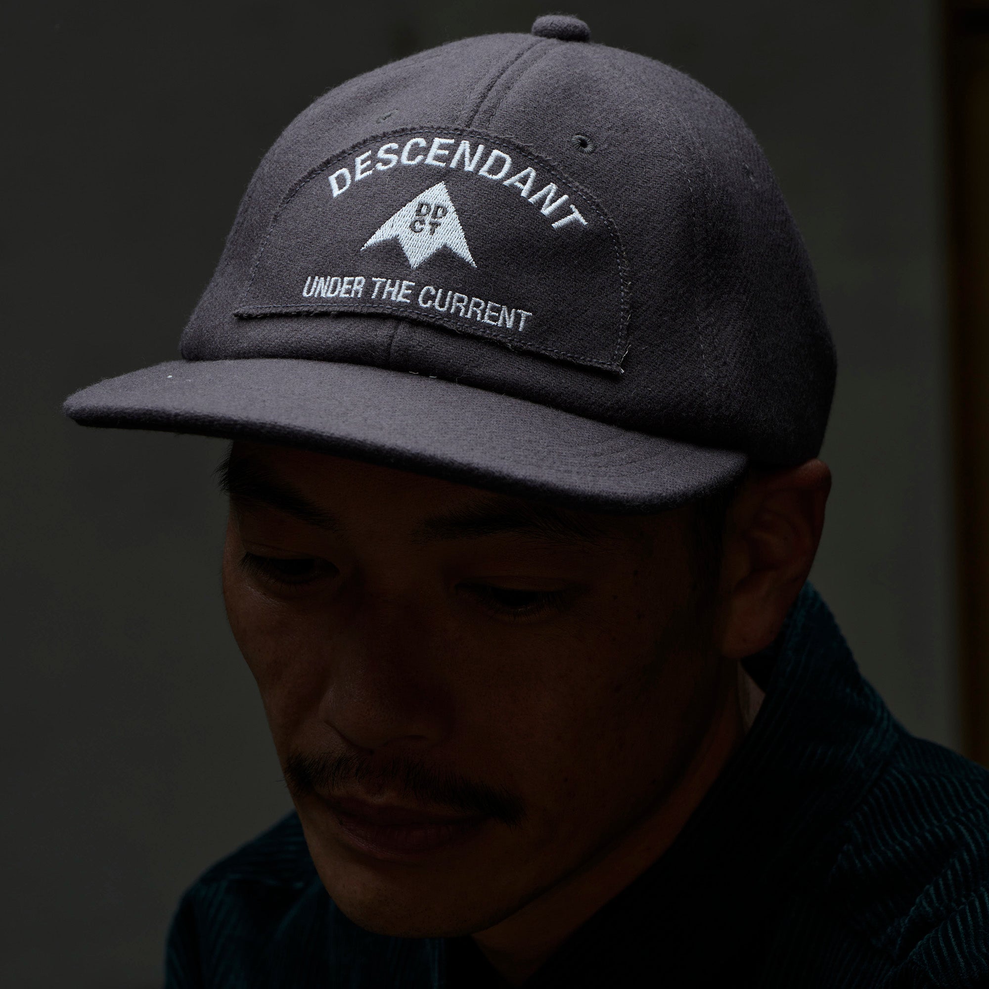 ウール/ナイロン混紡の二重織メルトンを使用したアポロキャップ。フロントパネルにTEAMの刺繍パッチをあしらい、背面にはUNBEATEN by RAIN & WINDの刺繍ロゴとシンセティックレザー製のアジャスターストラップ付き。