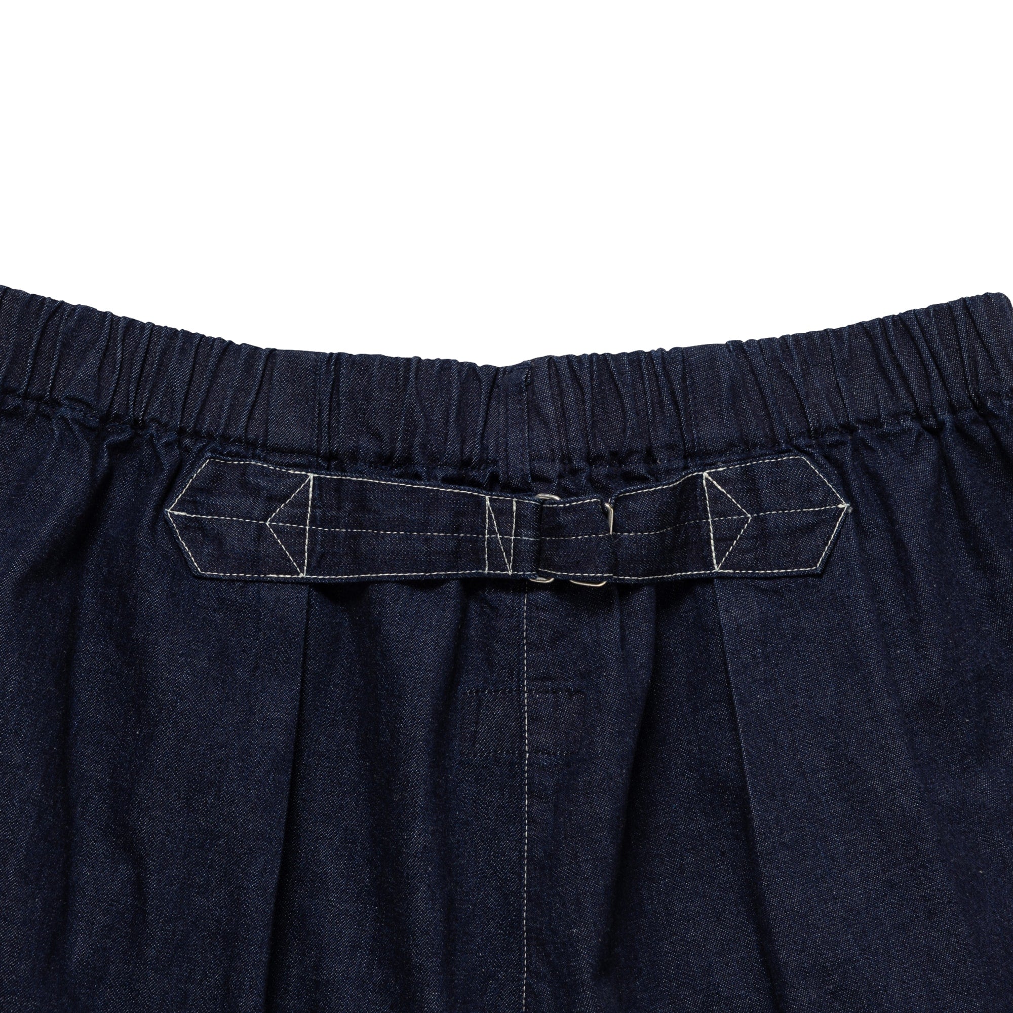 アメリカで創業した日本のヴィンテージワークウェアブランド、Post O’Alls(ポストオーバーオールズ)とのコラボレーション。8ozデニムを使用し、白糸のステッチでアクセントを効かせたワークトラウザーズ。ワンタックの腰回りから裾口へゆったりテーパードしたシルエット、ゴム入りのウエストに共地のベルトを通し、前身頃の左右に両玉縁ポケット、背面にシンチバック付き。