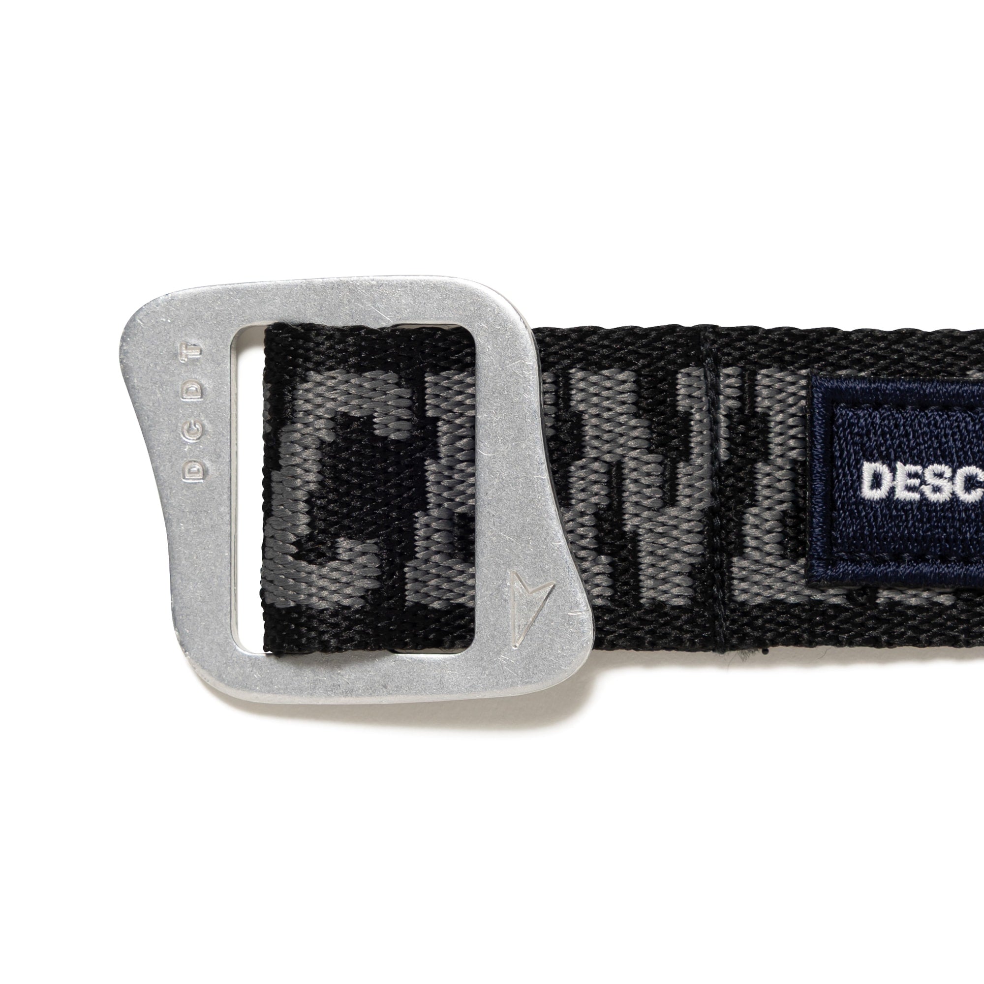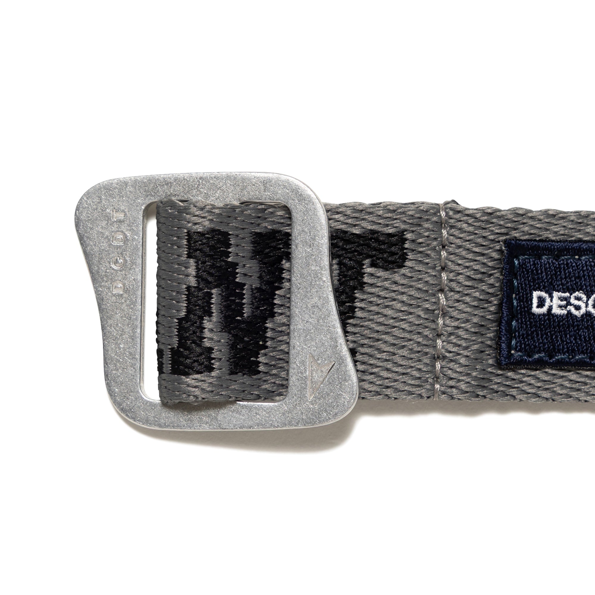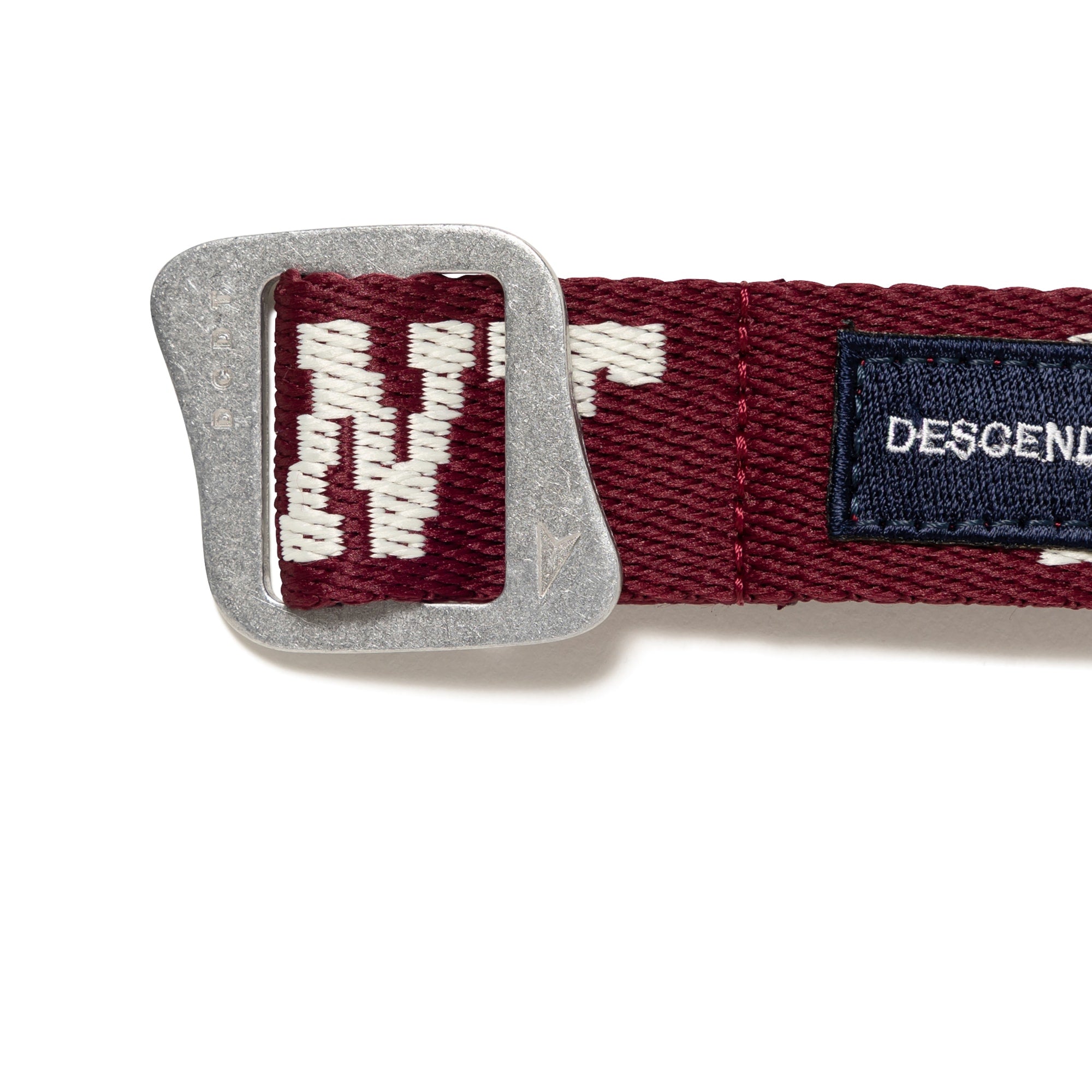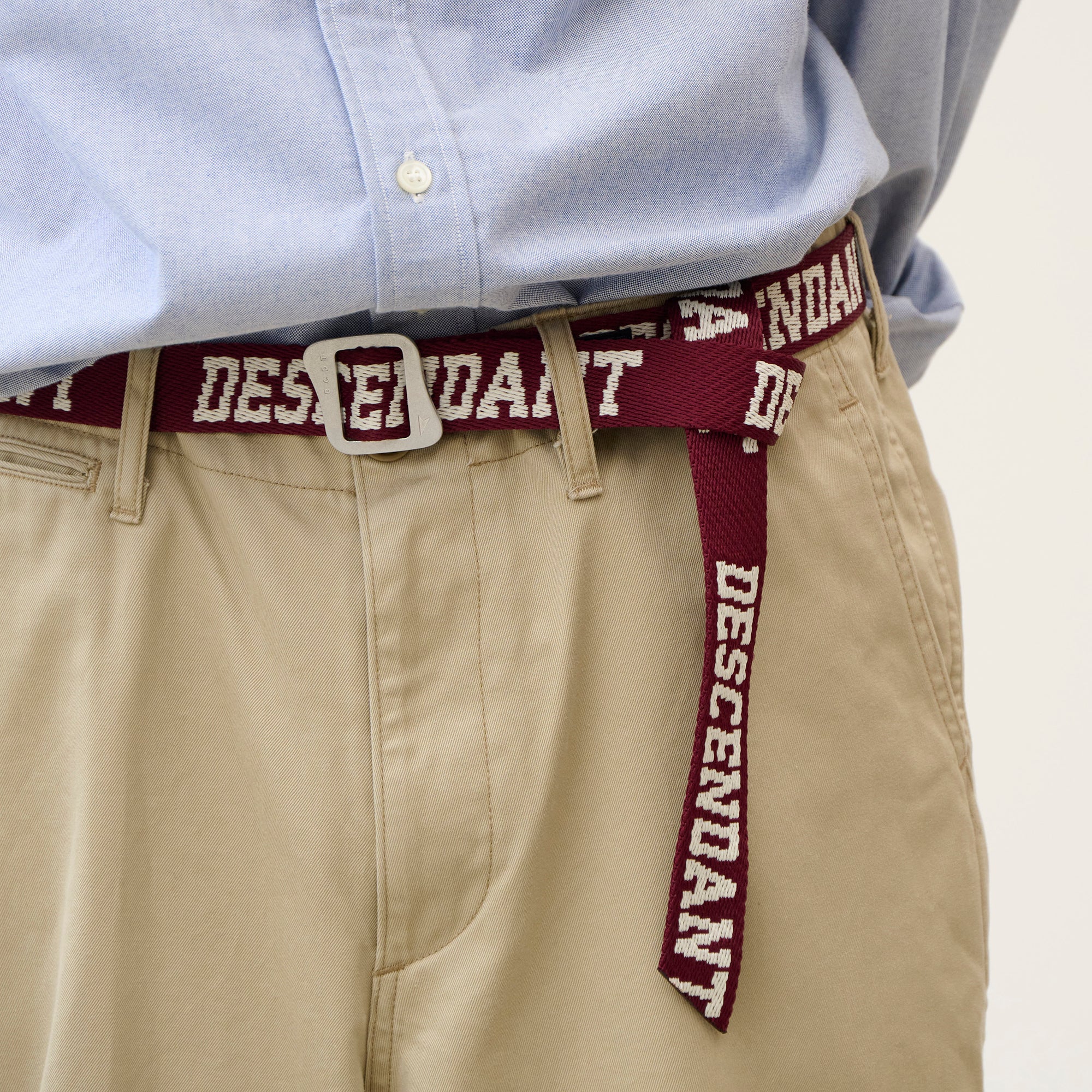 ナイロン製のストラップにDIRTロゴを編み込んだウェビングベルト。バックルにDCDTとCETUSロゴを刻印、ボックスロゴのパッチ付き。ブラック、バーガンディ、グレーの3色展開。L1350mm