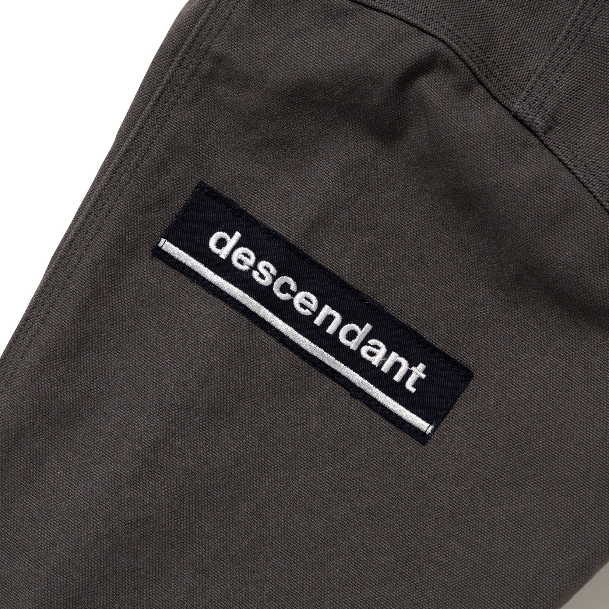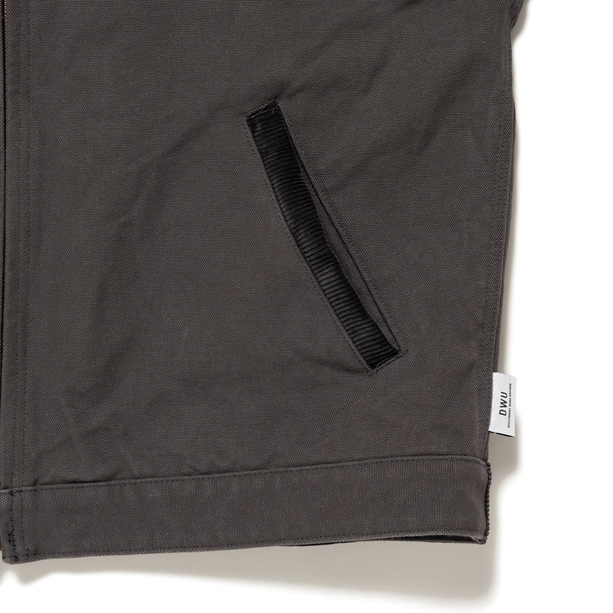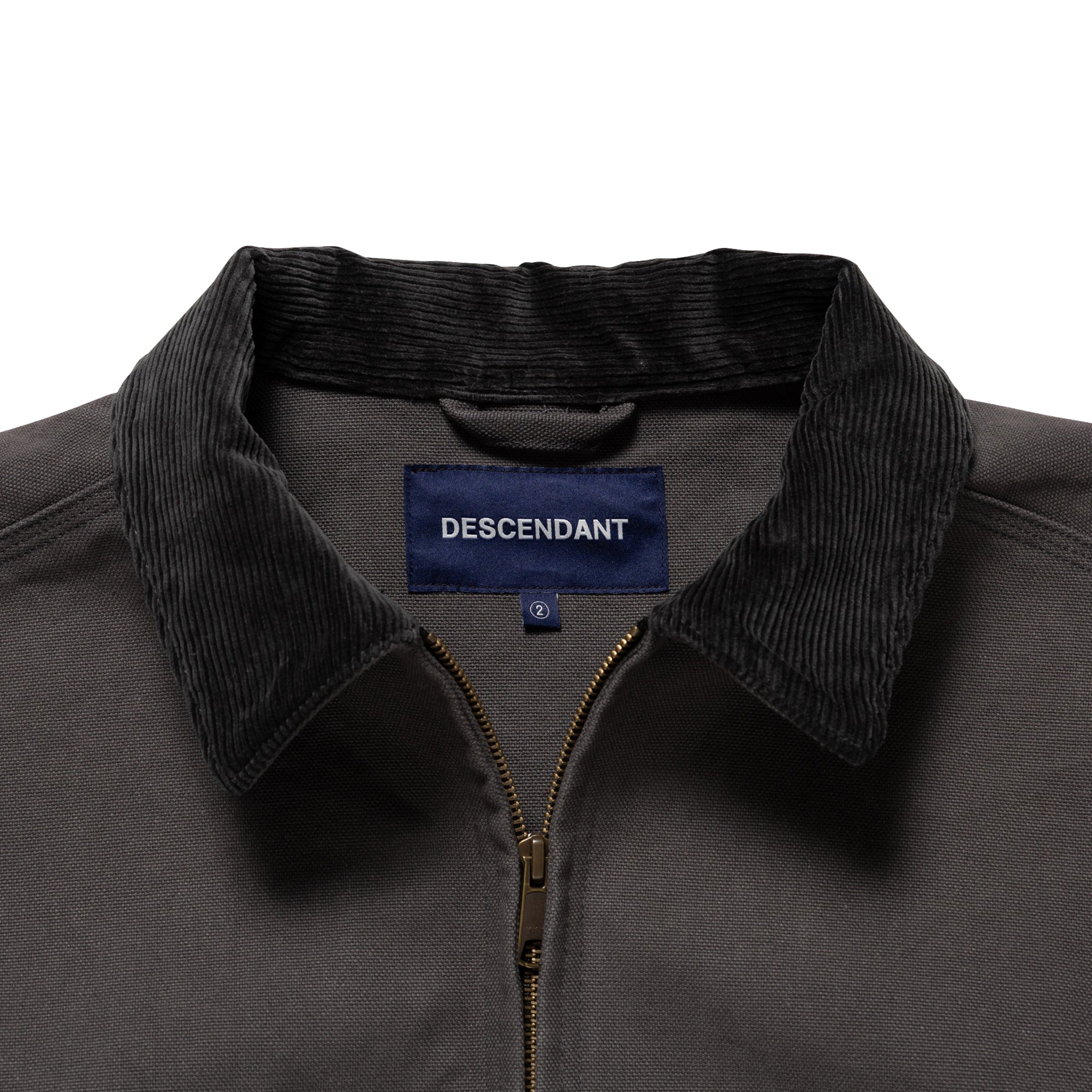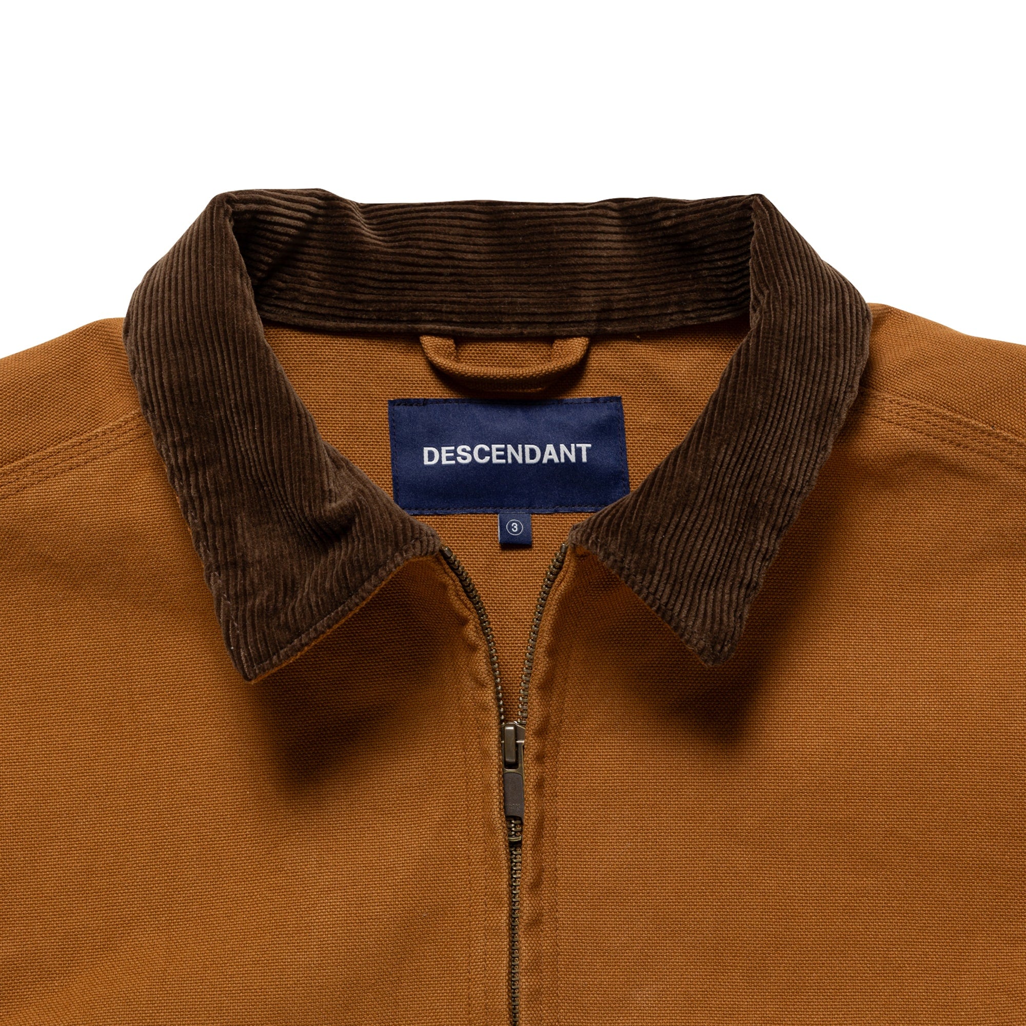 厚手の8号帆布を使用したコットンダックジャケット。襟、ポケット口布、背面の腰帯、袖口の内側にコーデュロイを切り替えた仕様。スナップボタン留めの袖口やアジャスターボタン付きの腰帯などワークウェアのディテールを踏襲。右袖にHORIZONロゴの刺繍パッチ付き。