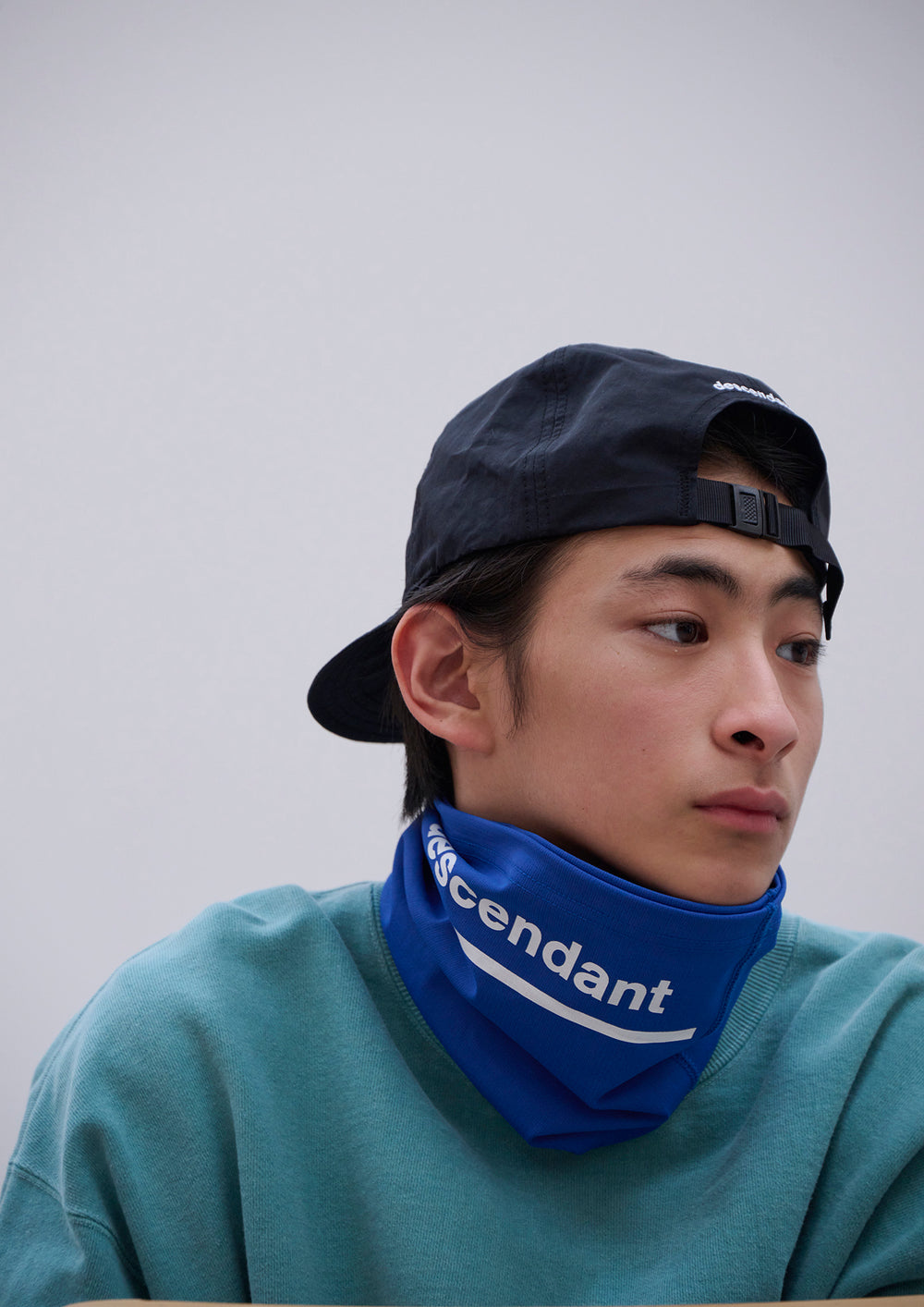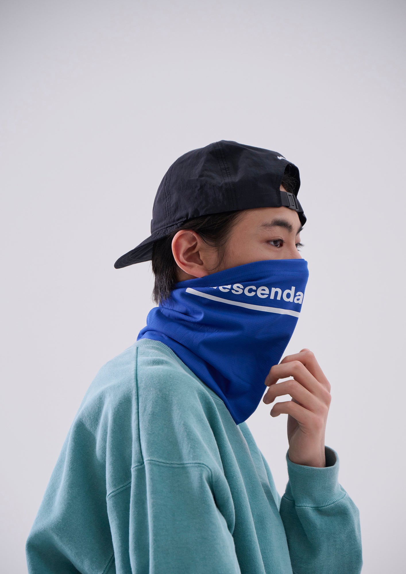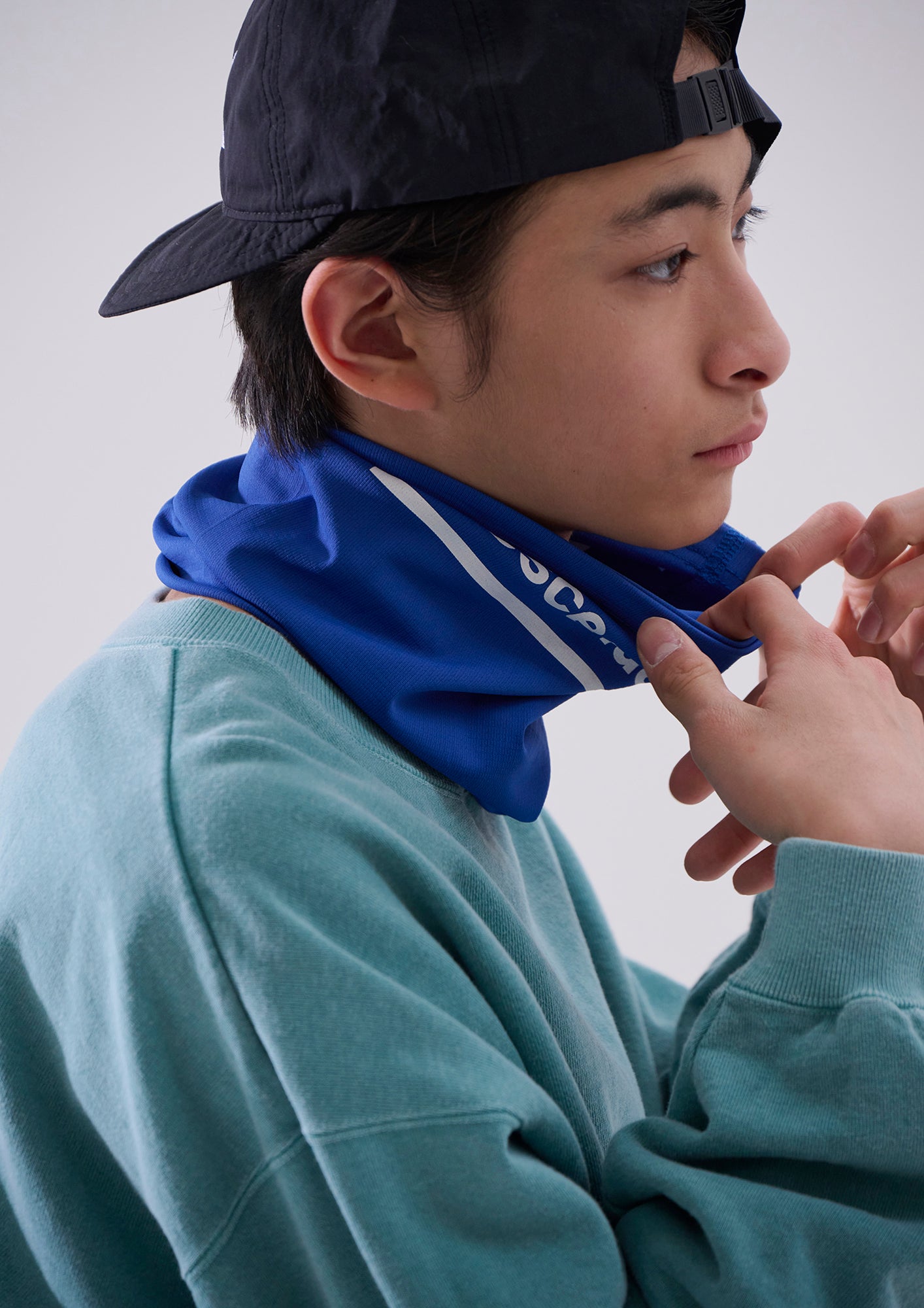 伸縮性の高い生地を使用したネックゲーター。首元に通すほかヘアバンドとしても使えるマルチアイテム。共地のケース付き。