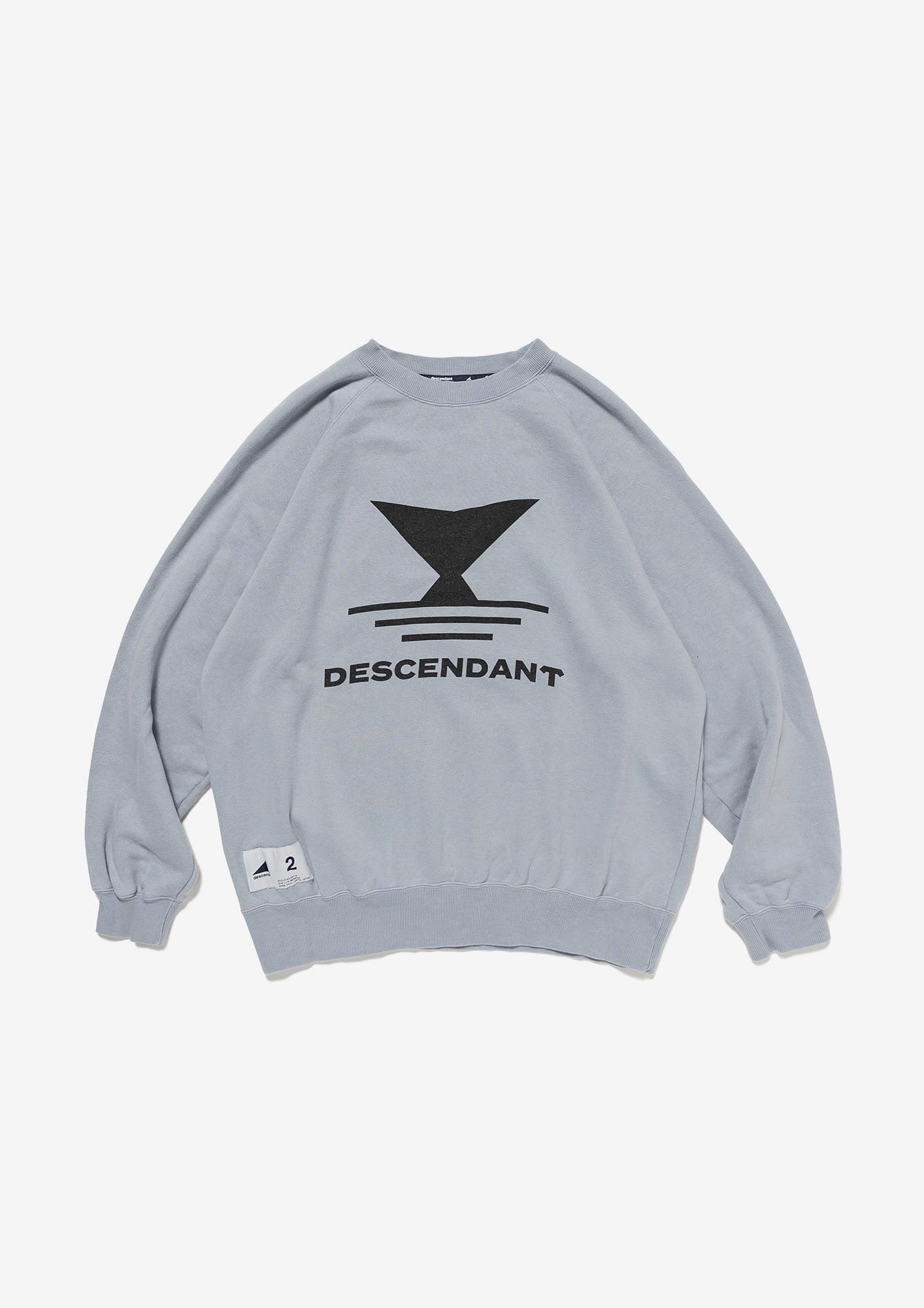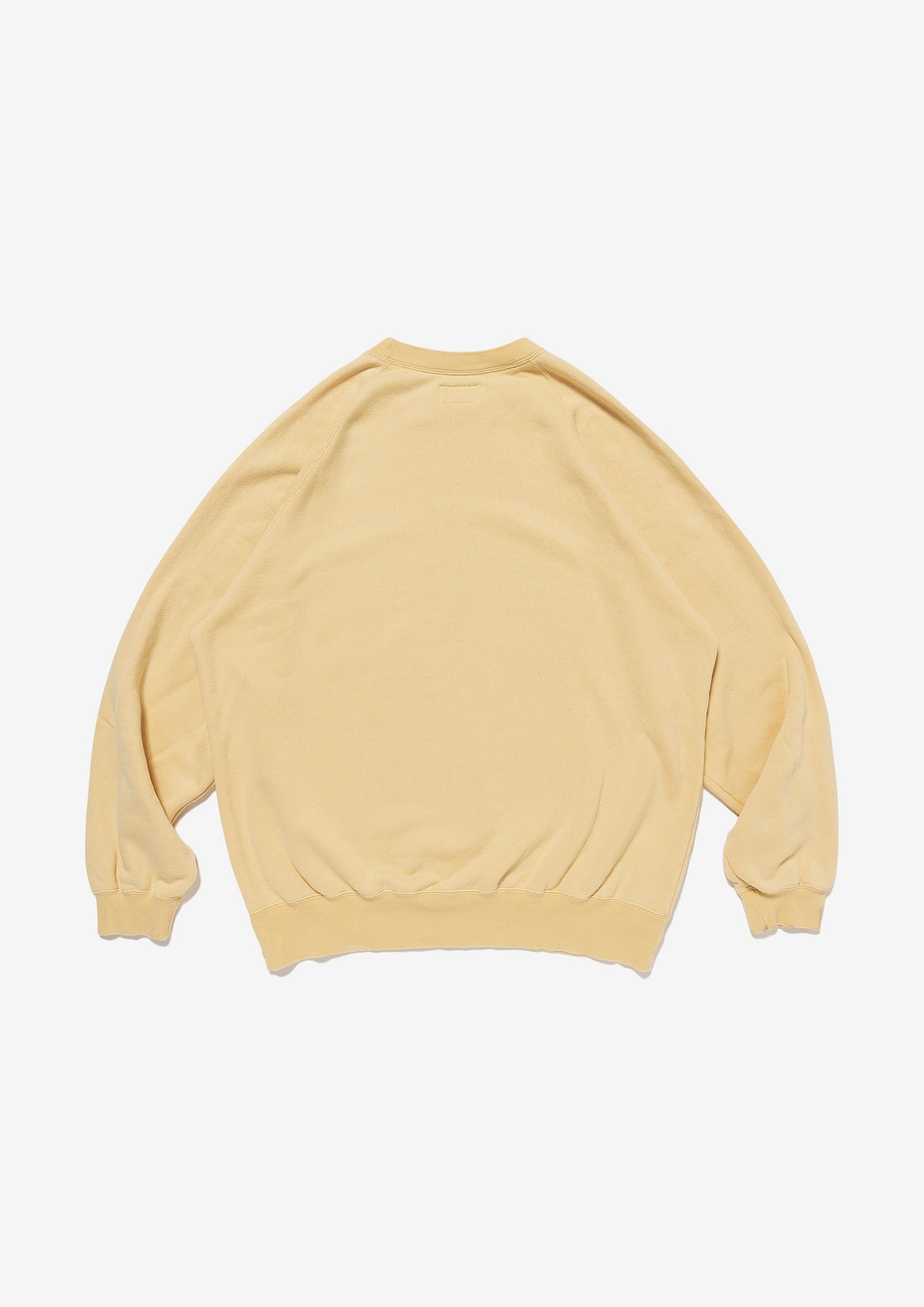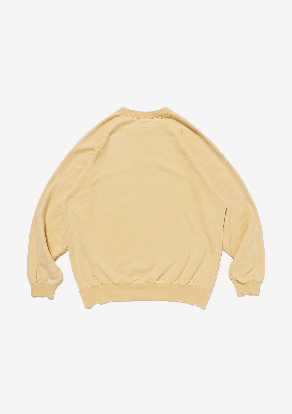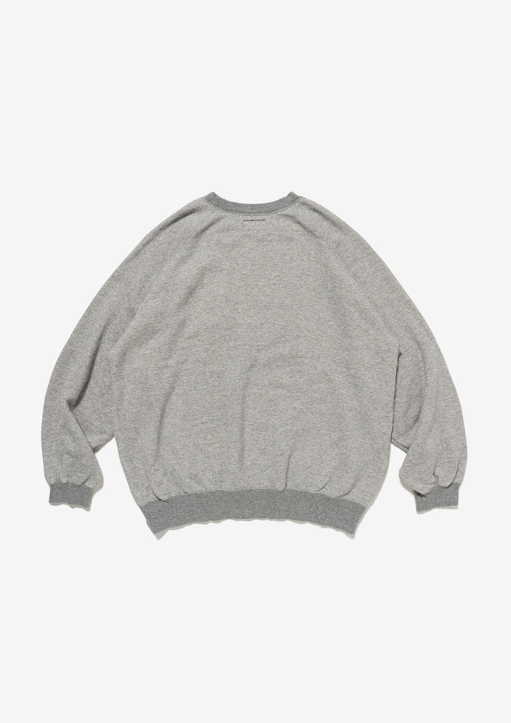 リヨセル混のコットン裏毛を使用したクルーネックスウェットシャツ。ラグランスリーブのゆったりした身幅のシルエット、前身頃にFLUKE UPのグラフィックを染み込みプリント。襟ぐりの継ぎ目にはオリジナルテープのパイピング。右前裾にサイズを表示したCETUSの織りネーム付き。グレー、ライトブルー、イエローの3色展開。