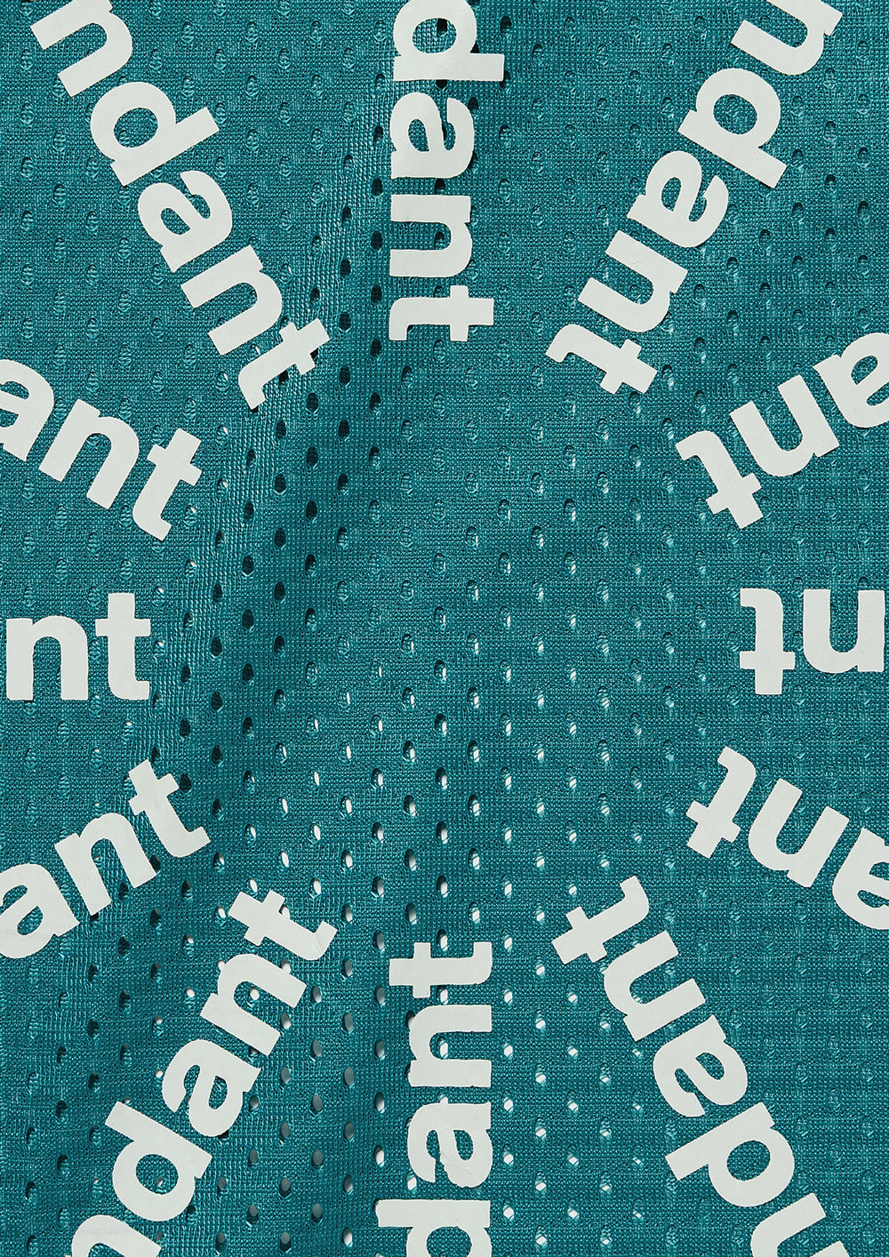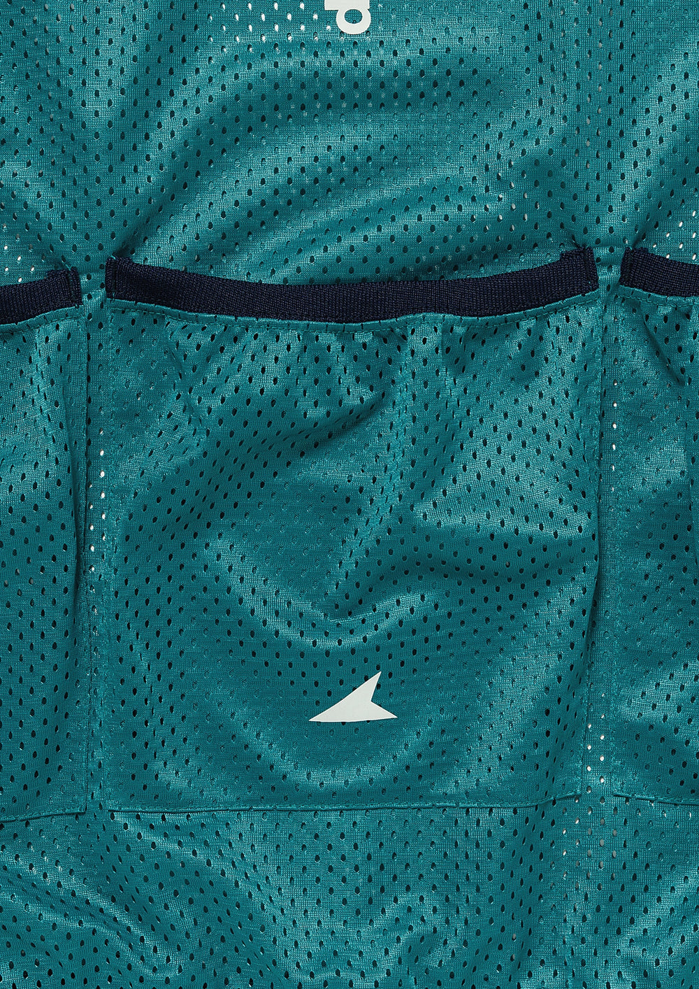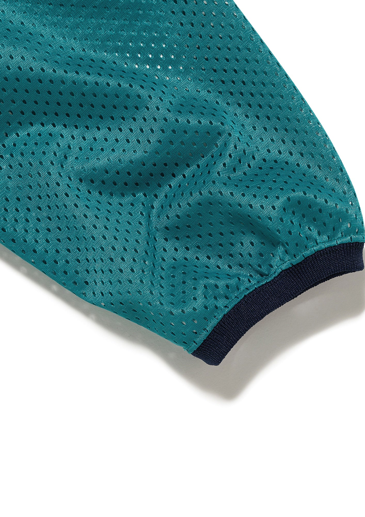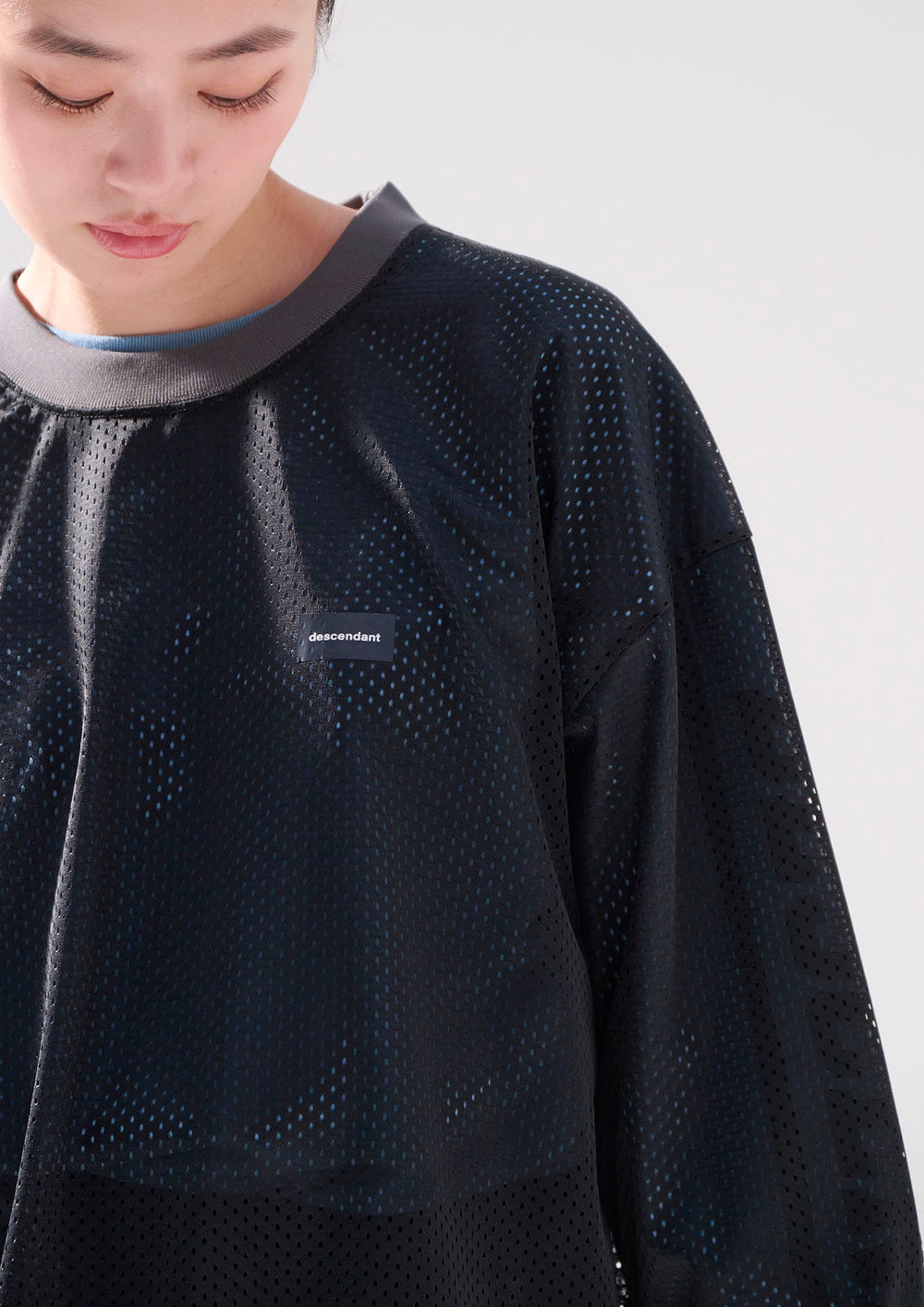 ポリエステルメッシュを使用したロングスリーブカットソー。左胸にボックスロゴのワンポイント、背面に自転車のスポーク状のグラフィックをプリント、背面の腰にはサイクルジャージーをイメージした3個間口のポケット付き。ゆったりした身幅に袖口と裾回りをパイピングで絞ったシルエット。襟ぐりの継ぎ目にはオリジナルテープのパイピング。右前裾にサイズを表示したCETUSの織りネーム付き。