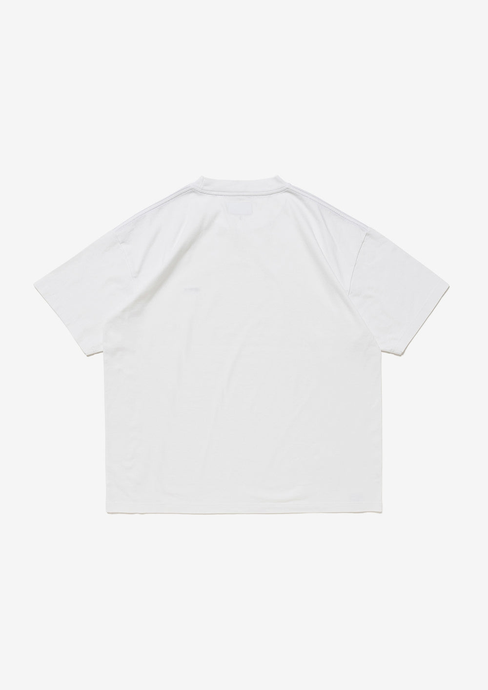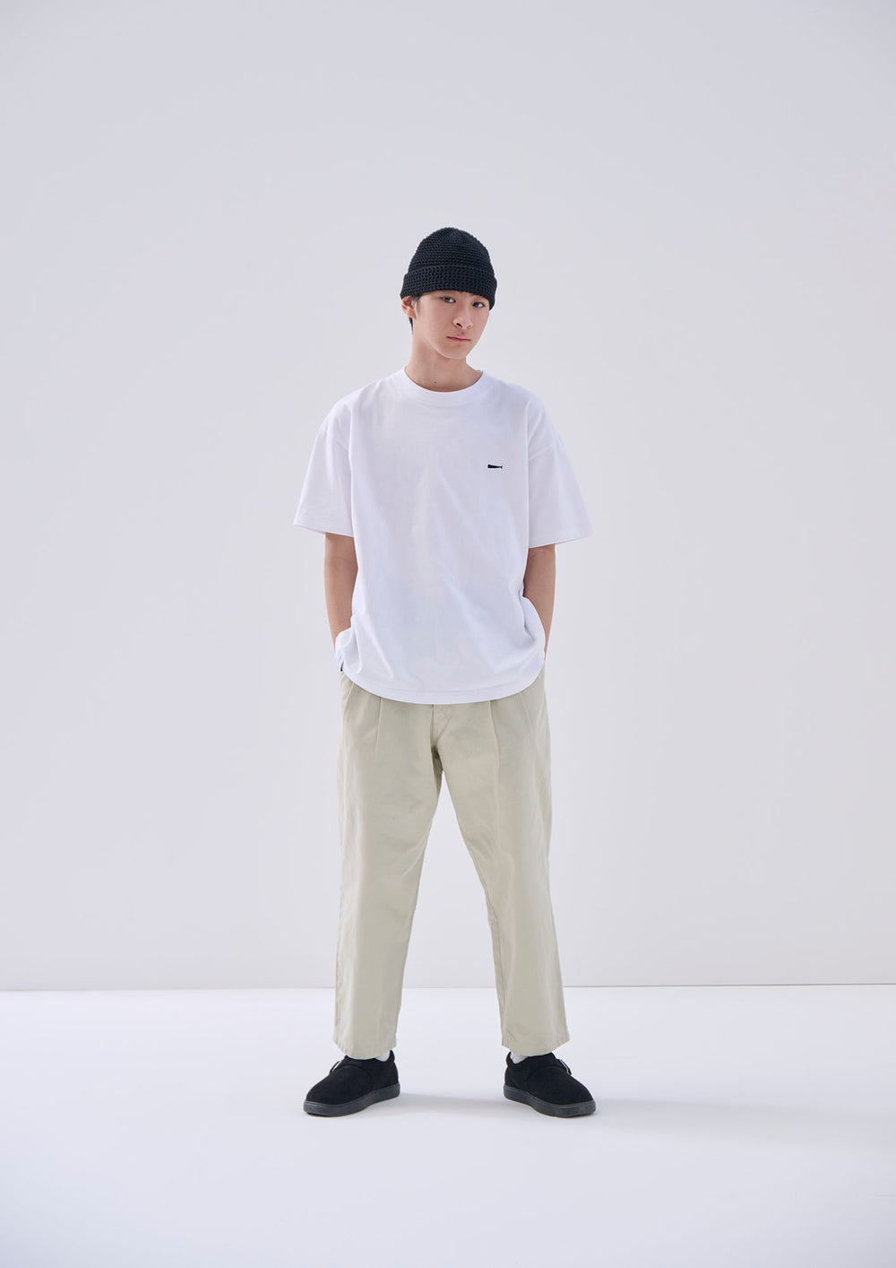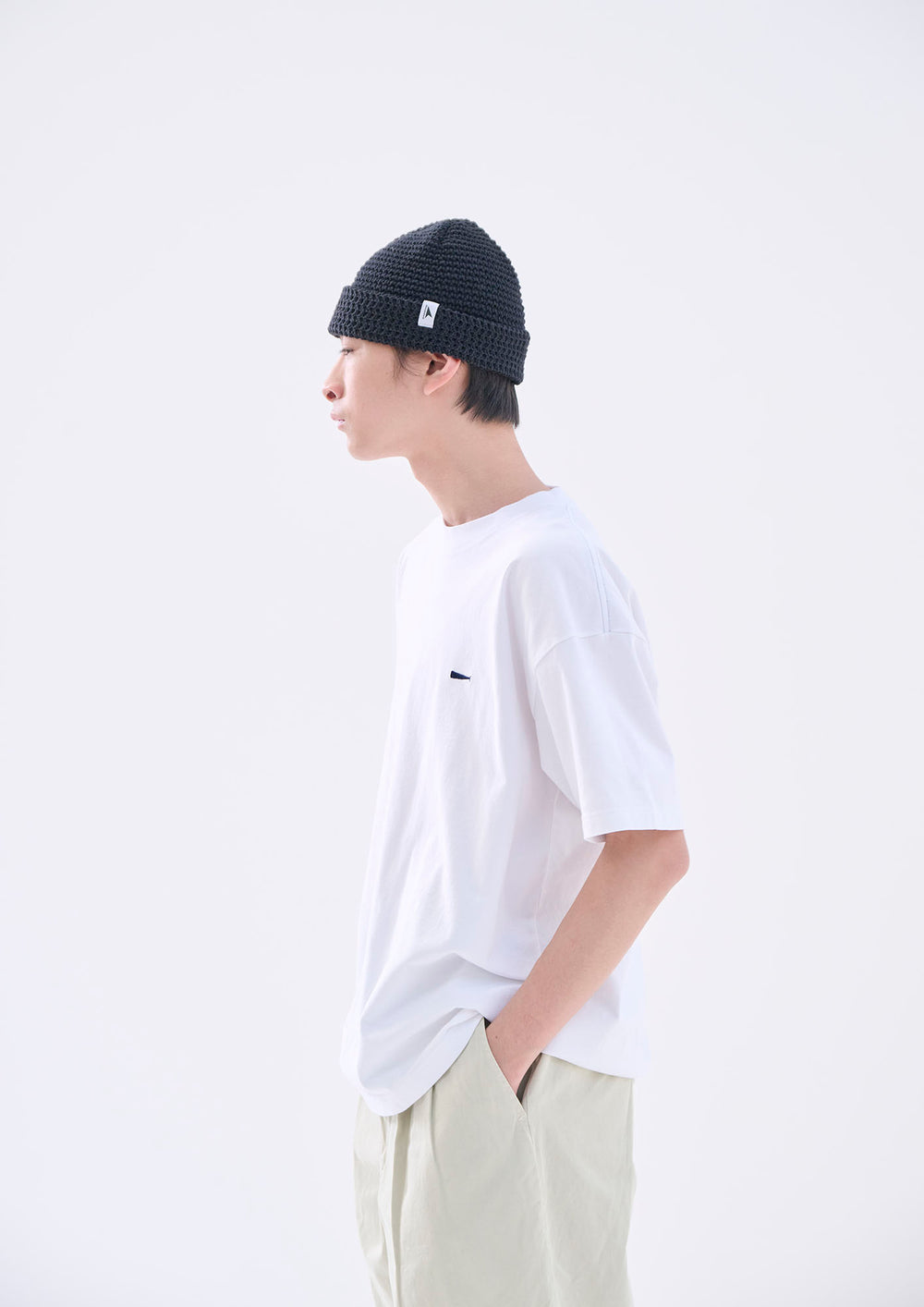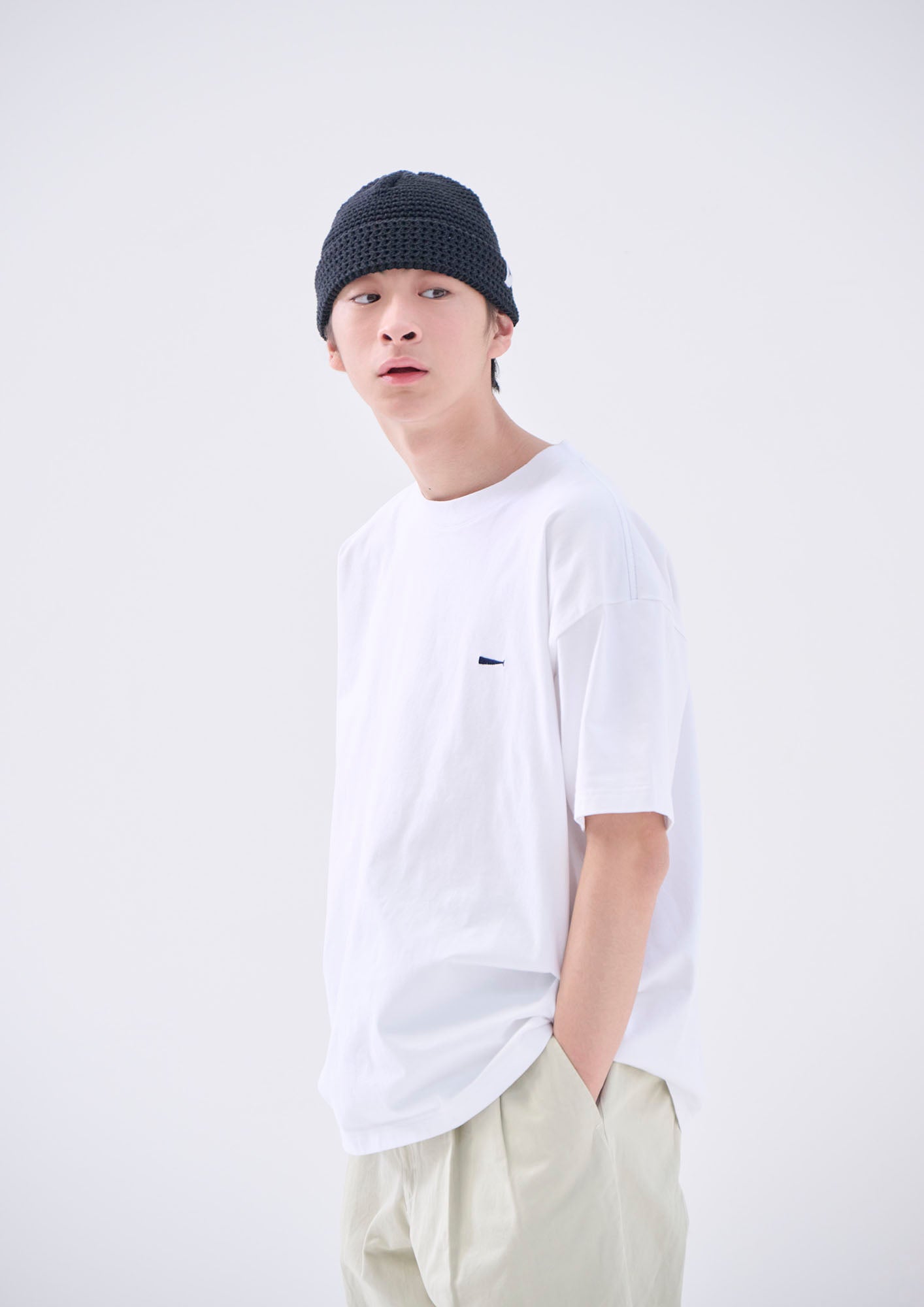 オーガニックコットン天竺を使用したショートスリーブカットソー。ゆったりしたシルエットの左胸にCACHALOTの刺繍ロゴ。襟ぐりの継ぎ目にはオリジナルテープのパイピング。前裾にDESCENDANTの織りネーム付き。ブラック、グレー、ホワイトの3色展開。