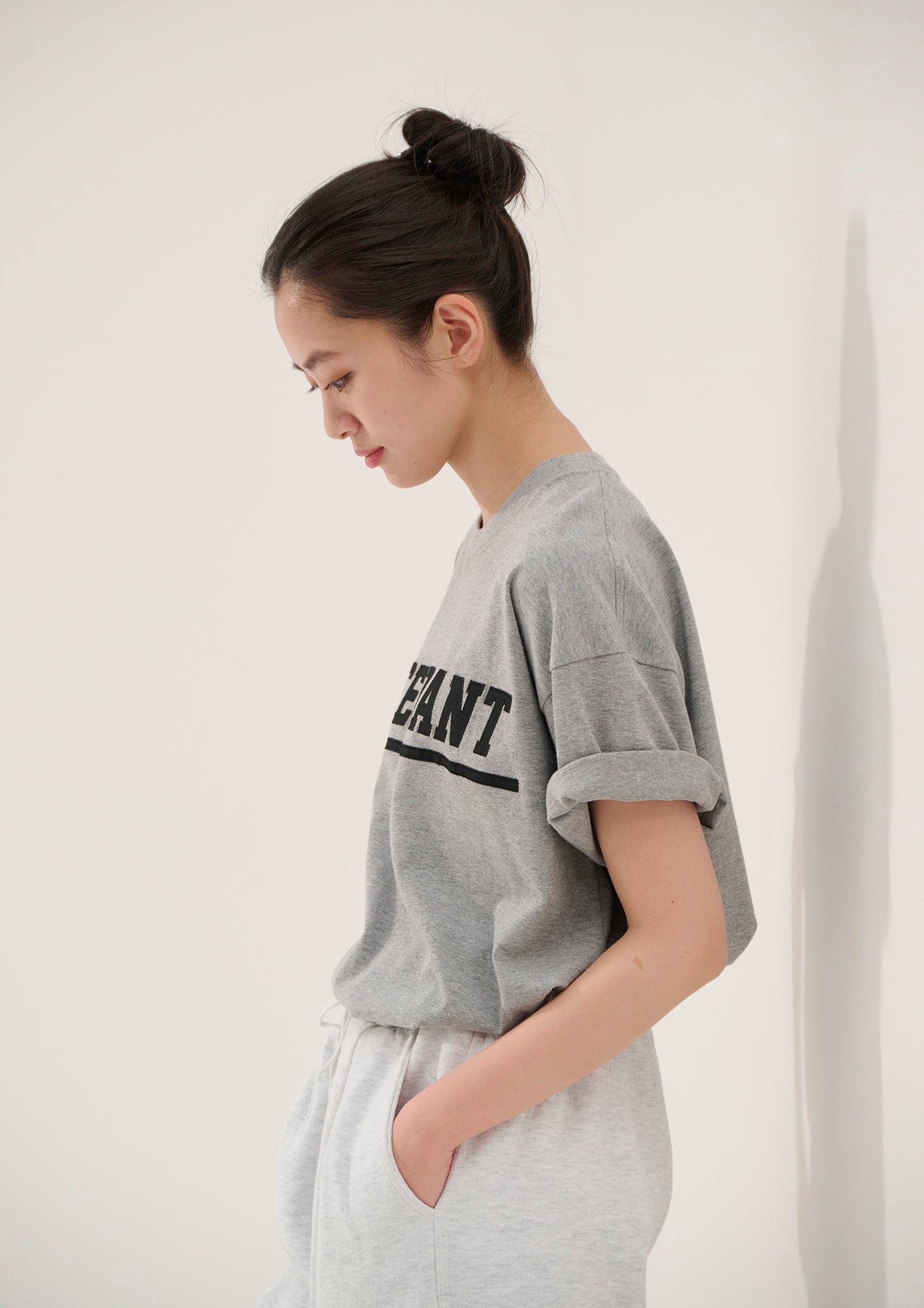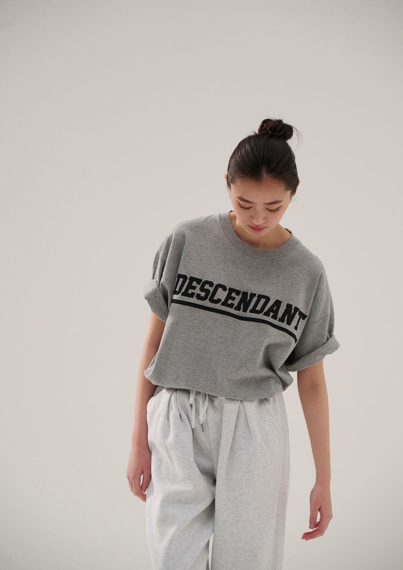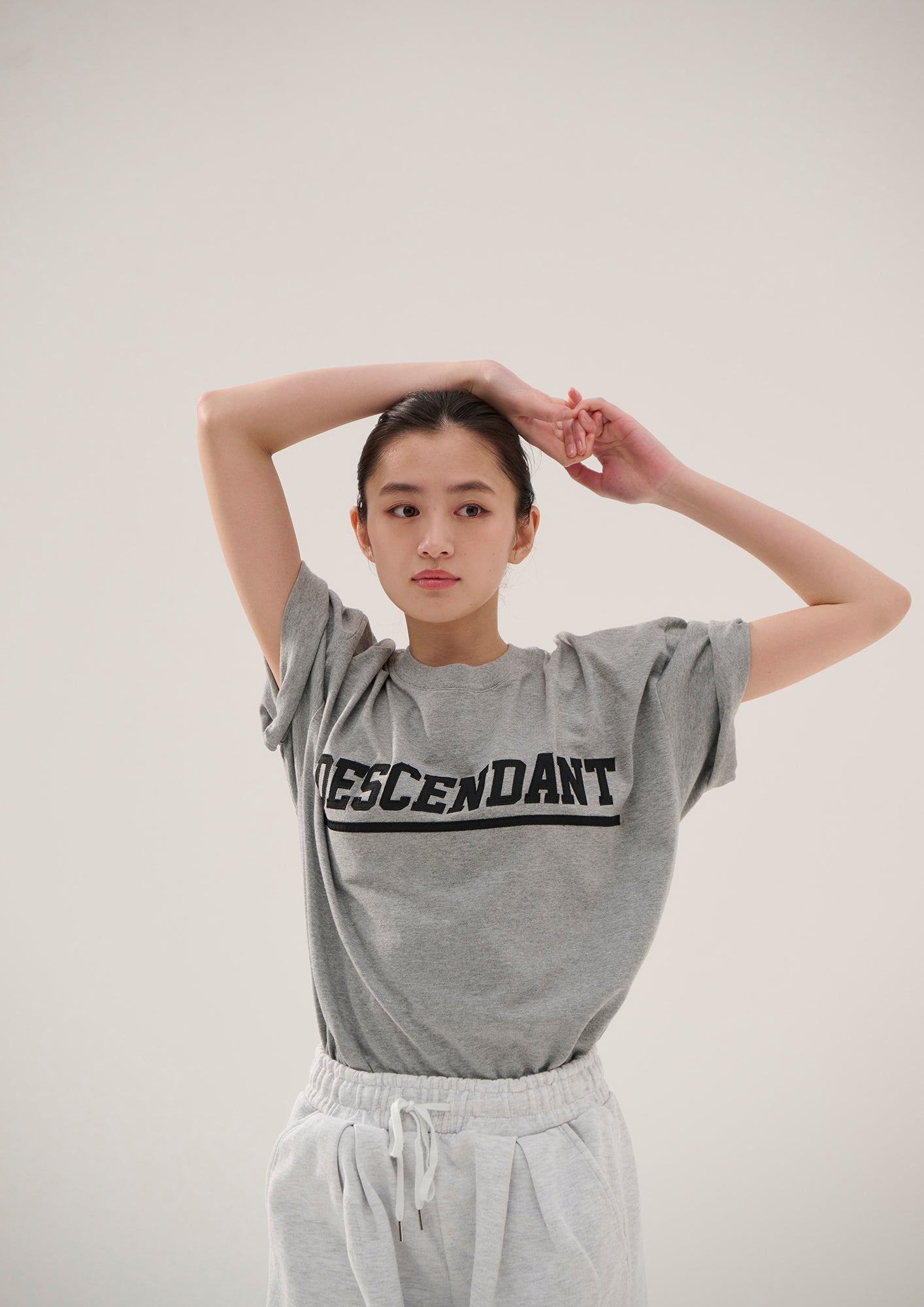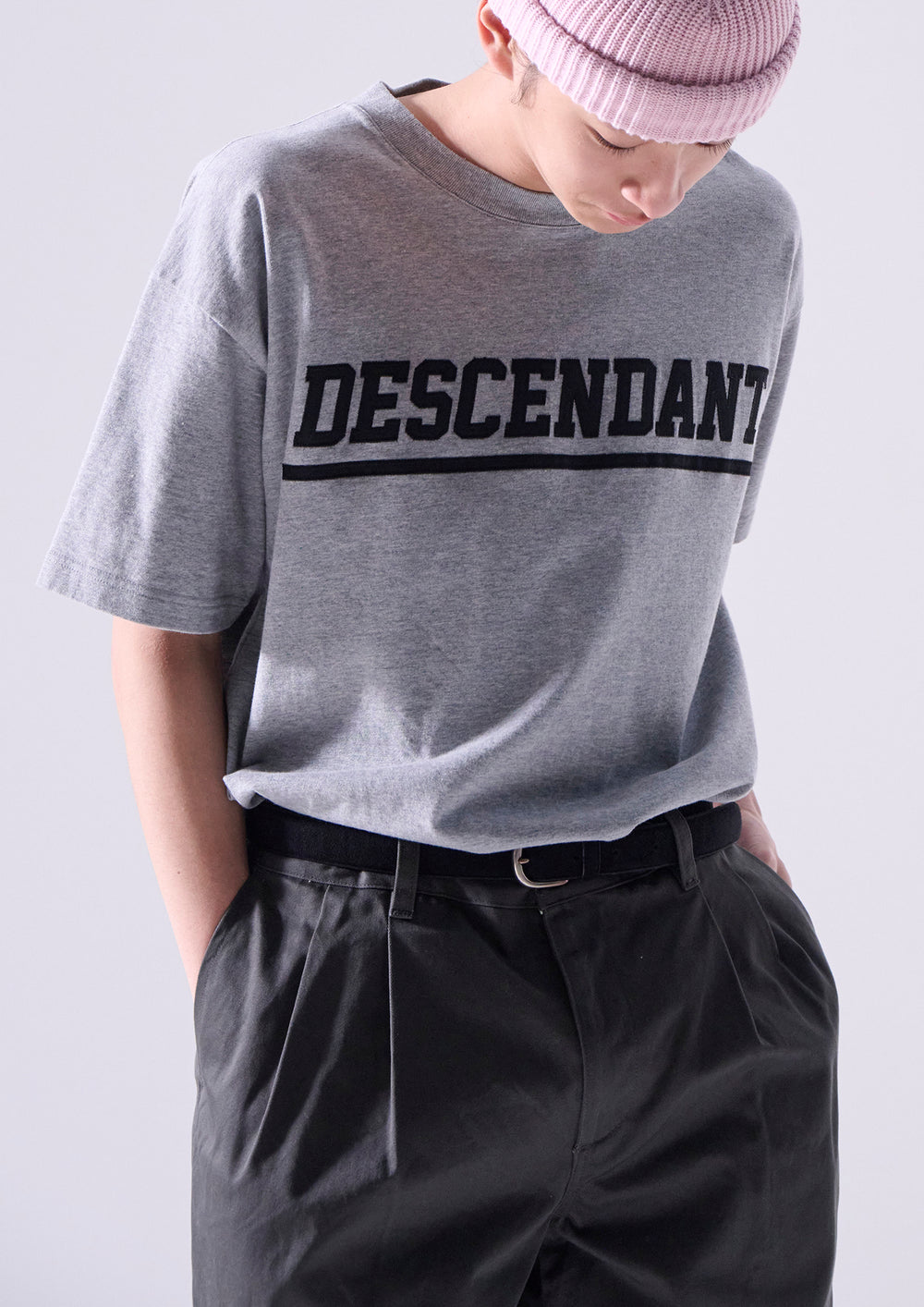 オーガニックコットン天竺を使用したショートスリーブTシャツ。ゆったりしたシルエットのフロントにDIRTロゴのアップリケをあしらい、襟ぐりの継ぎ目にオリジナルテープのパイピング。右前裾にサイズを表示したCETUSの織りネーム付き。グレー、ネイビー、ホワイトの3色展開。