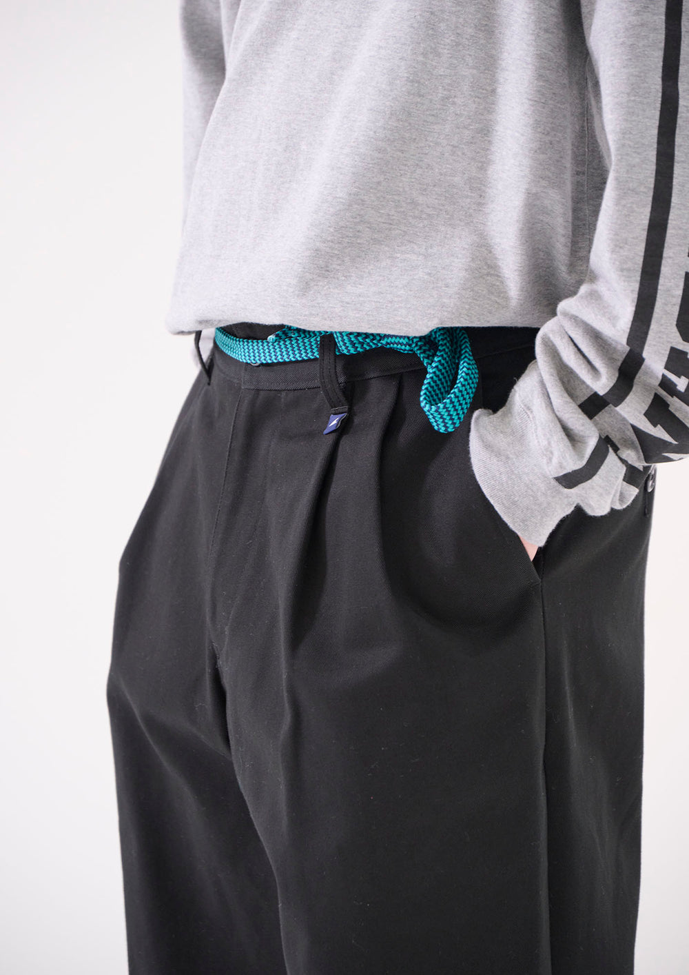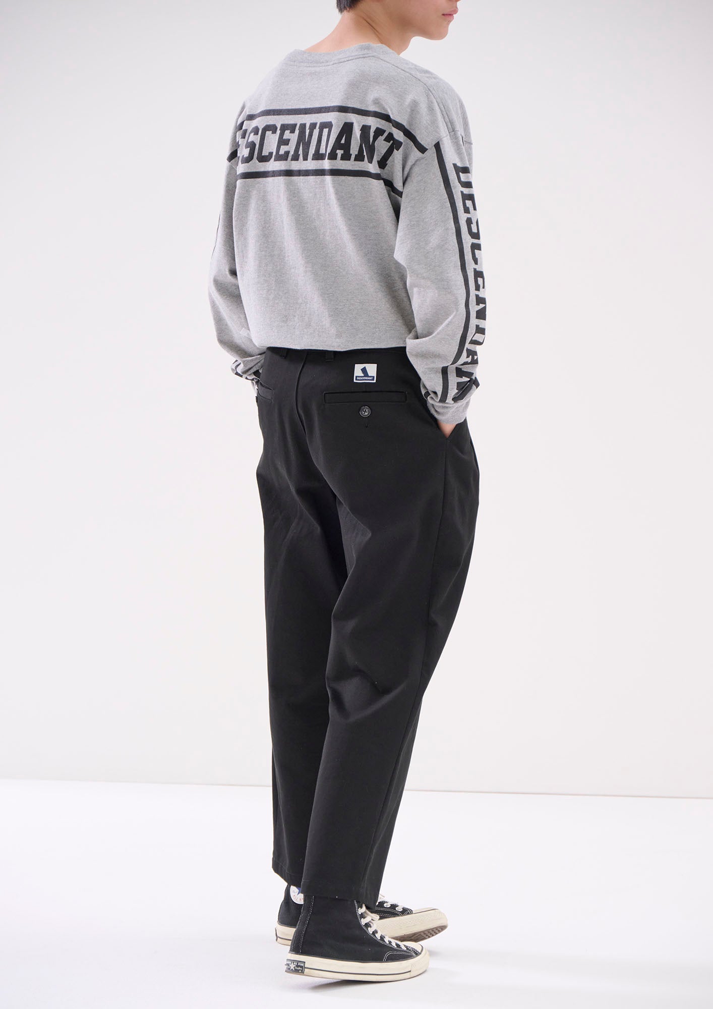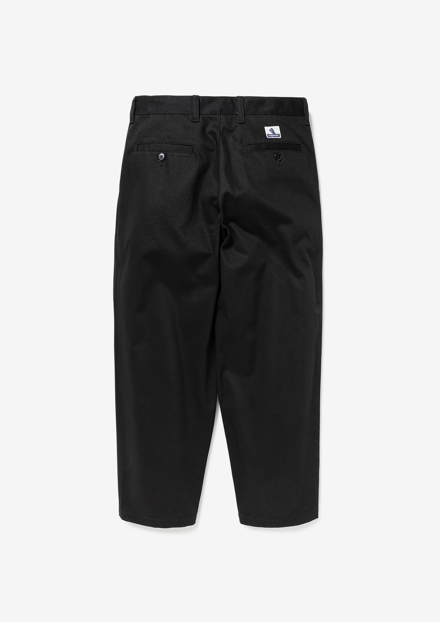 生地目の詰まったオーガニックコットンカツラギを使用したDC-3ツイルトラウザーズ。ツータックの腰回りから裾口へゆったりテーパードしたシルエット、斜め間口のサイドポケット及び片玉縁のヒップポケットを配し、背面にSPYHOPのパッチ、ベージュのみKhaKeeのピスネーム付き。腰帯のスレキには「DC-3 | Wide」及びベージュのみ「KhaKee」のプリント。