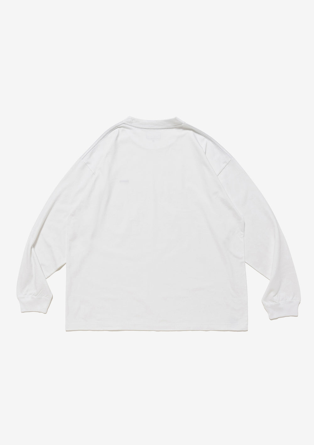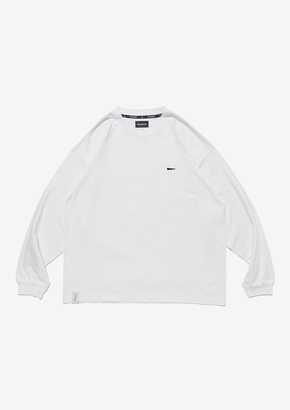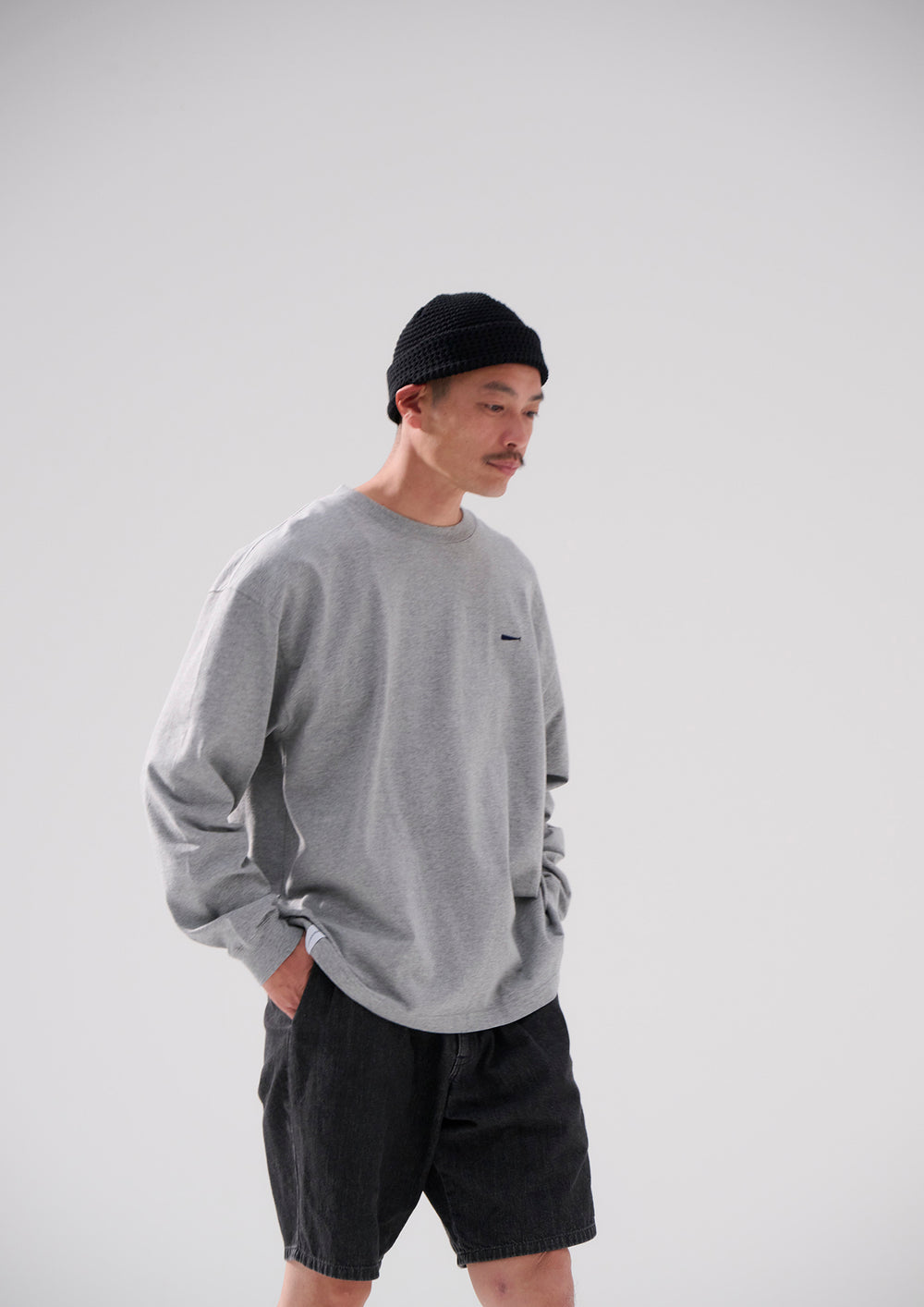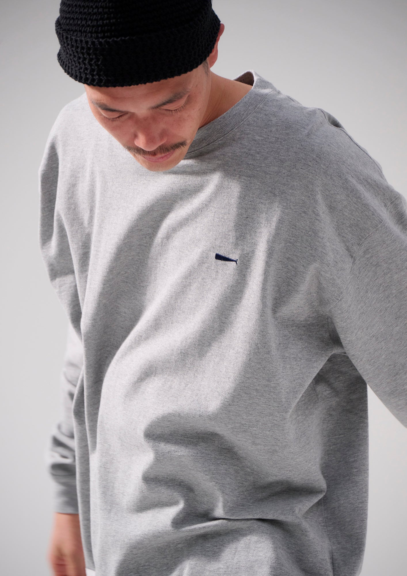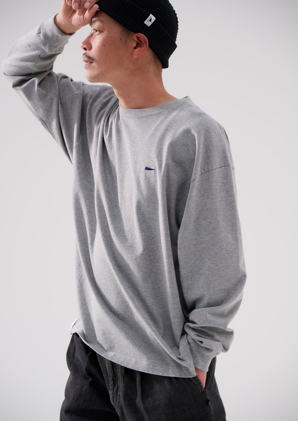コットン天竺を使用したベーシックなロングスリーブカットソー。ゆったりしたシルエットの左胸にCACHALOTの刺繍ロゴ。襟ぐりの継ぎ目にはオリジナルテープのパイピング。前裾にDESCENDANTの織りネーム付き。ブラック、グレー、ホワイトの3色展開。