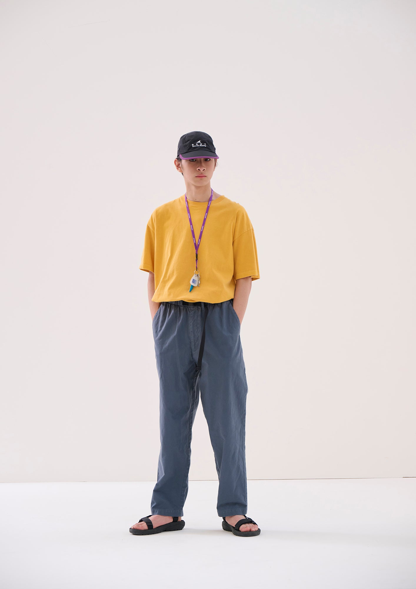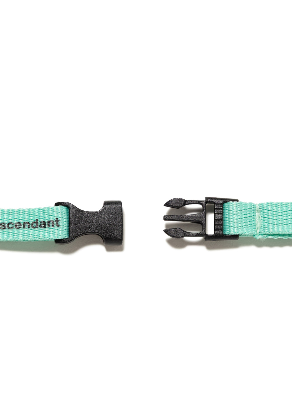 descendantのプリントロゴを連ねたネックストラップ。スリムタイプ。先端のフックを取り外せる仕様。パープ、ミント、イエローの3色展開。