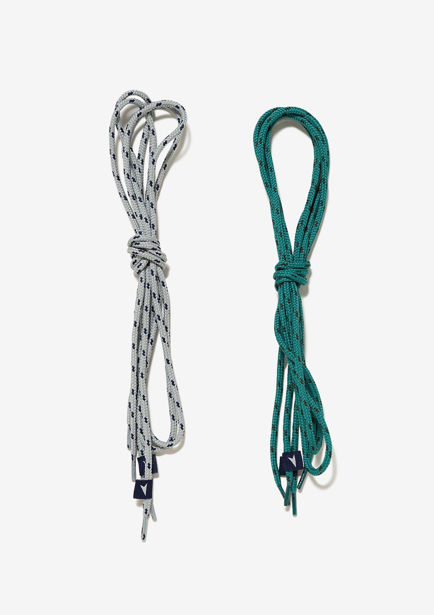 グレー、グリーンベースのミックスカラーを展開するレギュラーシューレース。ベルトとしても使用可能。